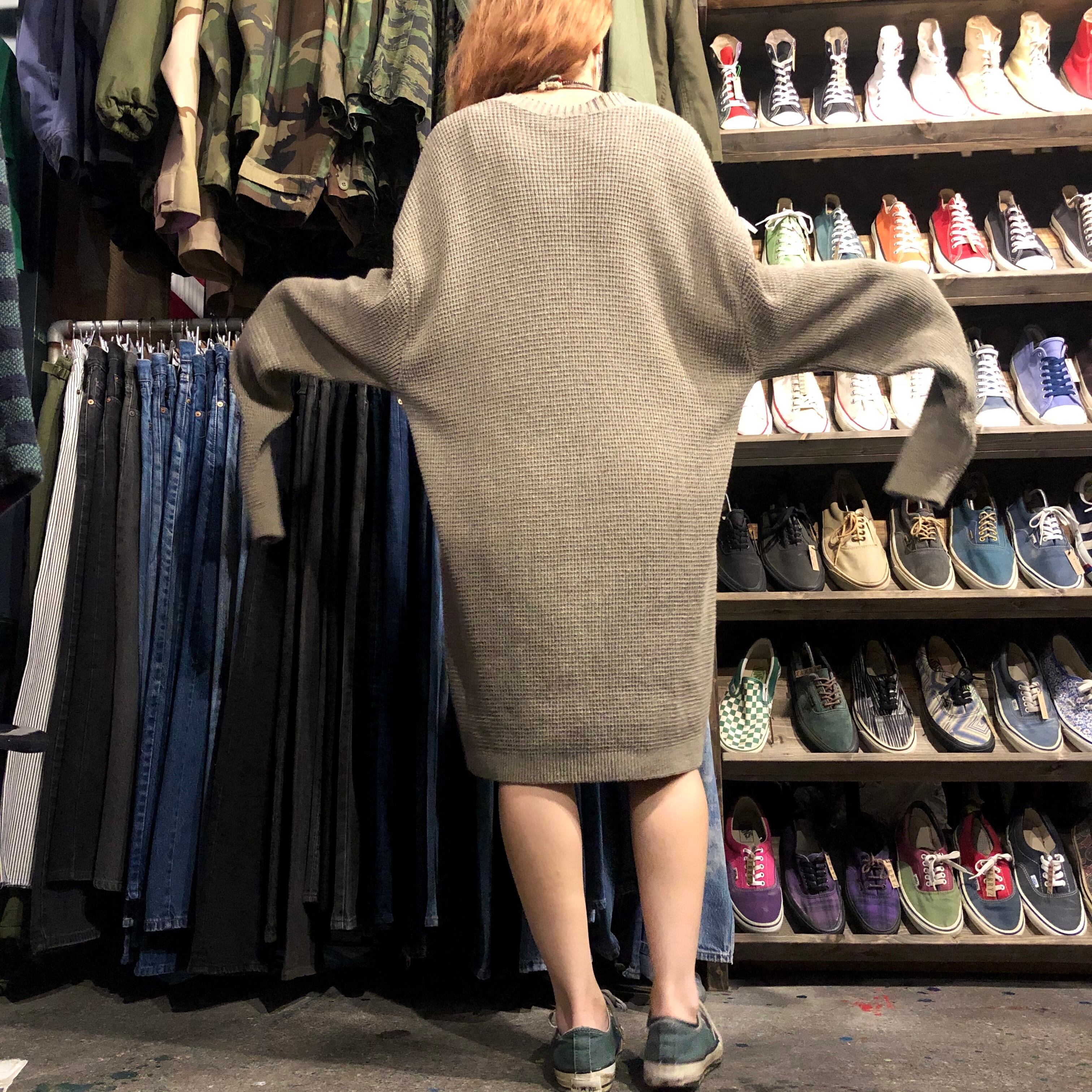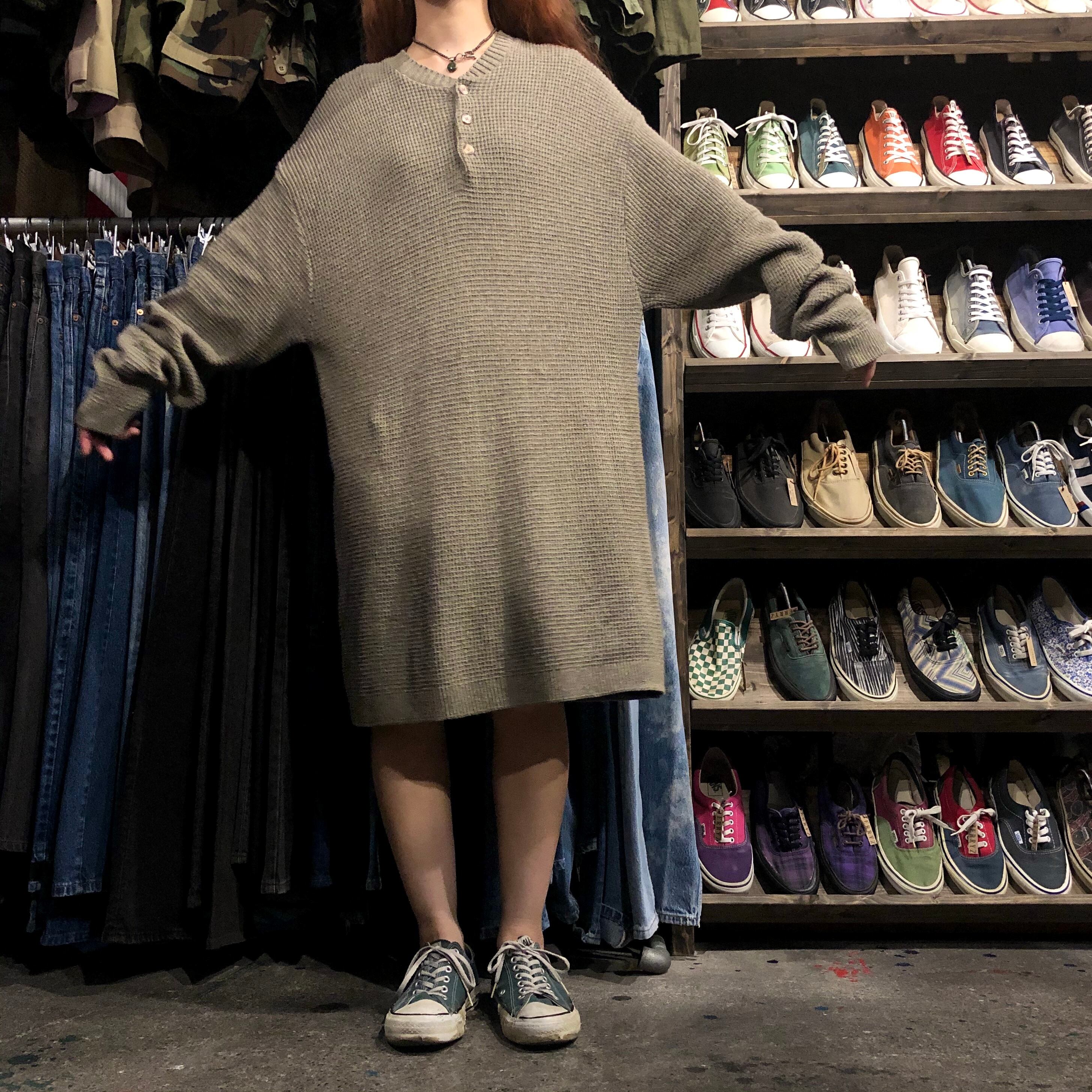 ヘンリーネックで渋めのカラーが良い雰囲気です。袖ぐりの下がウエスト辺りまでくるのでやや動きにくいですがダラっとしたシルエットがかわいいです。ワンピースとして着るのがおすすめです!