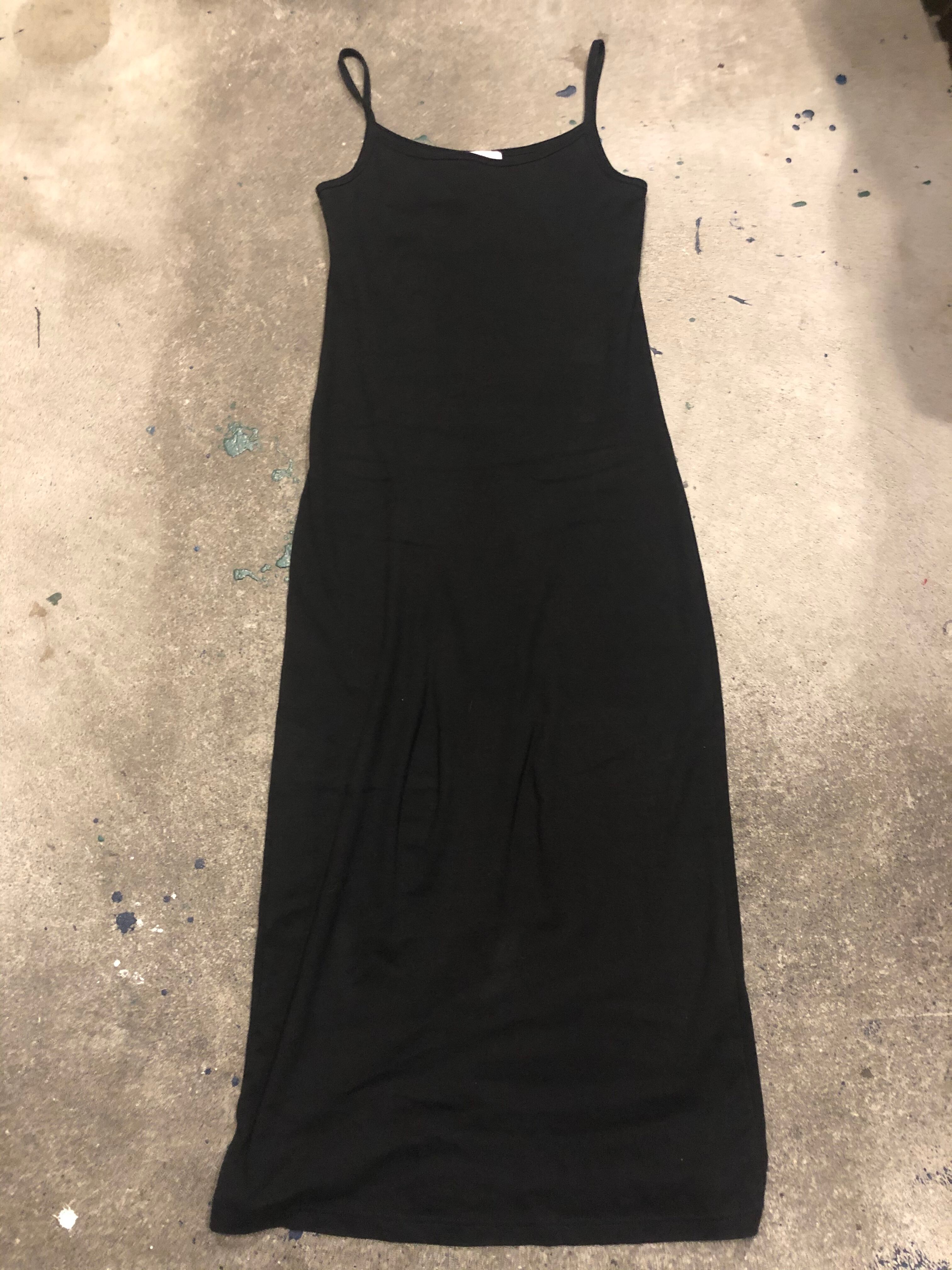 真っ黒のシンプルなキャミソールワンピースです。伸縮性のあるコットンでタイトめなシルエットが大人っぽくて素敵です。