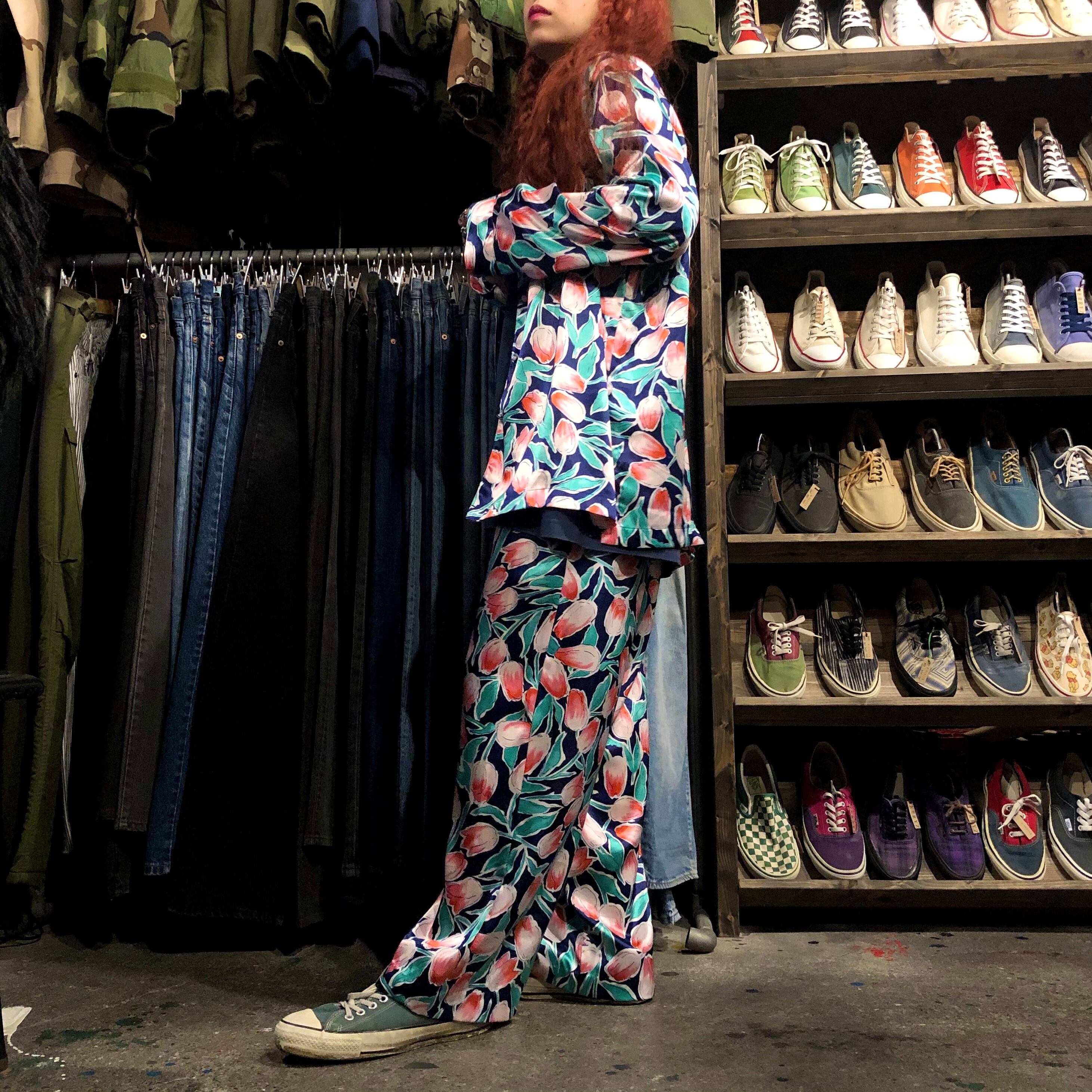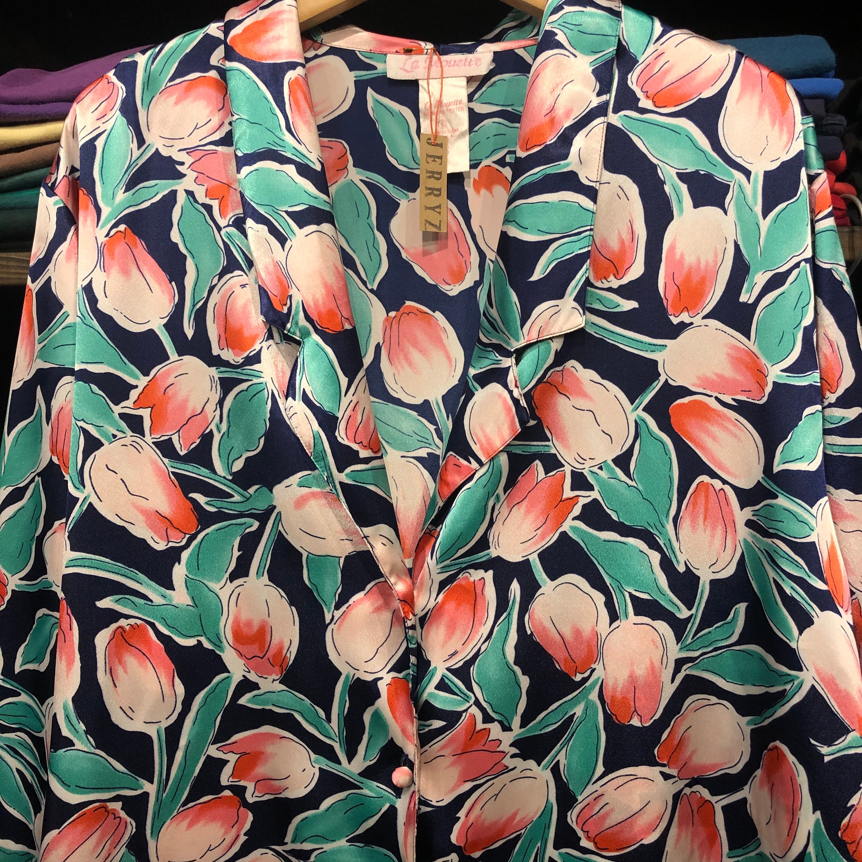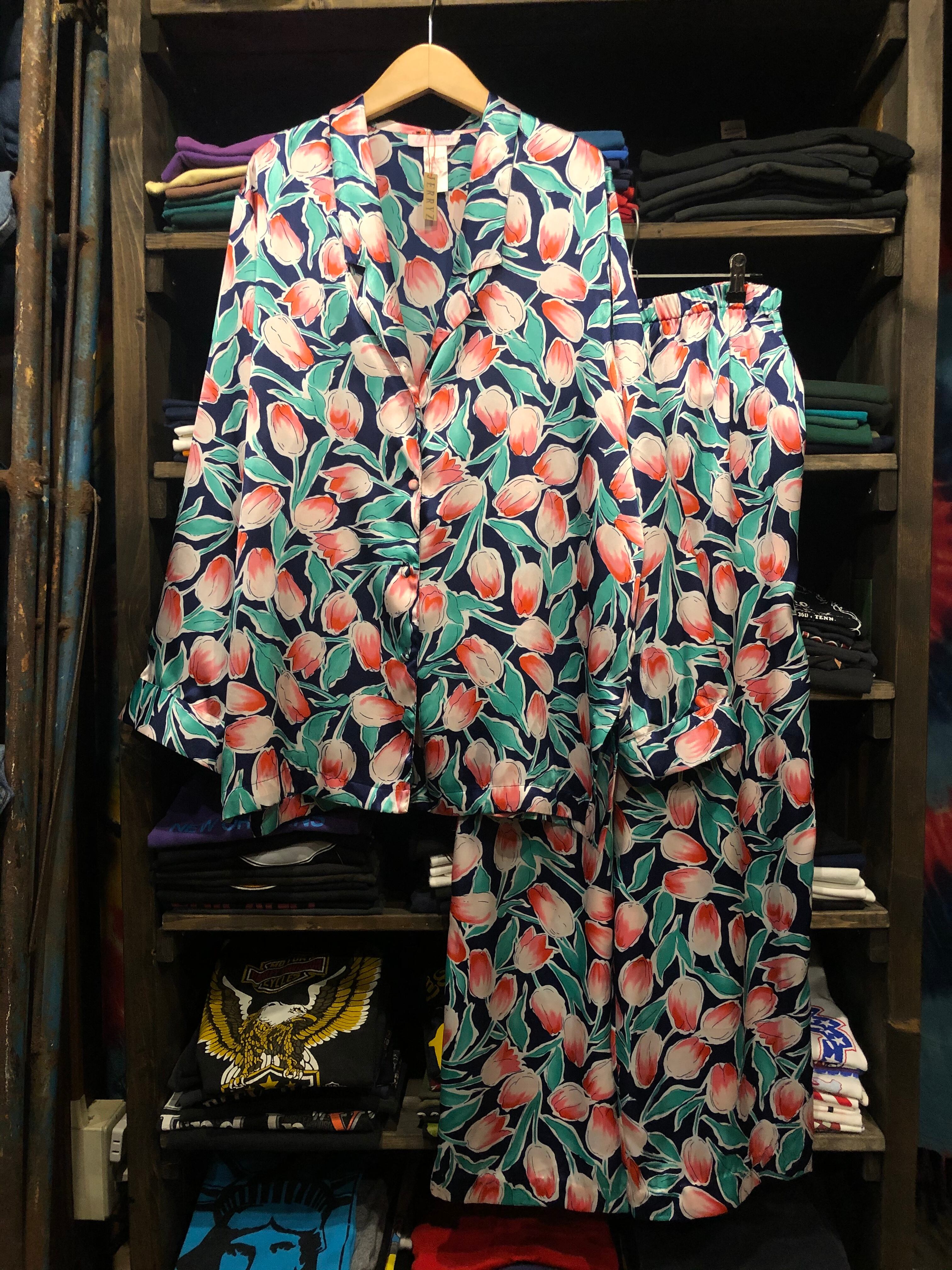 つるっとした肌触りで気持ち良いのでパジャマとして使うのもおすすめですが、中にTシャツやパーカーを合わせたり、上にカーディガンを羽織ったりセットアップとして着るのも良いですね!