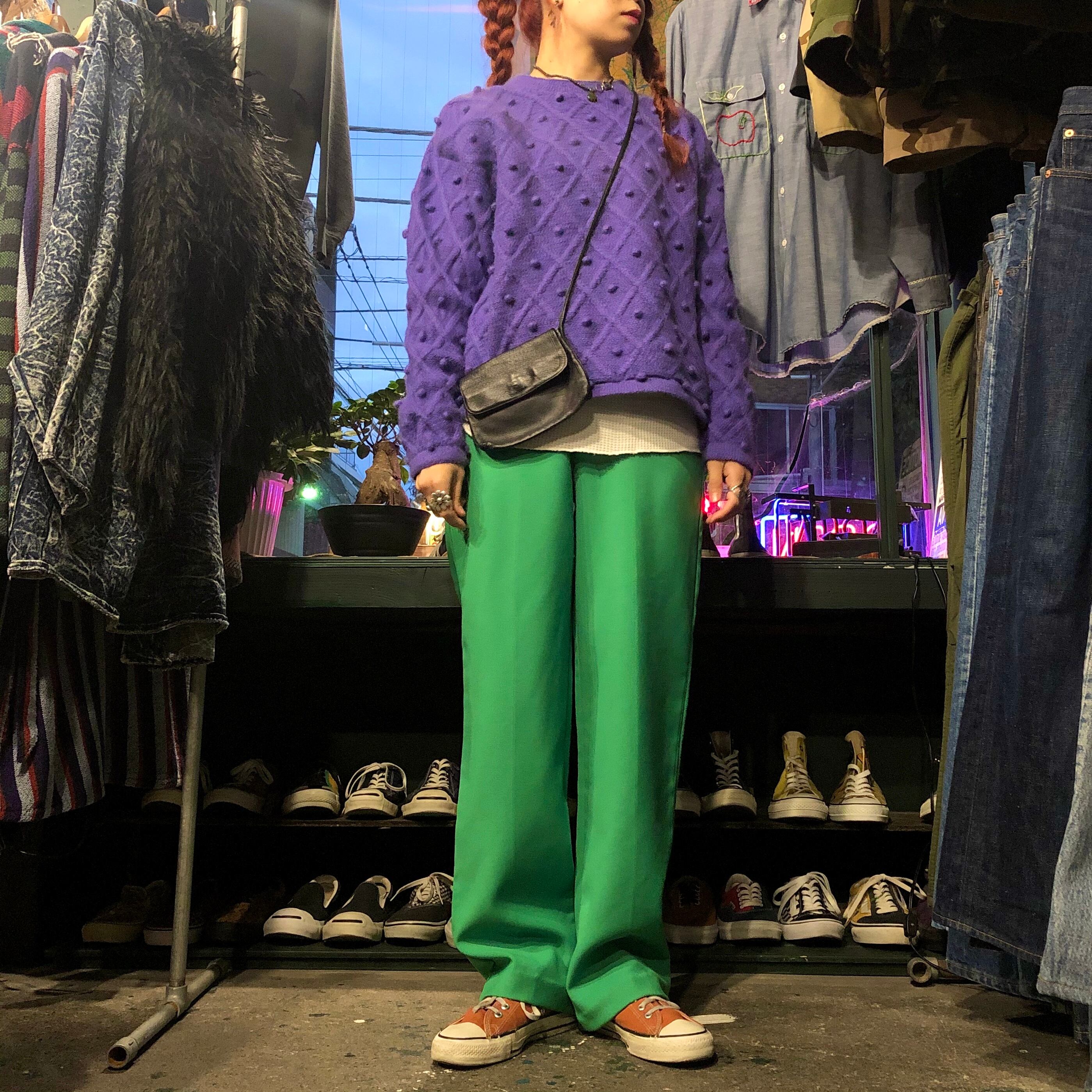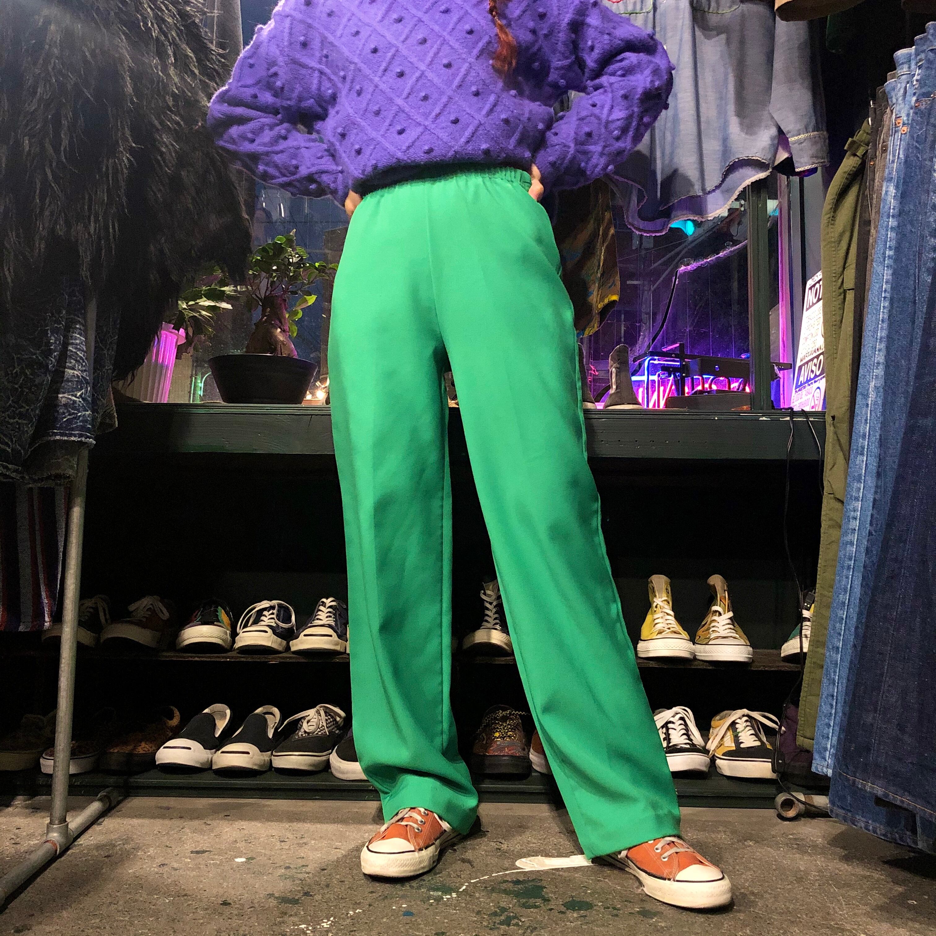 発色の良い黄緑が潔くてかっこいい、ポリエステル素材のイージーパンツです。