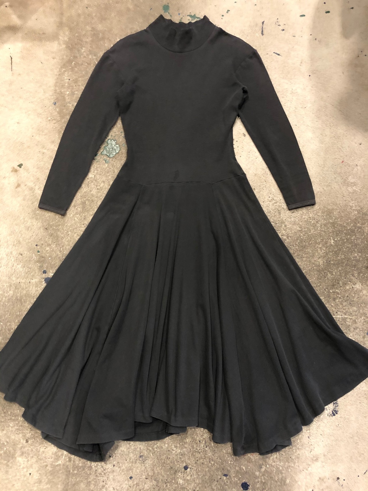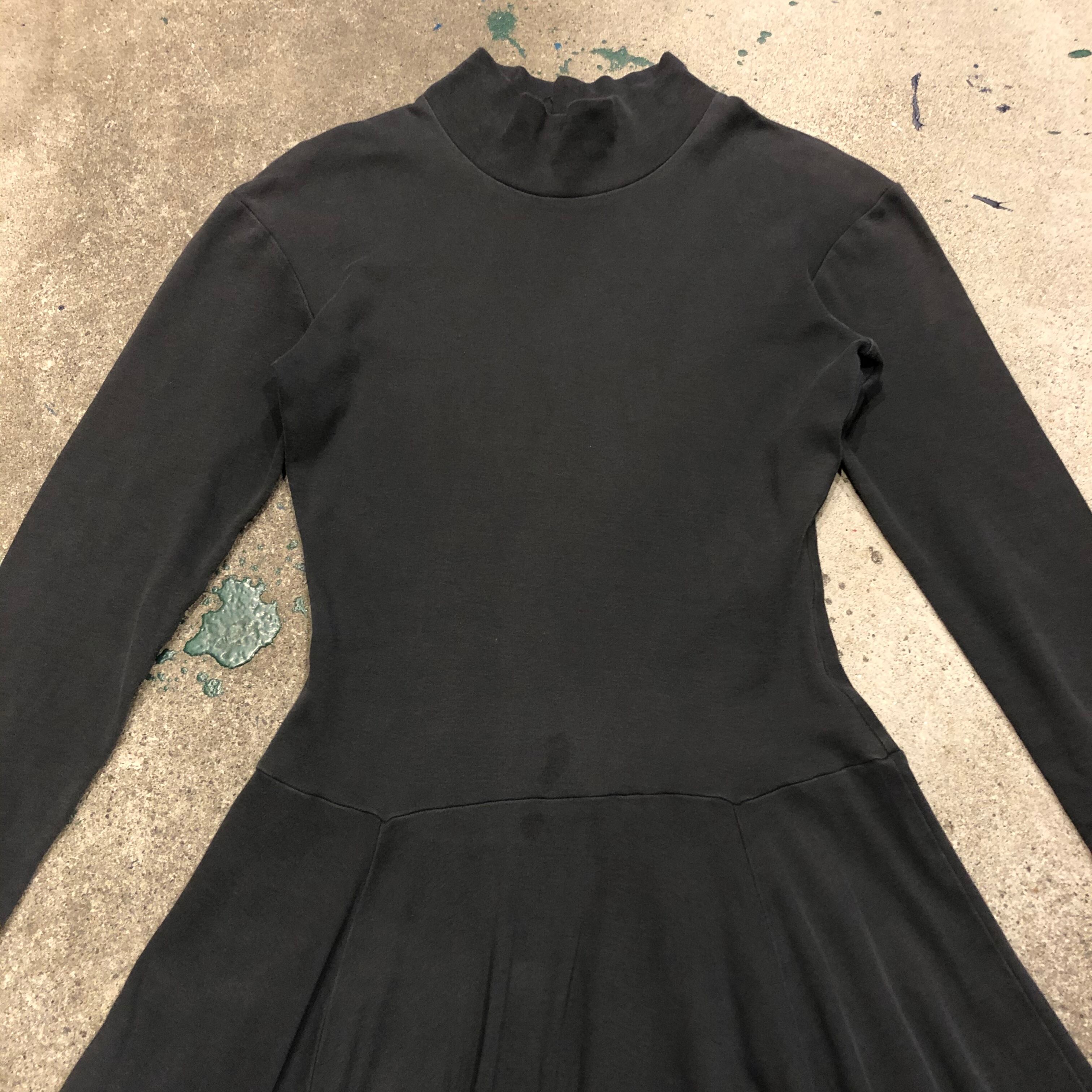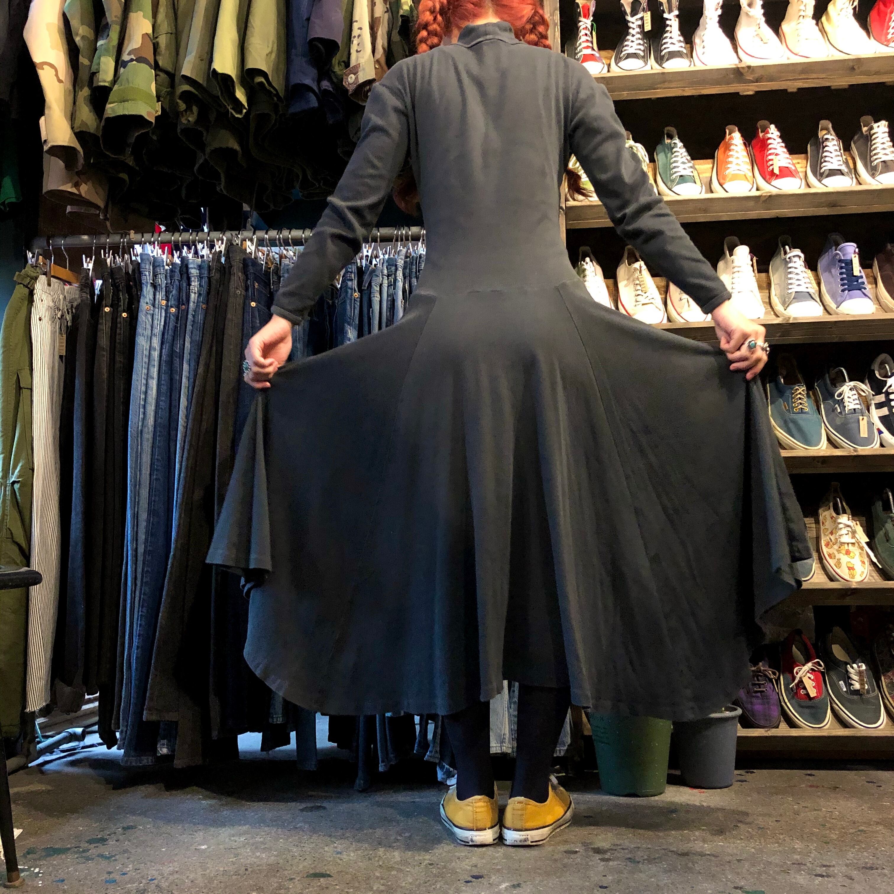 上半身はタイトめでスカート部分はかなりフレアでシンプルながらメリハリのあるシルエットがかわいいです。上にスウェットやニットを重ねたり、下にパンツやロングスカートを重ねても良いですね!マーチンなどブーツを合わせるのもかわいいと思います!