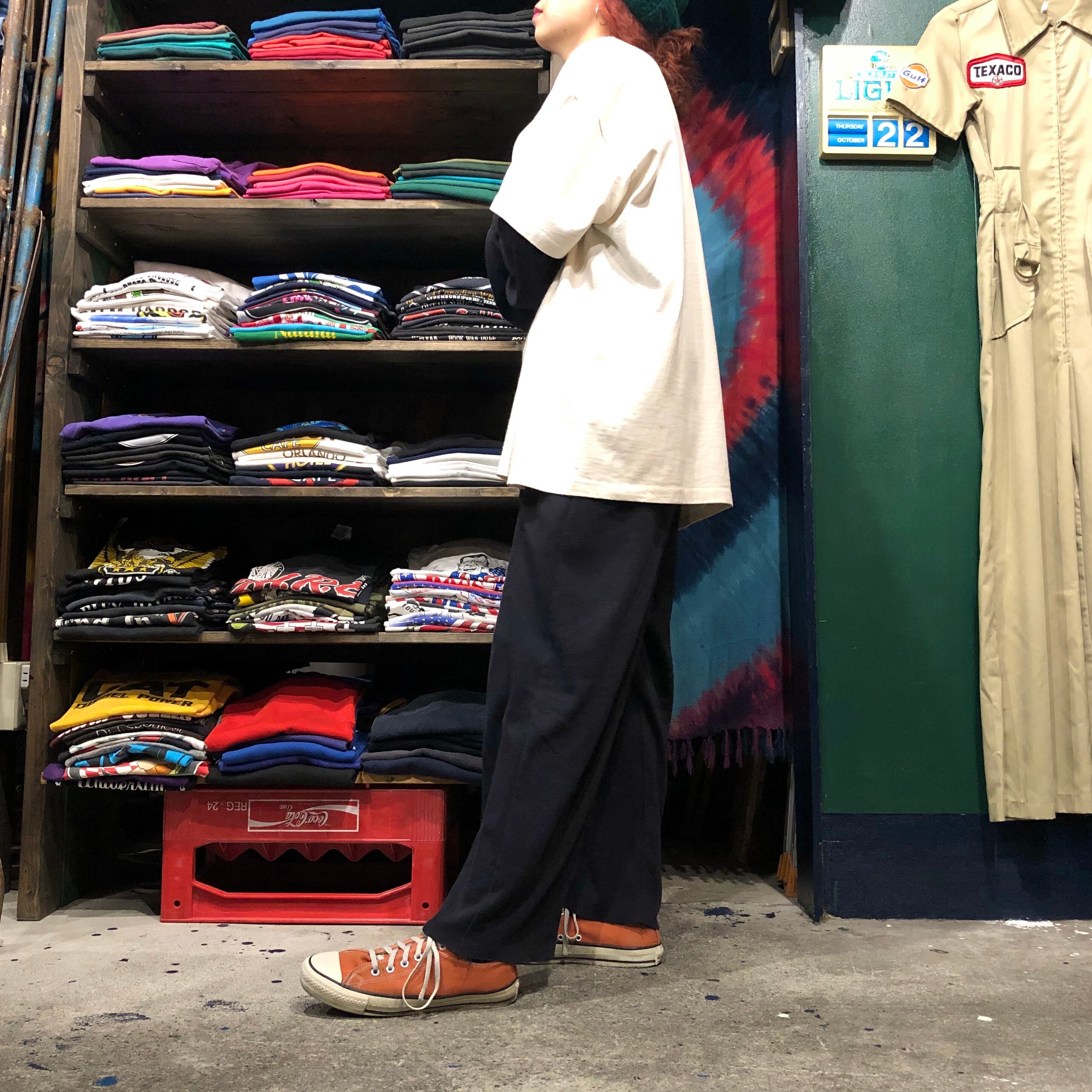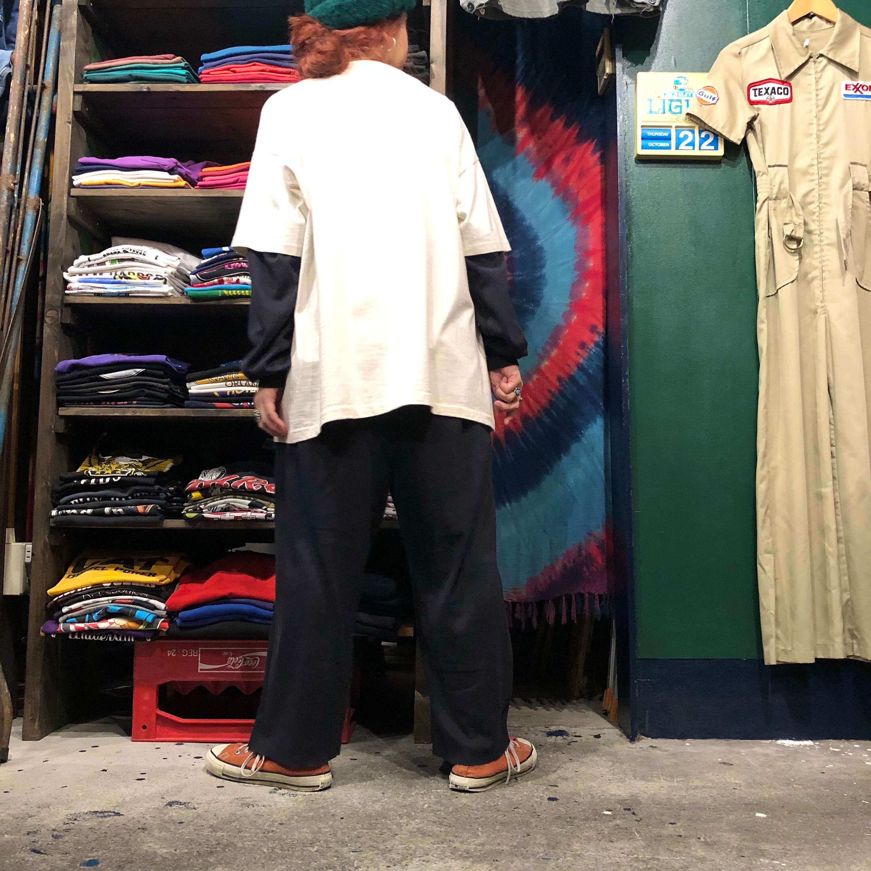 全体的な色褪せ、袖口に染みがあります。パンツの裾は切りっぱなしになっています。かなり使用感のある商品ですので古着にご理解のある方のご購入をお願い致します。