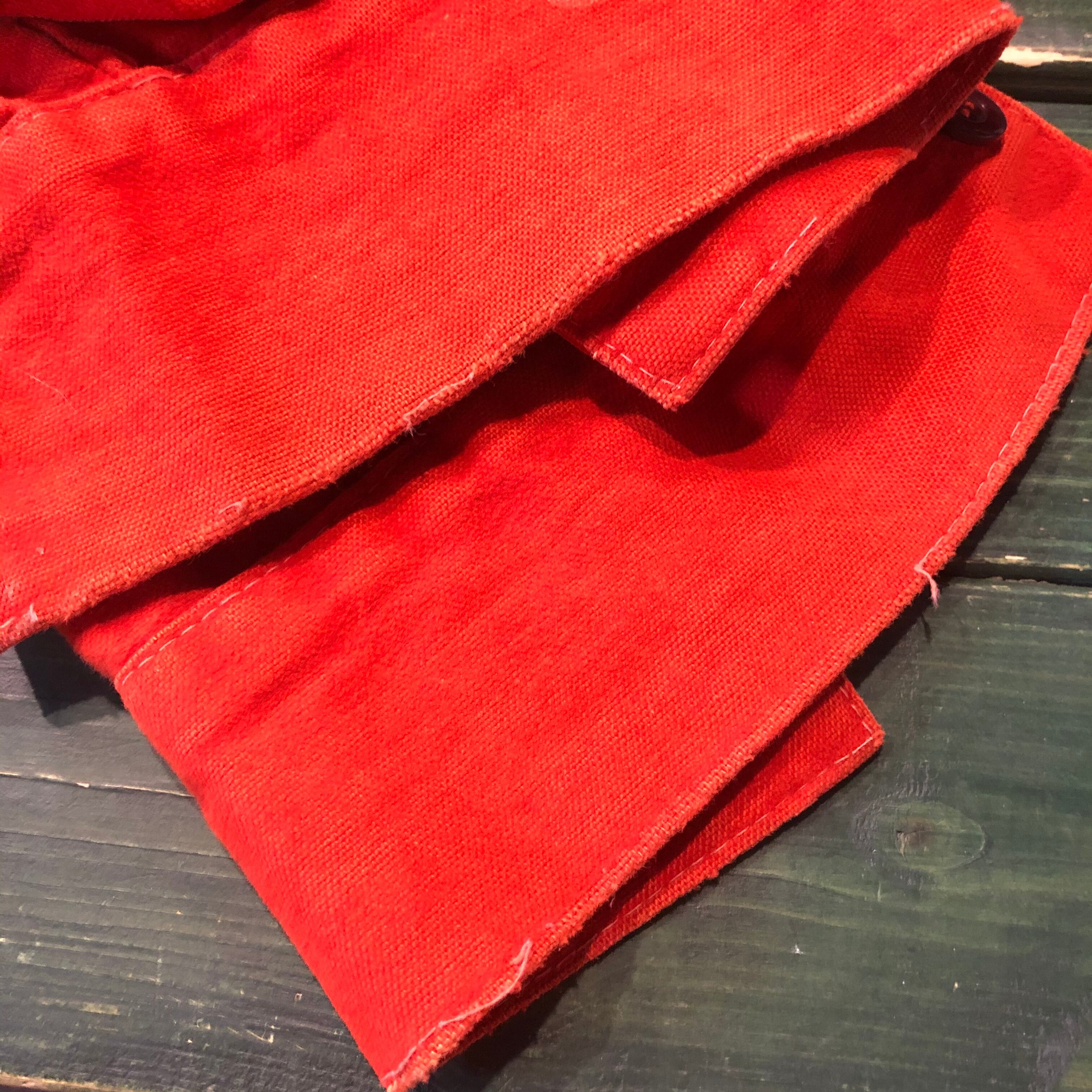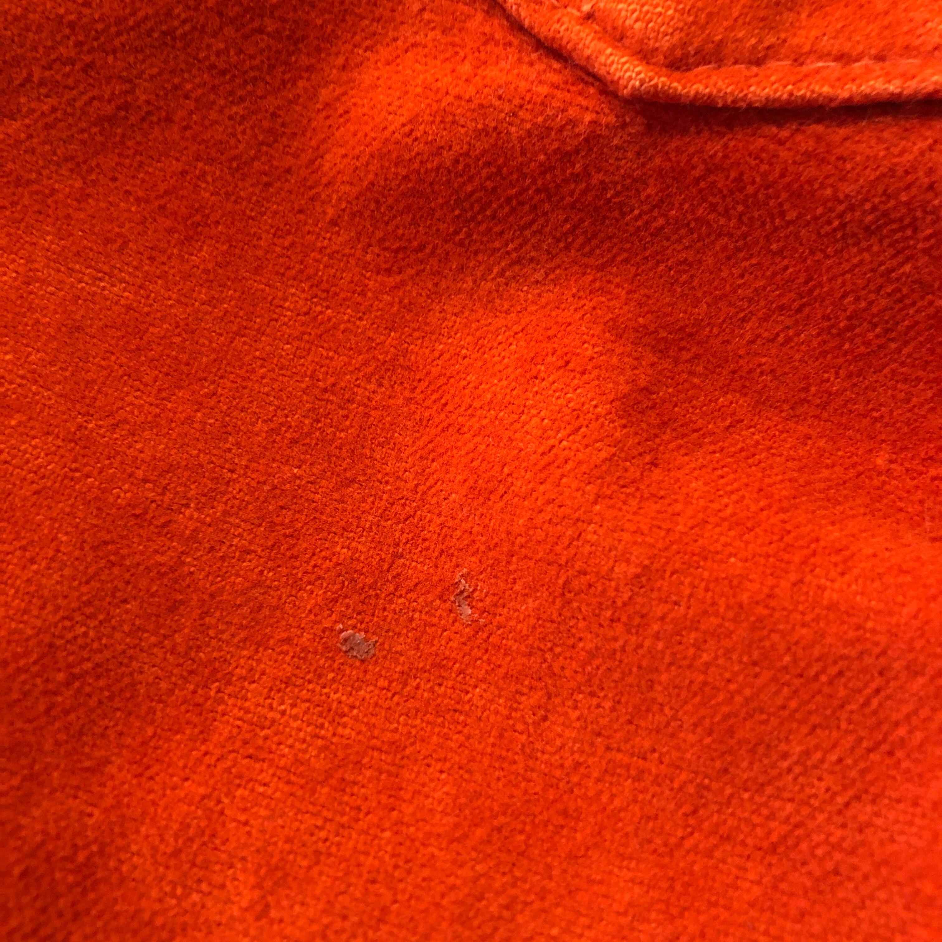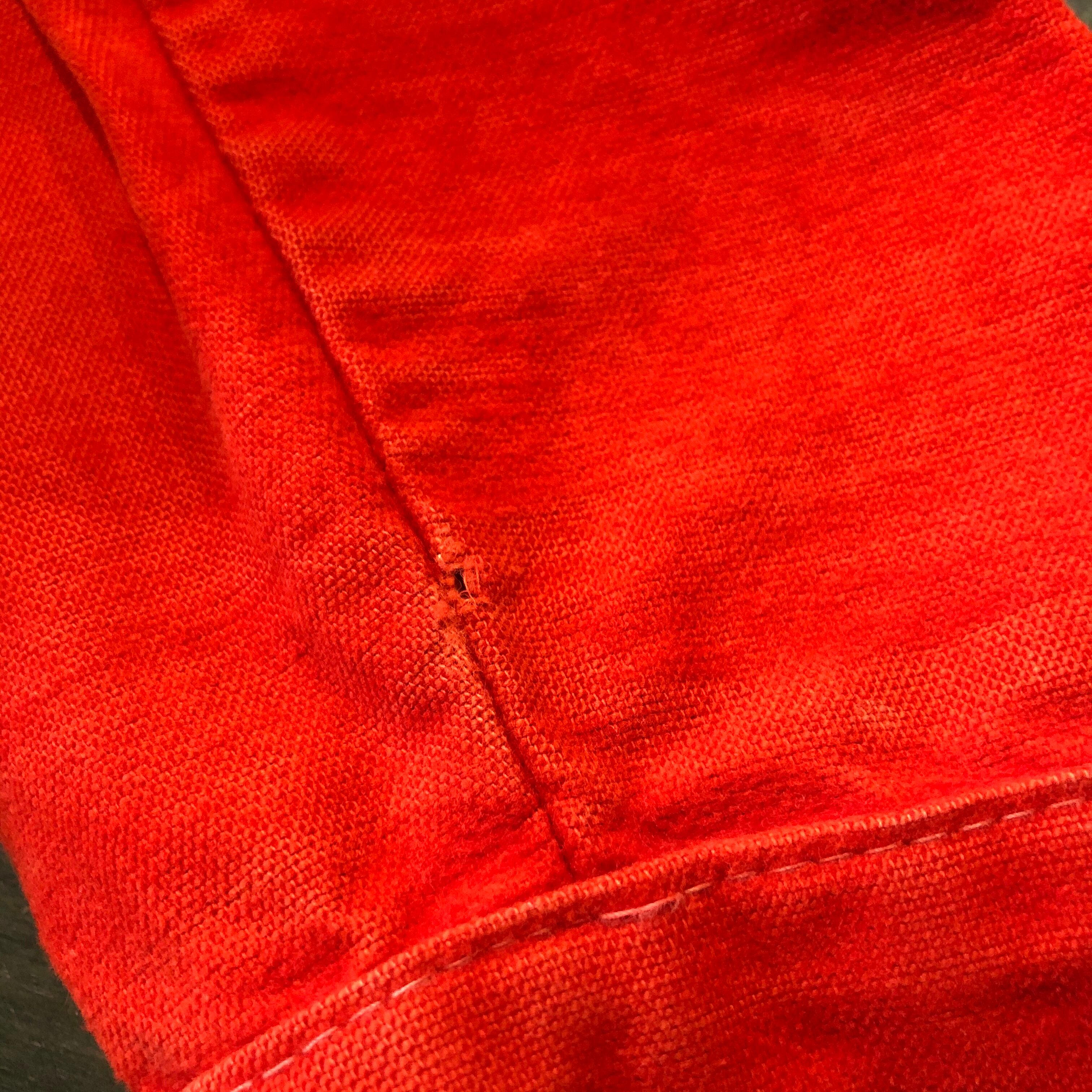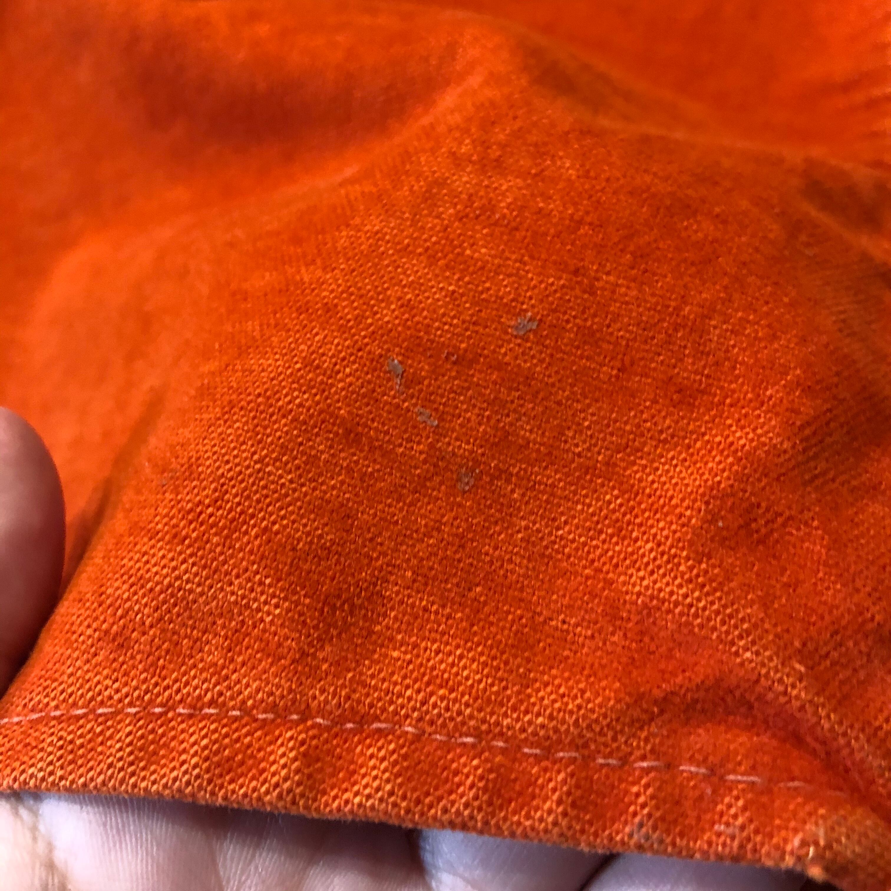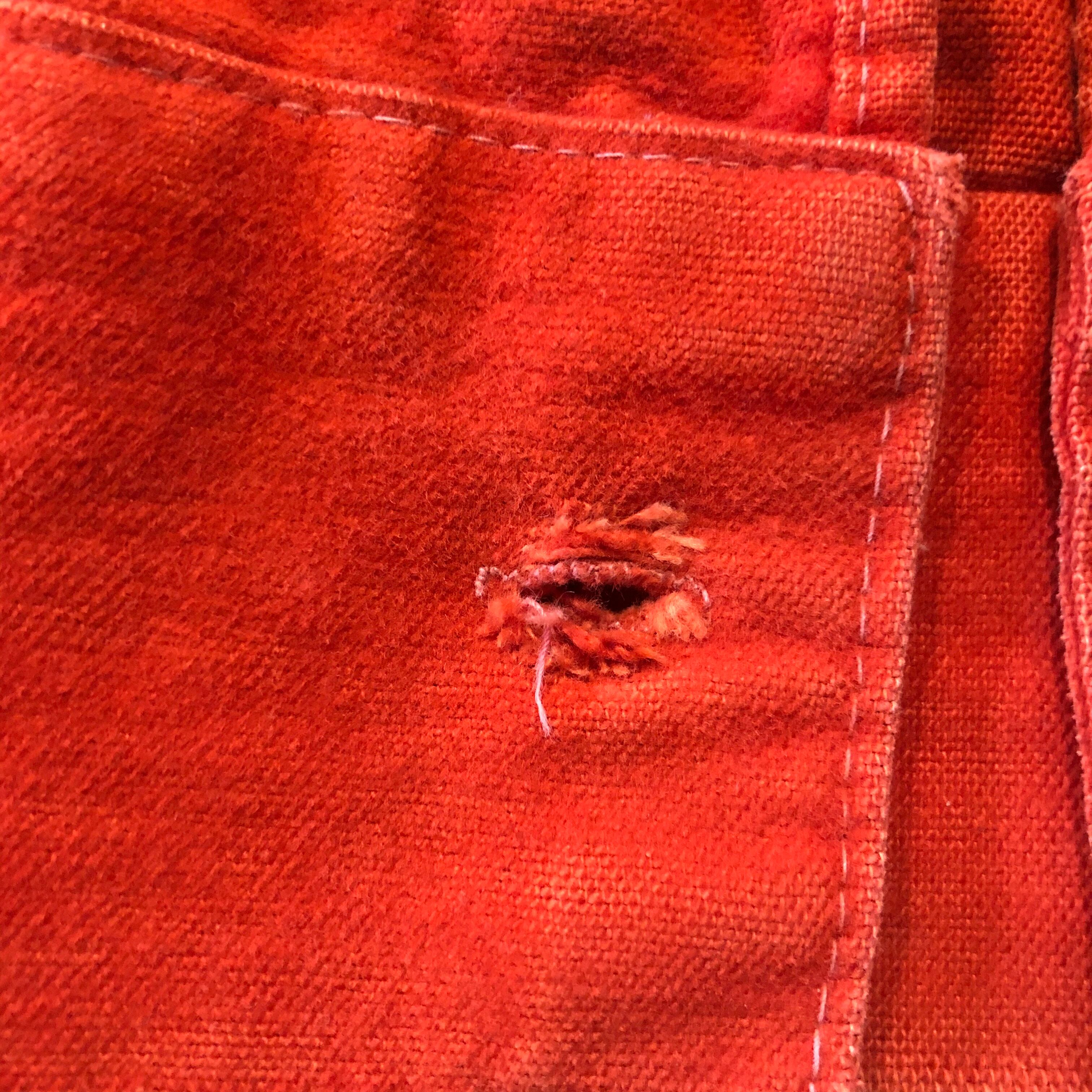 袖口のボタンホールのダメージと違うボタンの変更、糸のほつれ、小さな染みや汚れ、生地のスレなどあります。かなり使用感のある商品ですので古着にご理解のある方のご購入をお願い致します。