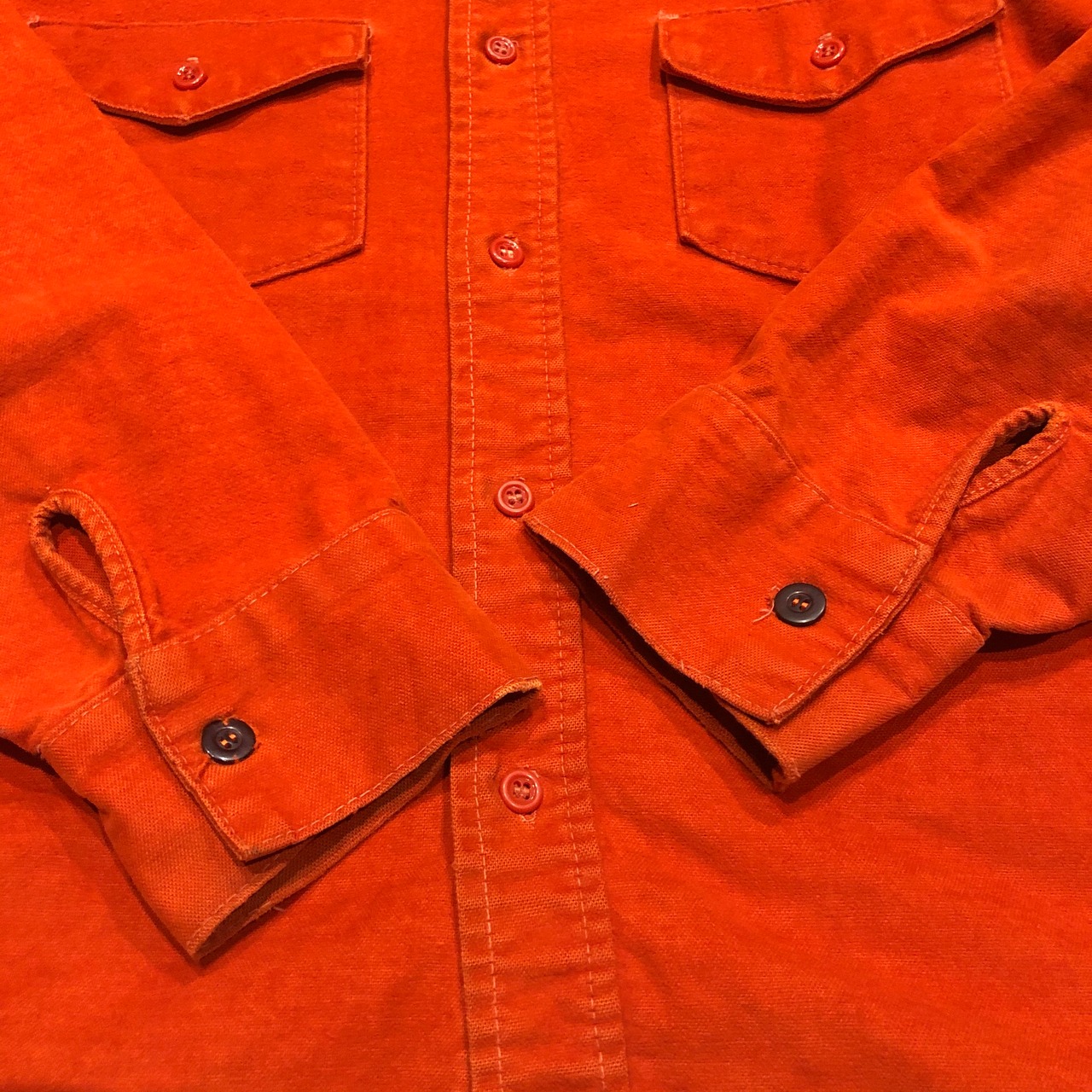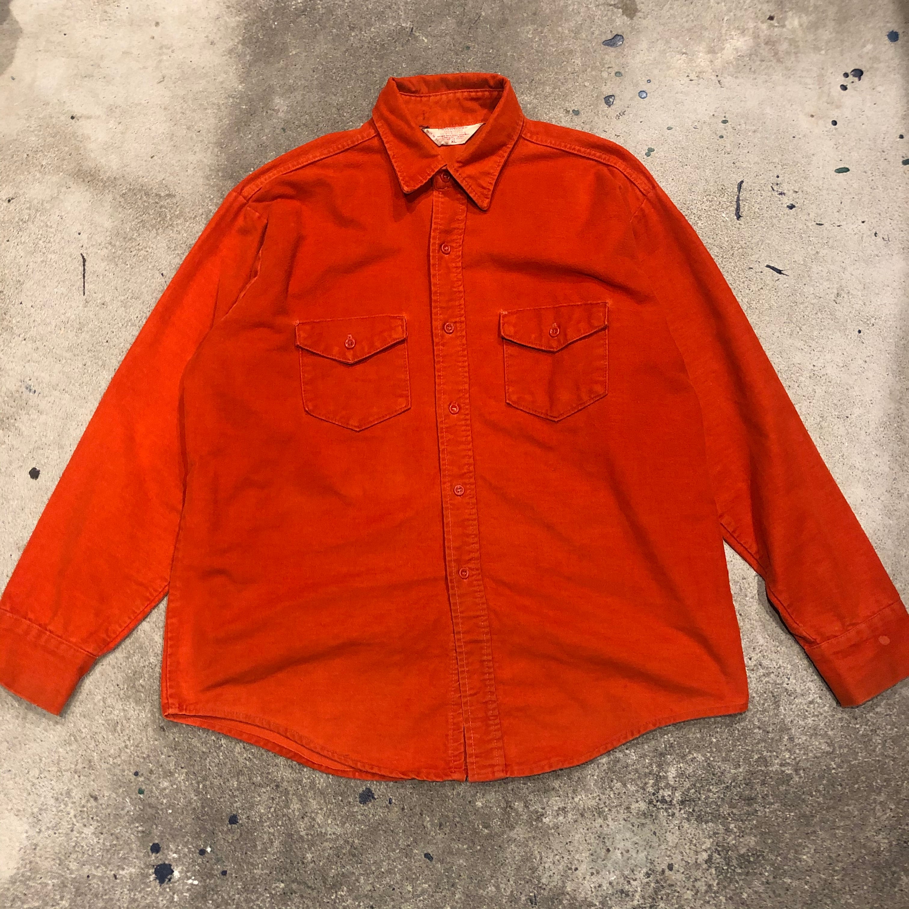 暖かみのあるオレンジが良い色のシャツです。