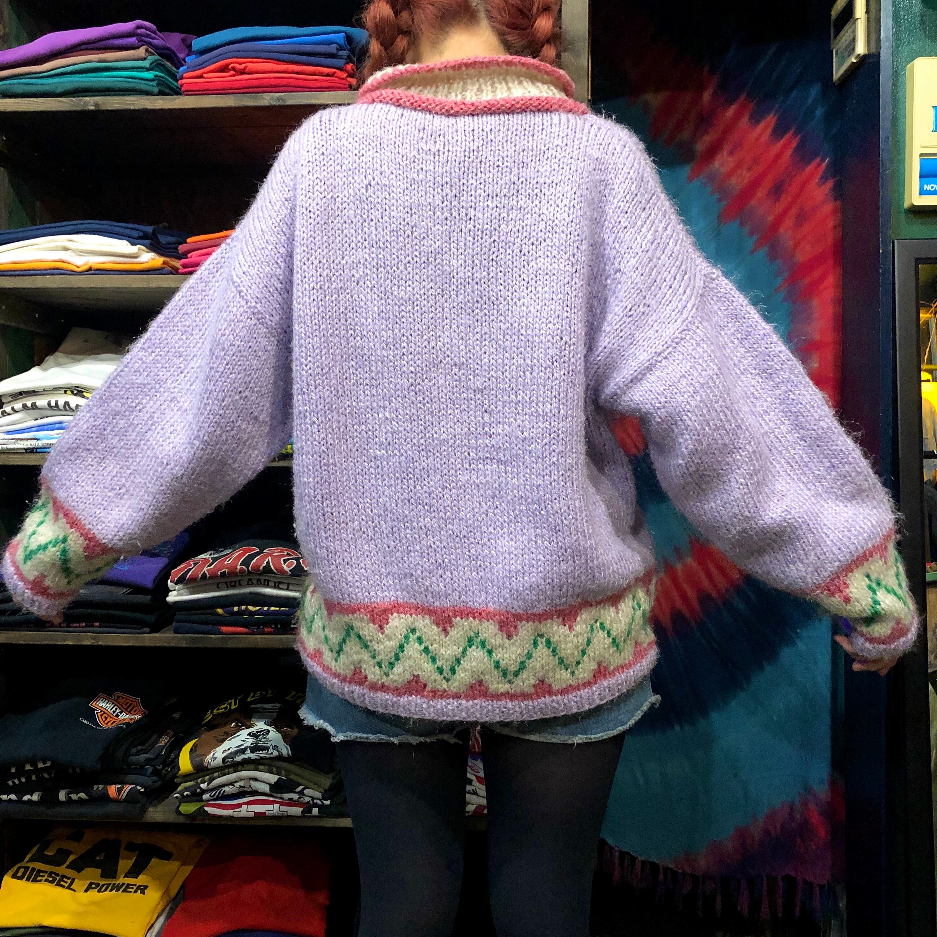 写真では伝わりづらいですが、少しラメの入った毛糸でさりげなくキラキラする感じもかわいいです。デニムに合わせてカジュアルに着てもスカートに合わせてラブリーに着るのも良いですね!