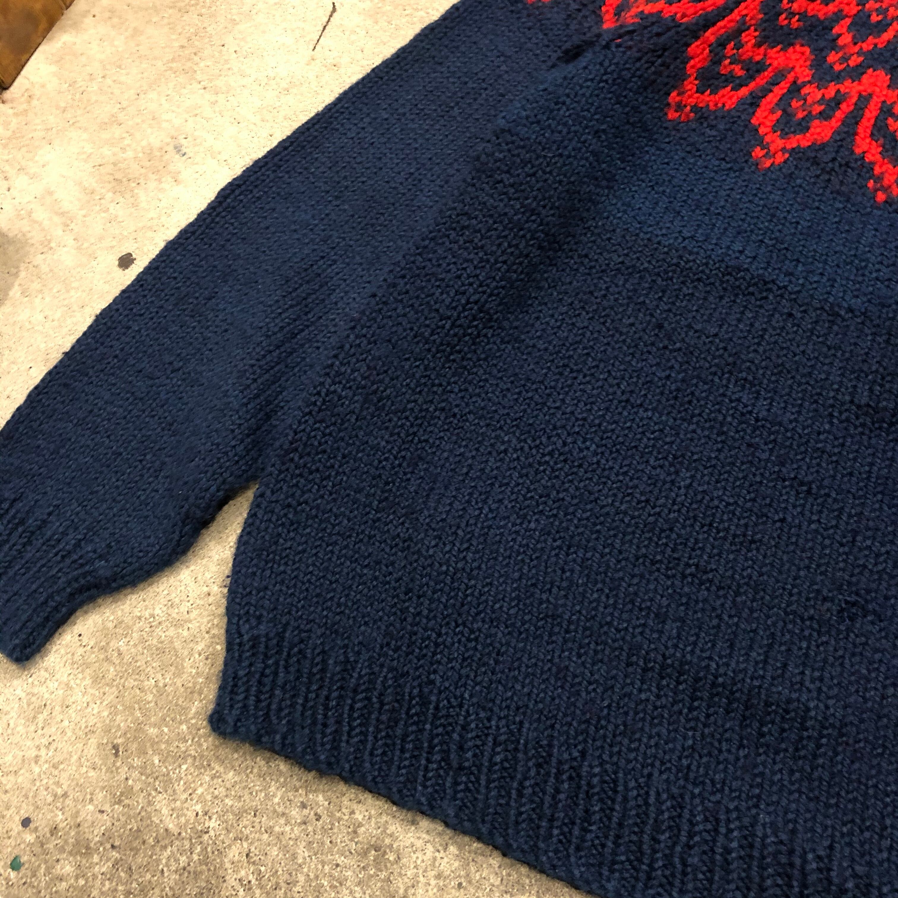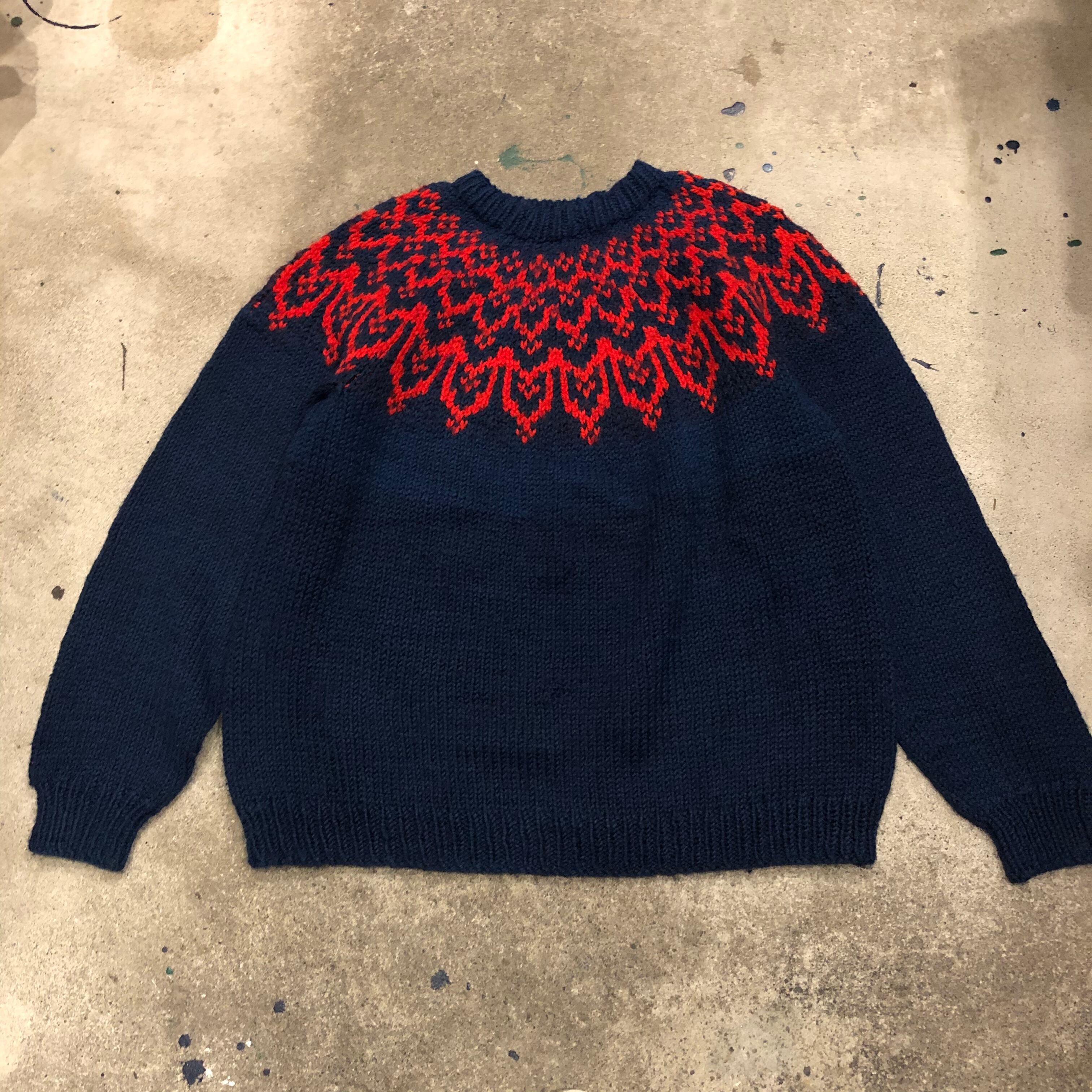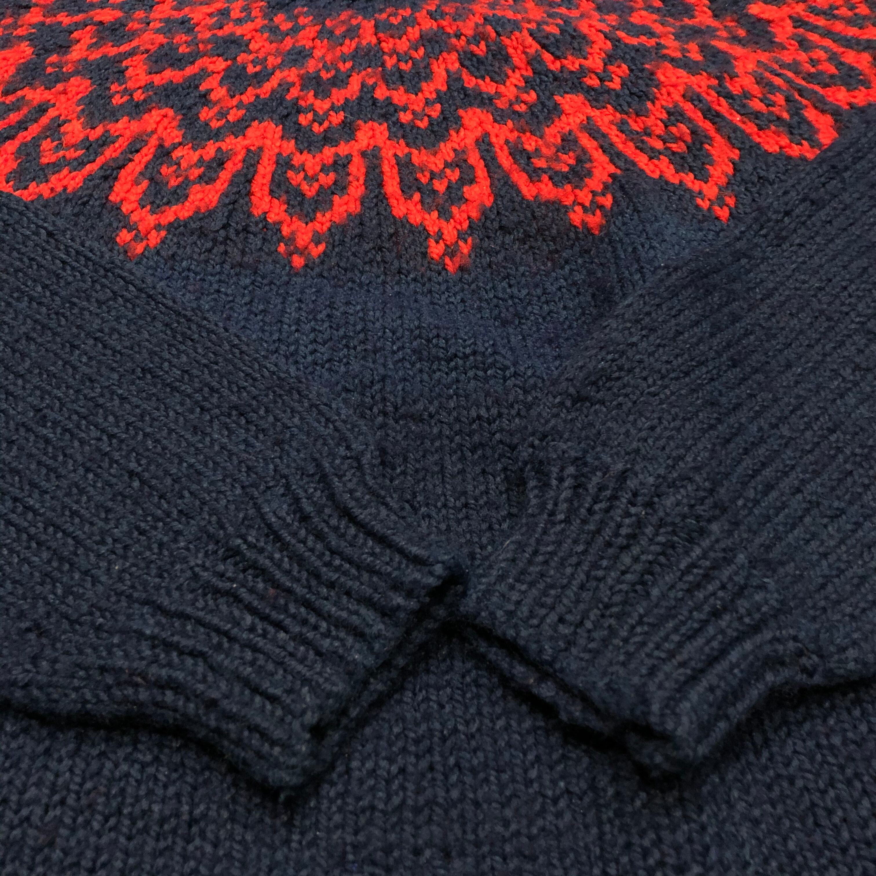 ネイビーに赤の模様が映えてかわいいセーターです。