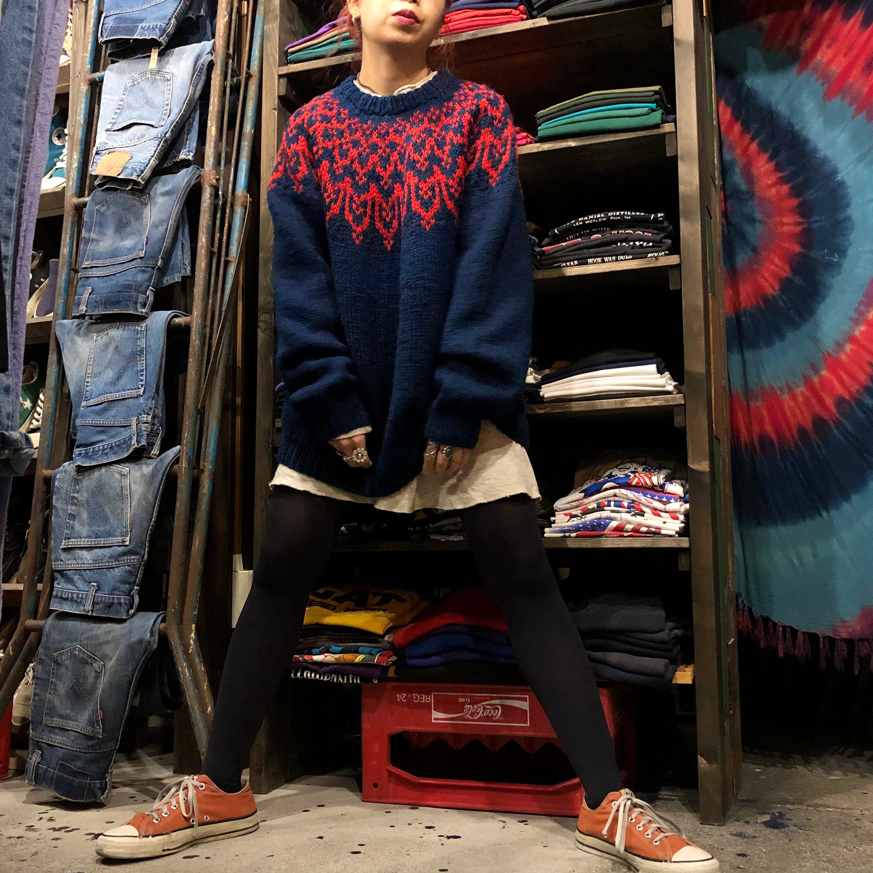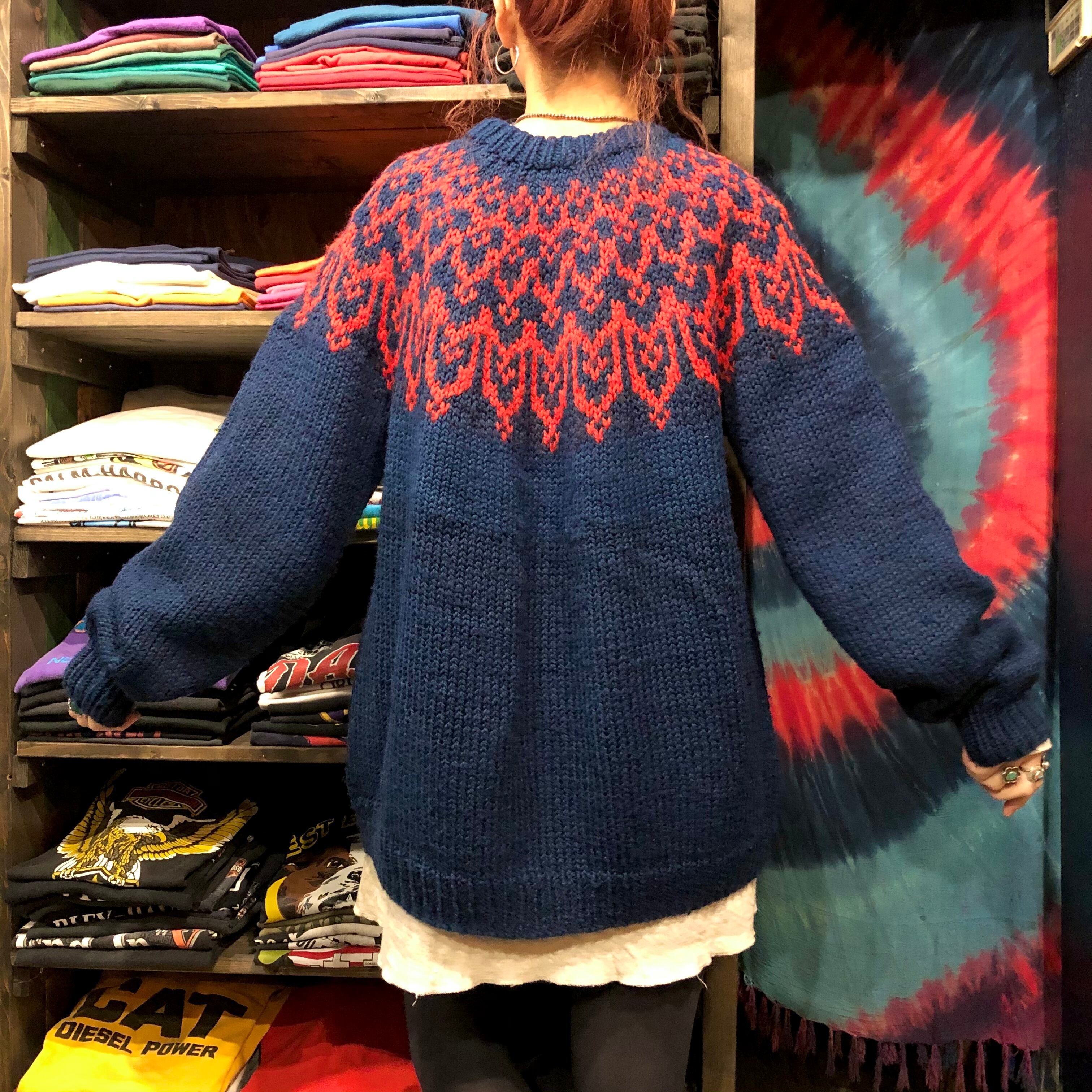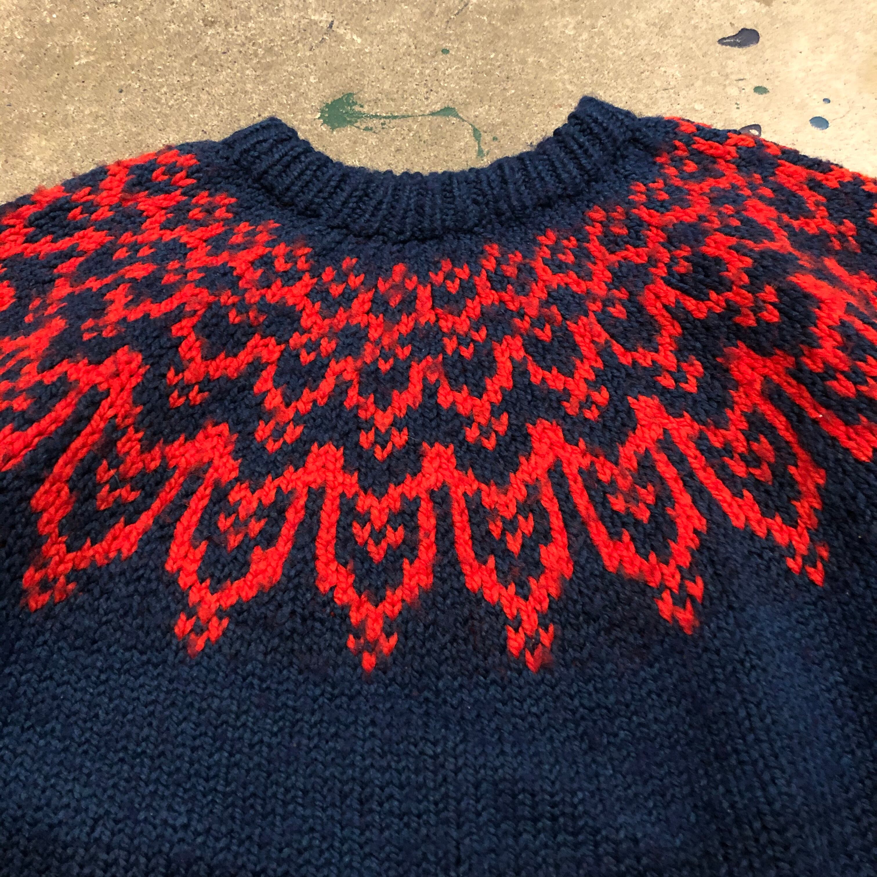ネイビーに赤の模様が映えてかわいいセーターです。