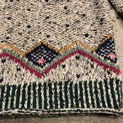 首回りの模様が女の子らしくてかわいいデザインのニットです。