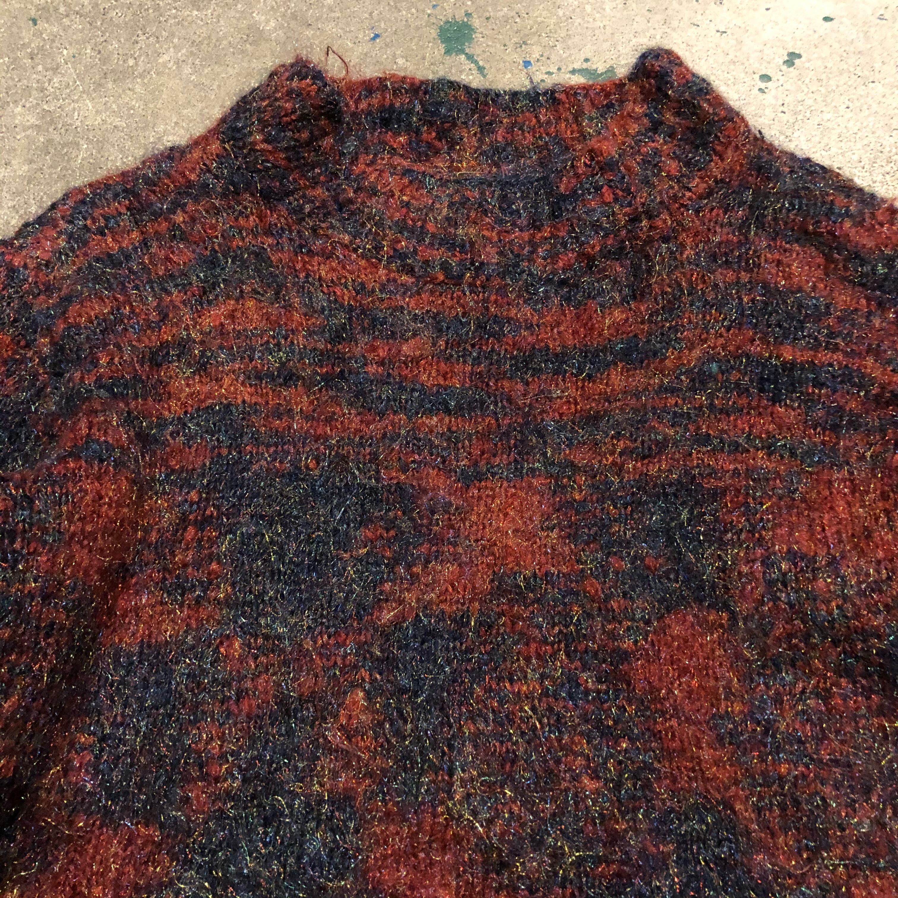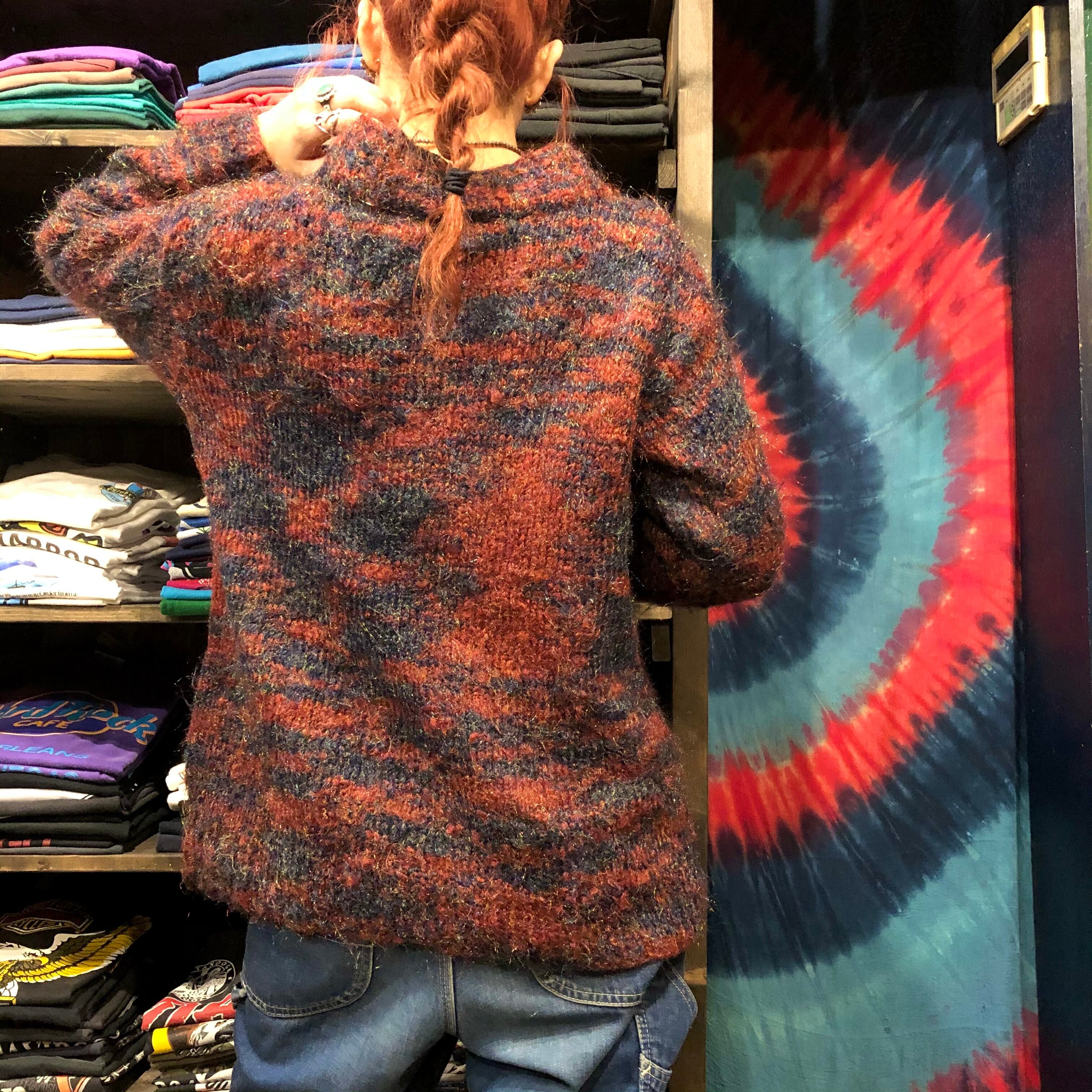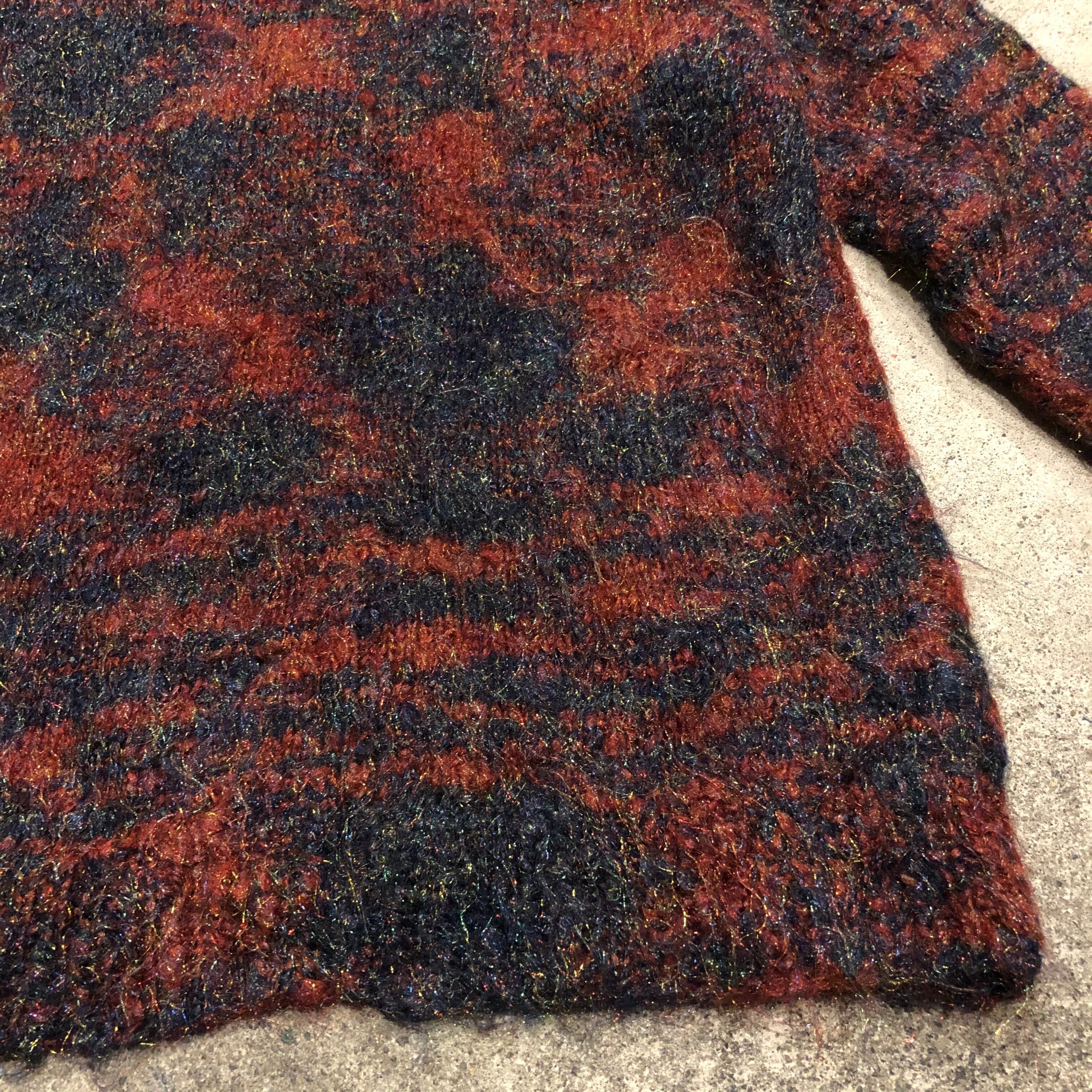 タイダイのようなもや〜とした柄にラメの糸がきらっと光る毛足の長いニットです。