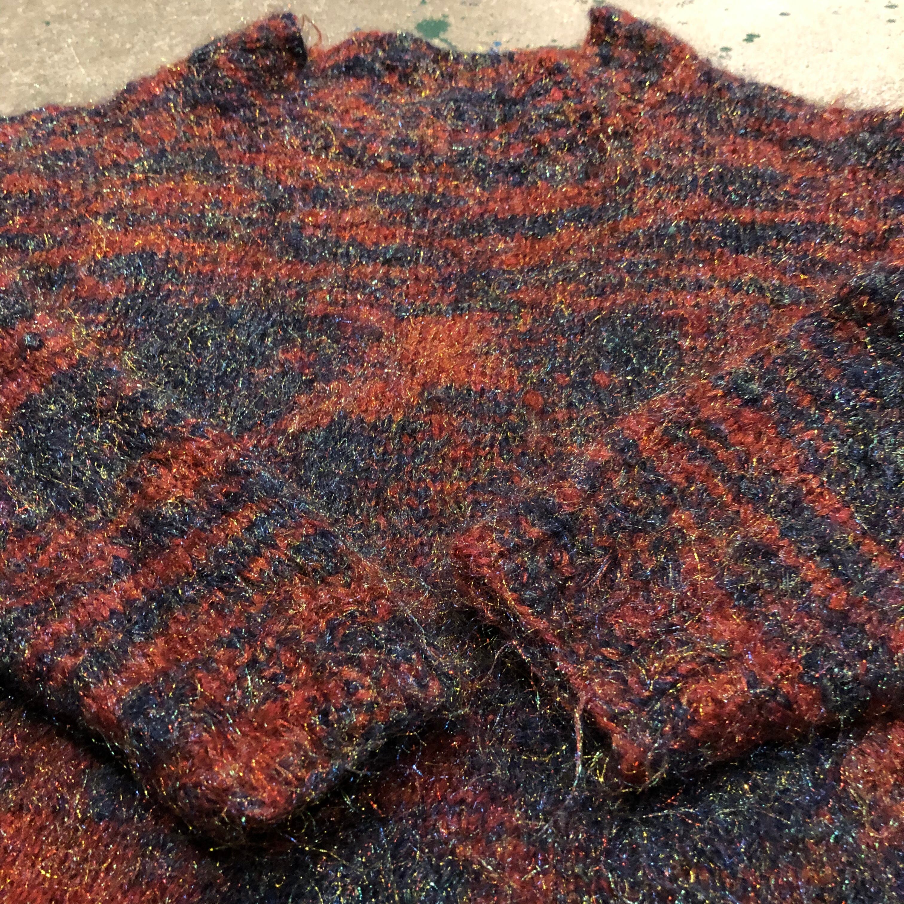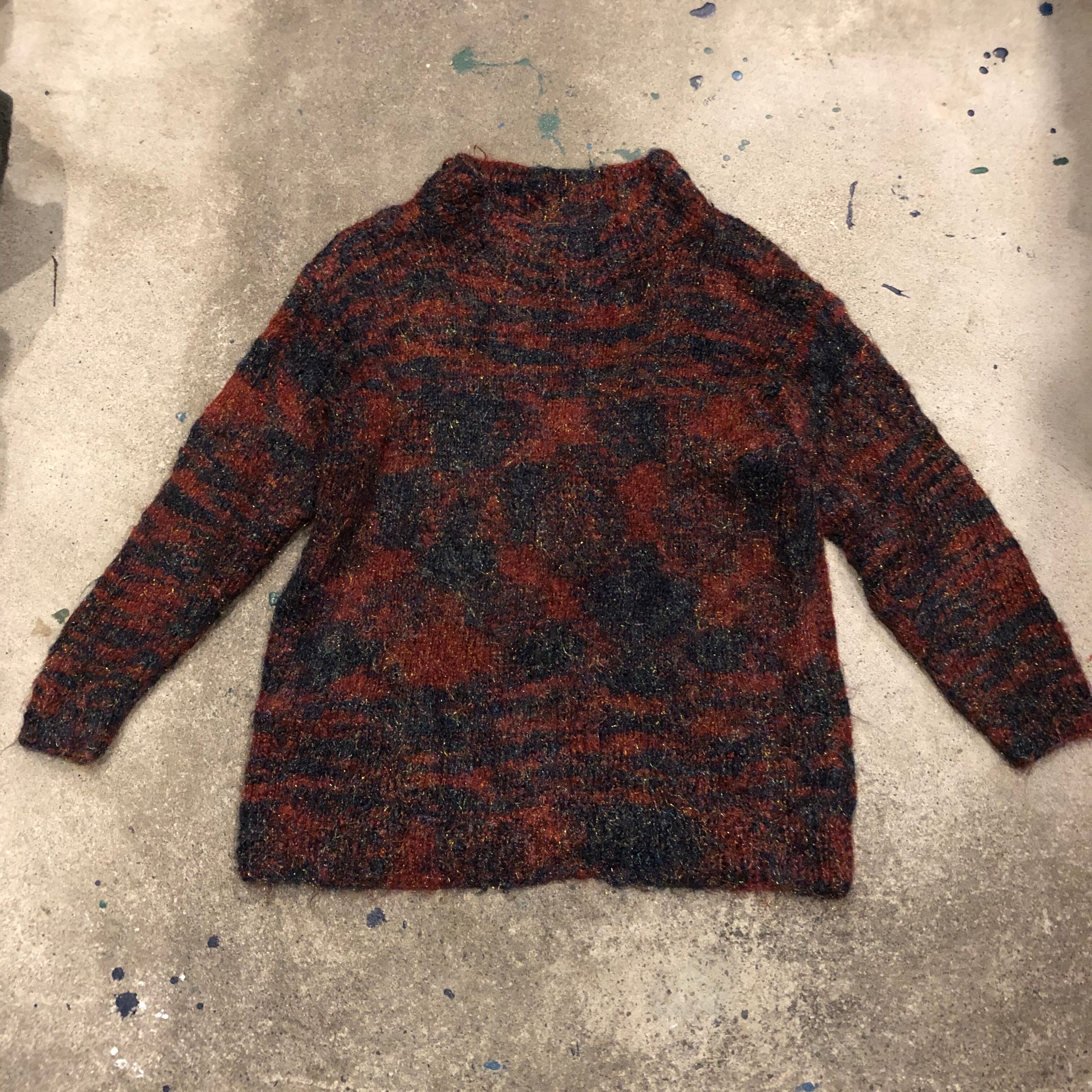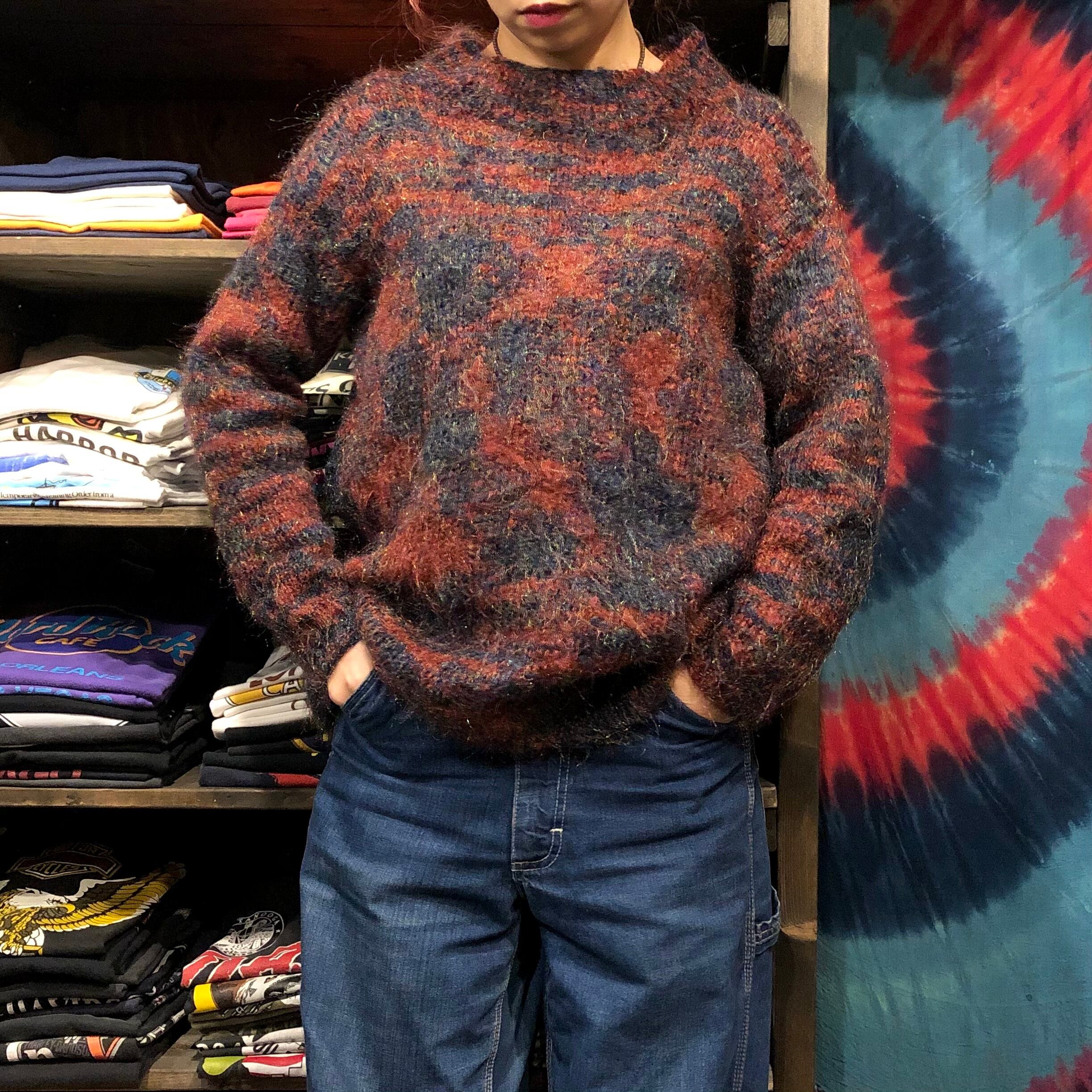 タイダイのようなもや〜とした柄にラメの糸がきらっと光る毛足の長いニットです。