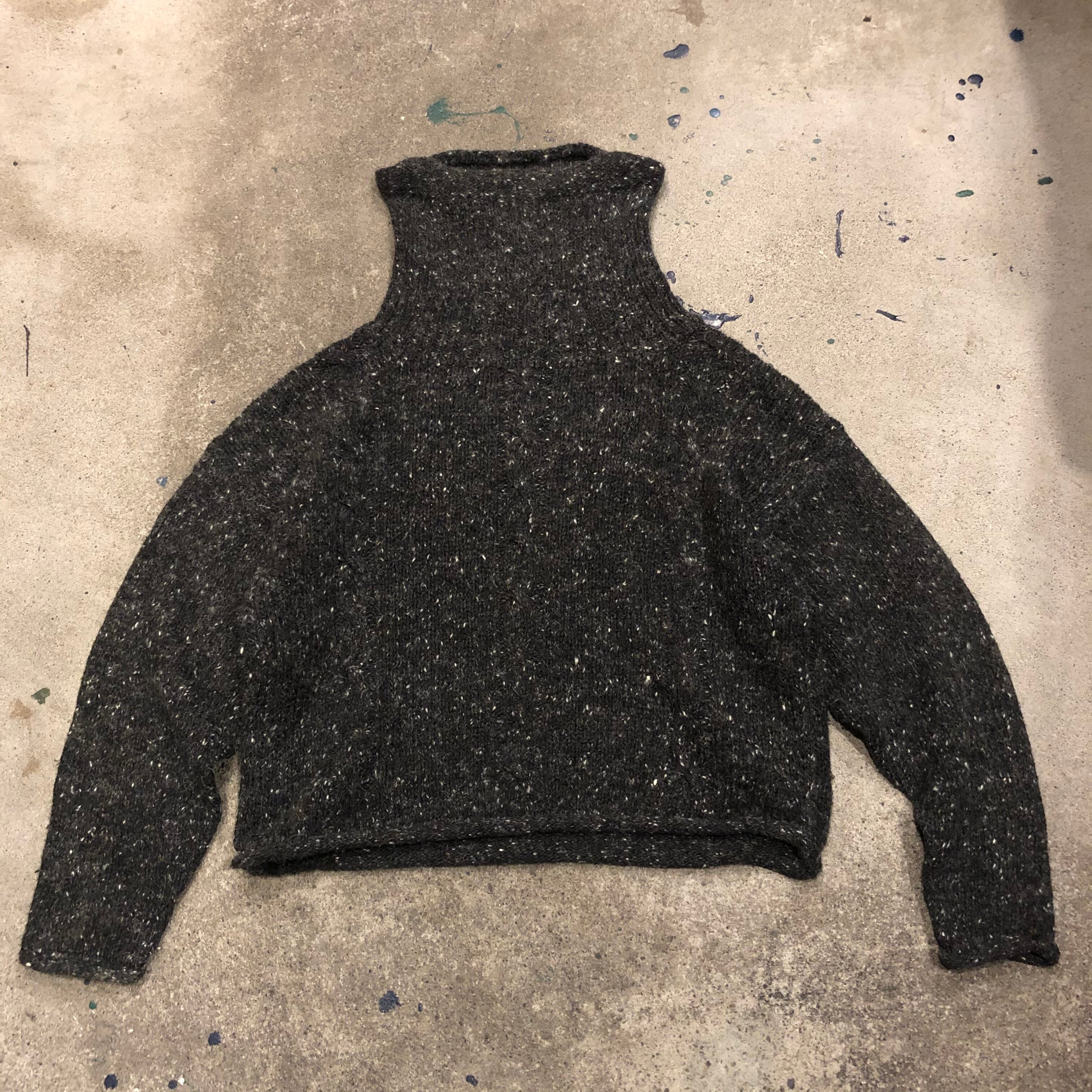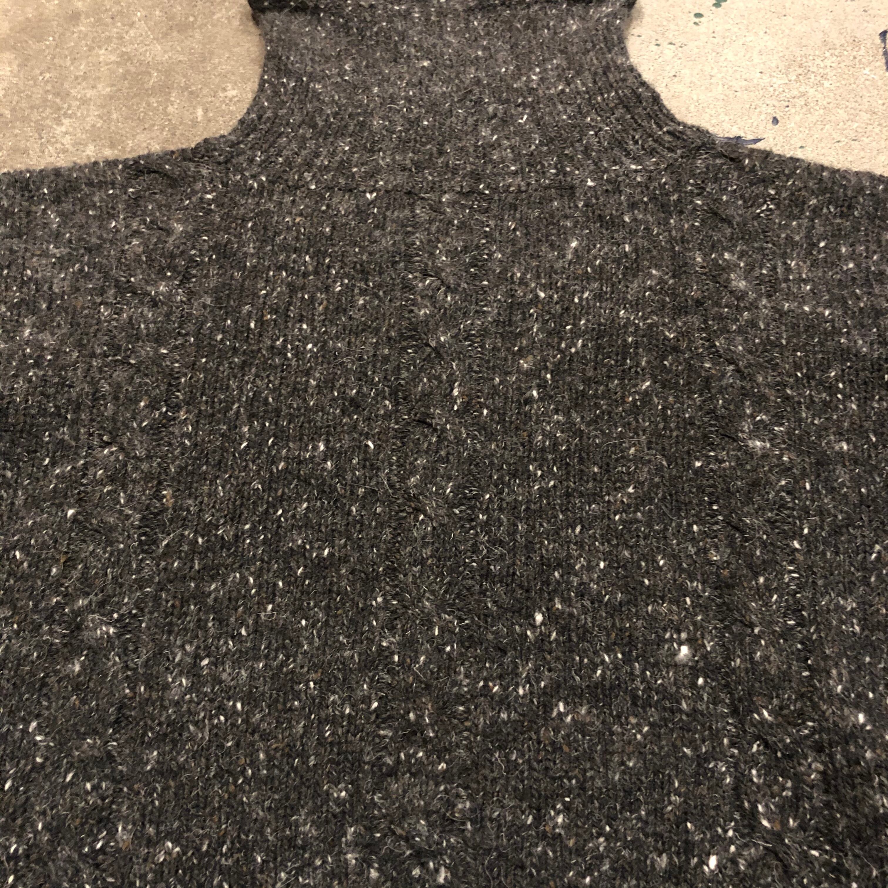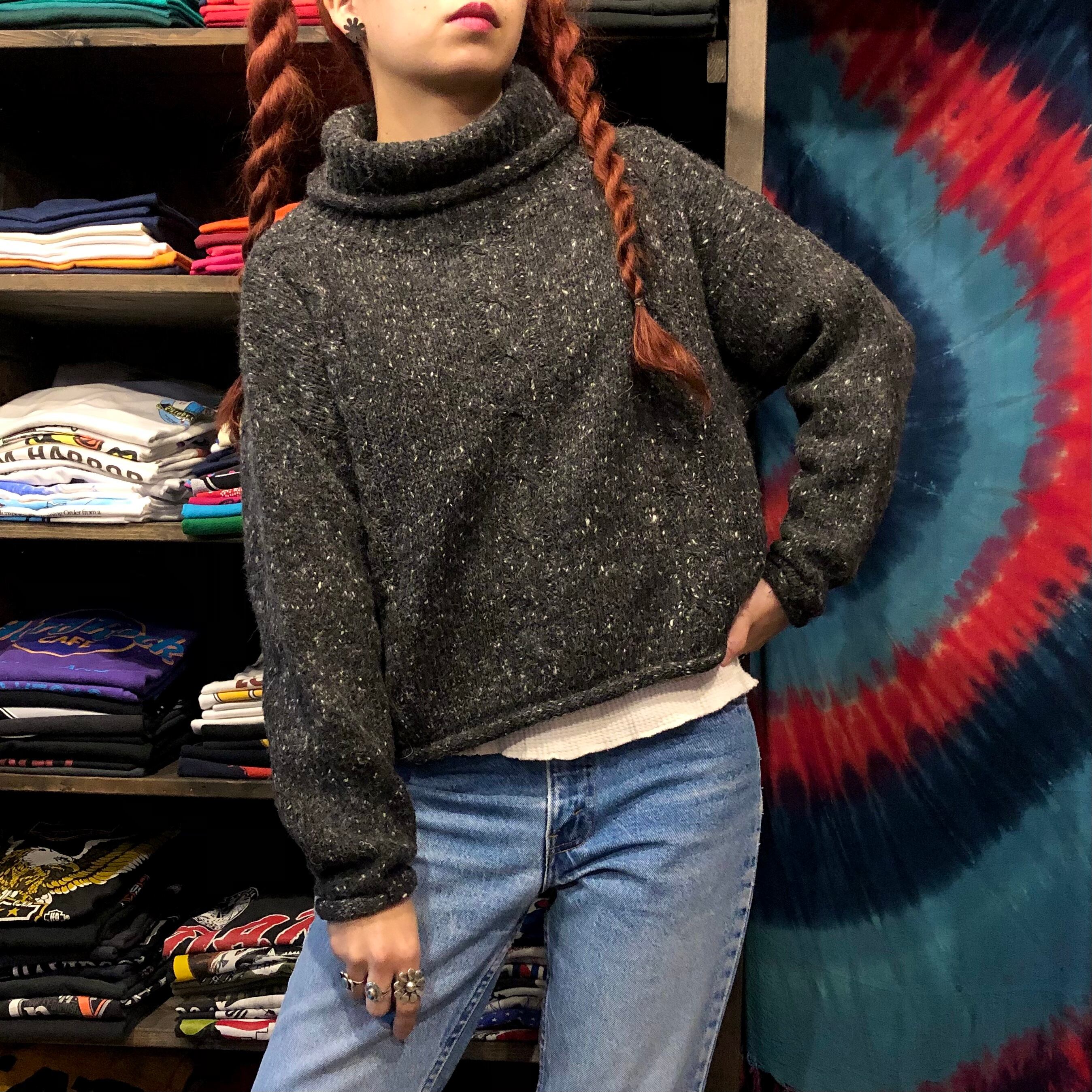 身幅が広くてショート丈というバランスがかわいいです。裾や袖口がくるんとなっていたり、さりげなく模様編みがされているところ、タートルネックのボリューム感など細かいディティールが良い感じです。