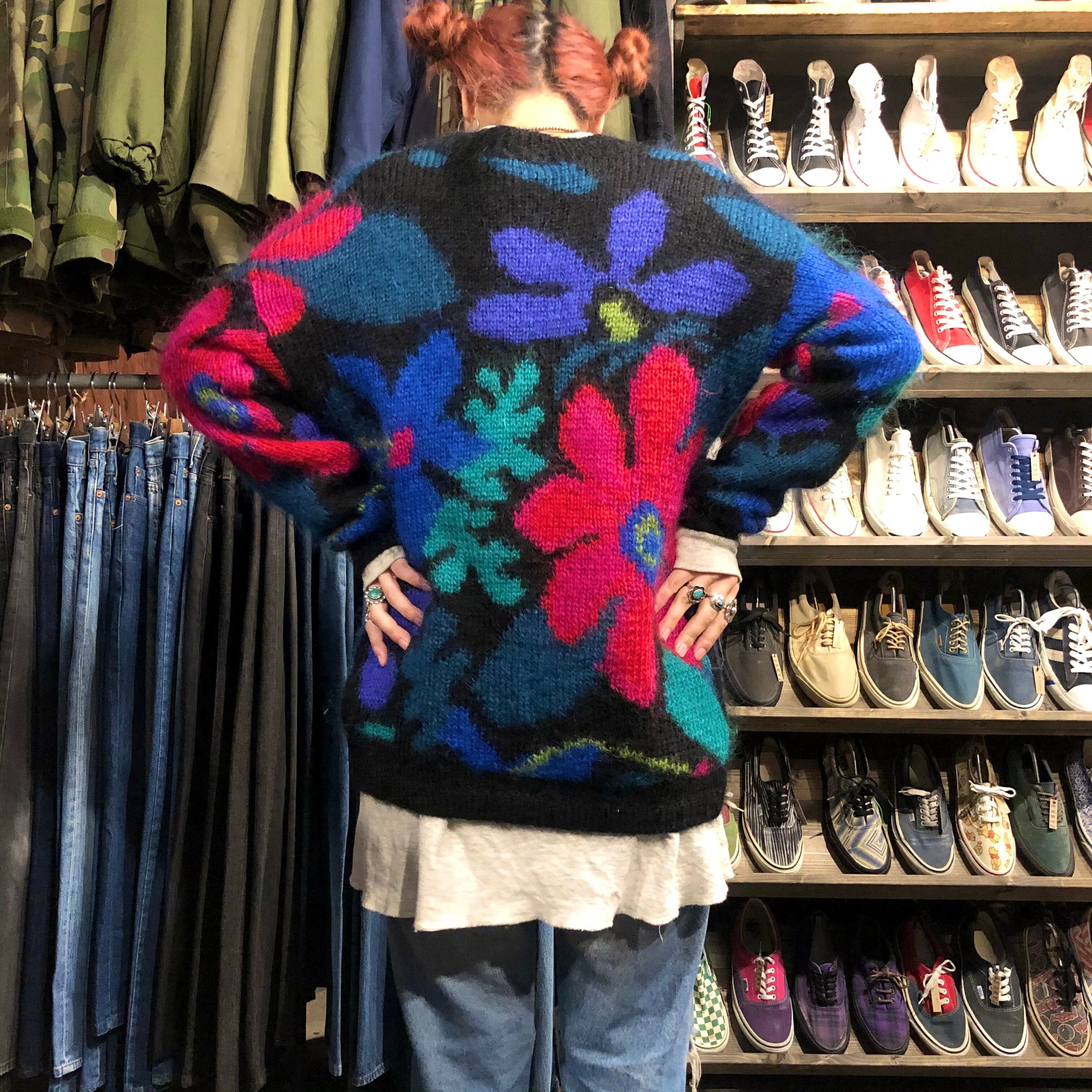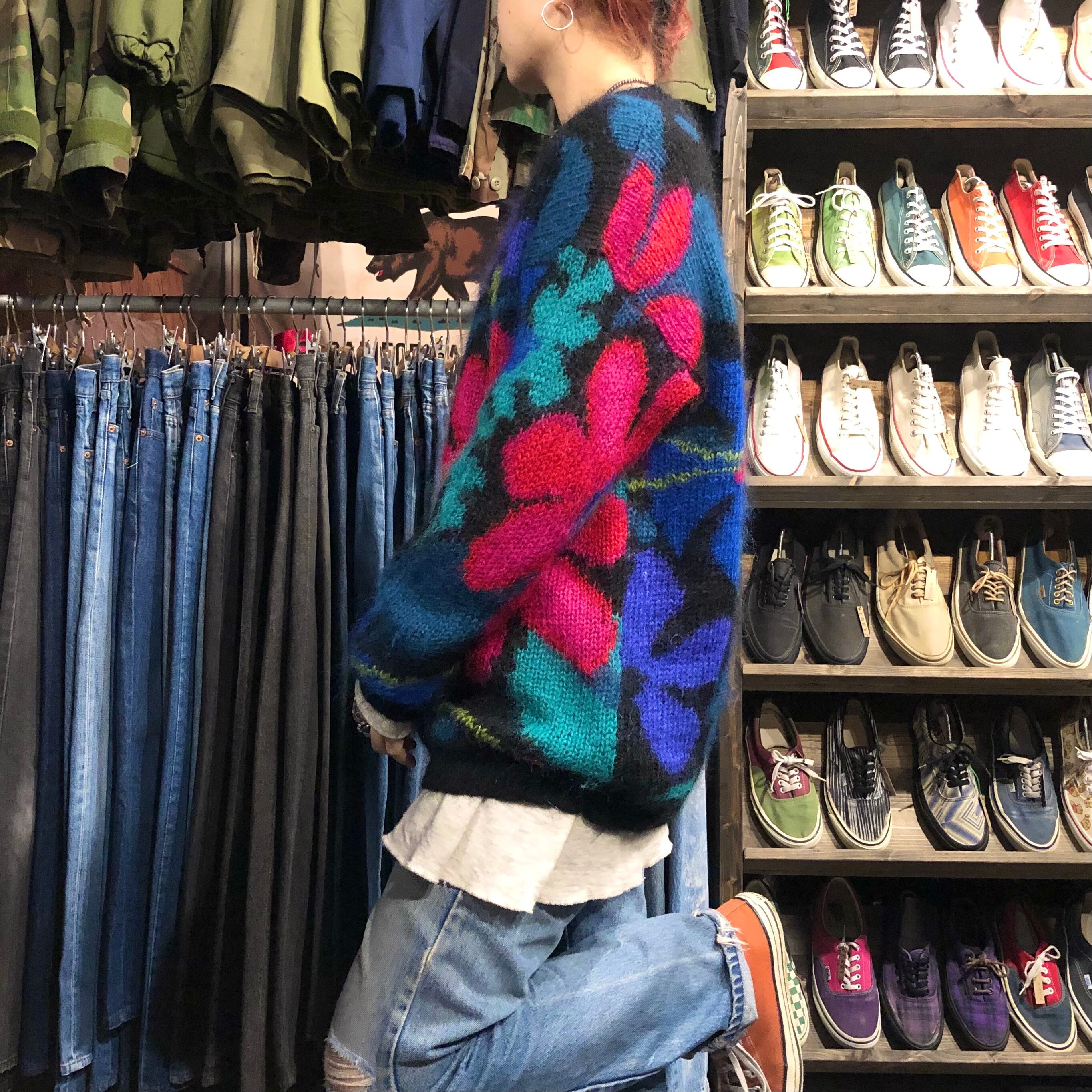 毛足のあるモヘアで品のある雰囲気もあります。サイケデリックなアイテムと合わせたりしてもかわいいと思います。程よいボリューム感で暖かく、アウターも着やすいところも良いですね!