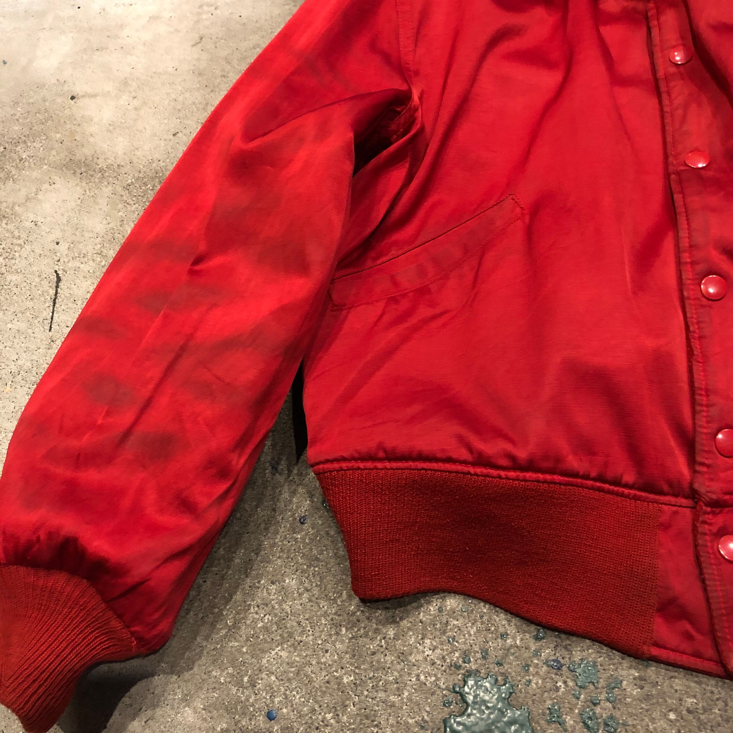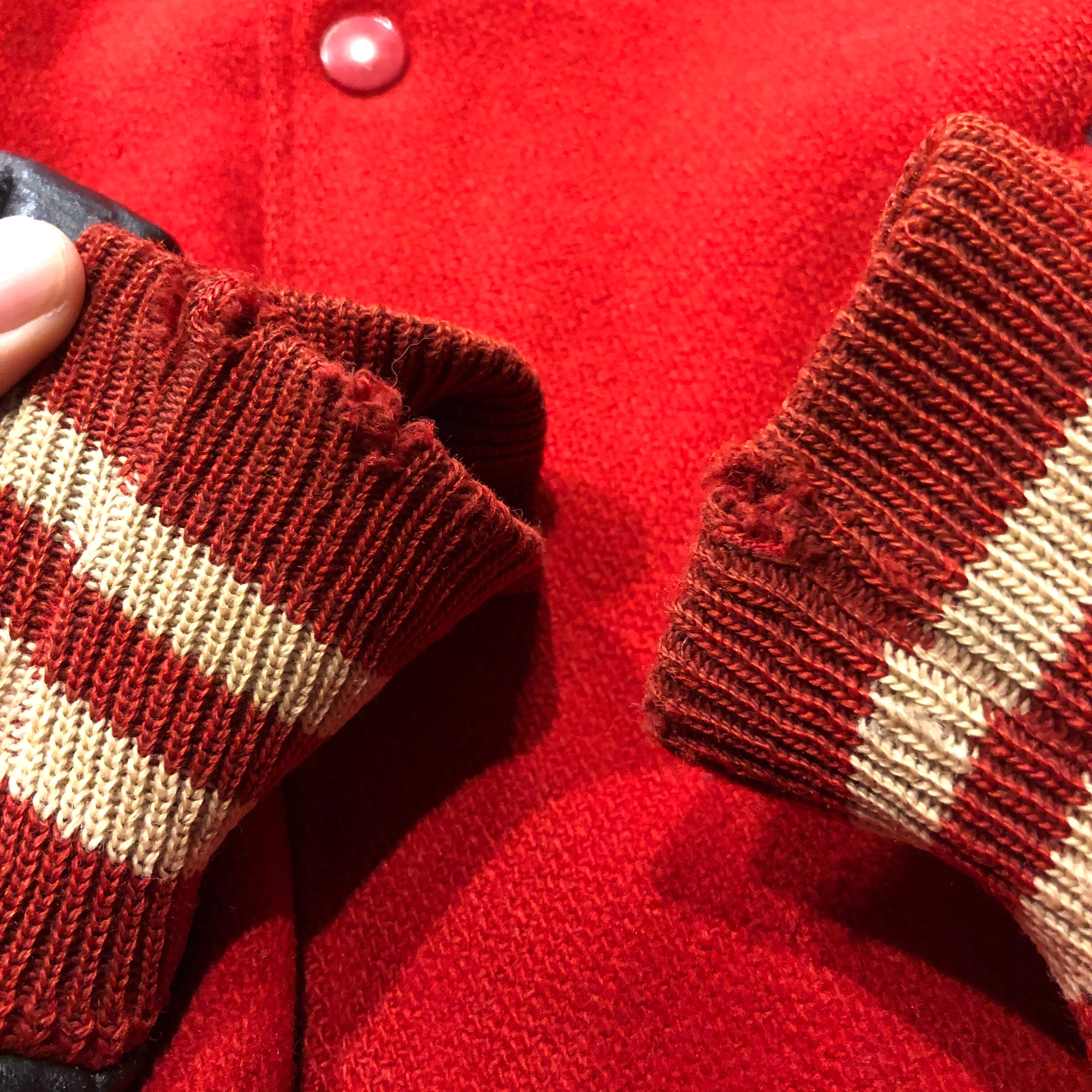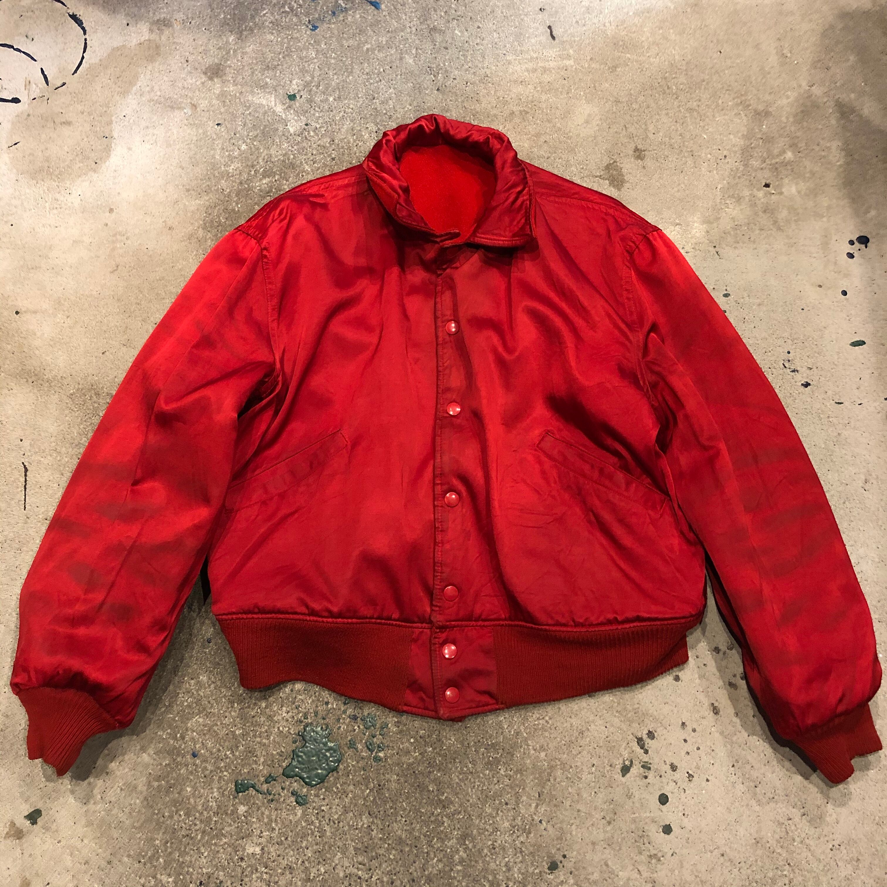 赤×黒のシンプルな配色がかっこいいスタジアムジャンパーです。リバーシブルで裏は真っ赤なサテンになっています。全体的にアジのある雰囲気で、男性におすすめの一着です。女性がワンピースと合わせたりするのもかわいいですね!