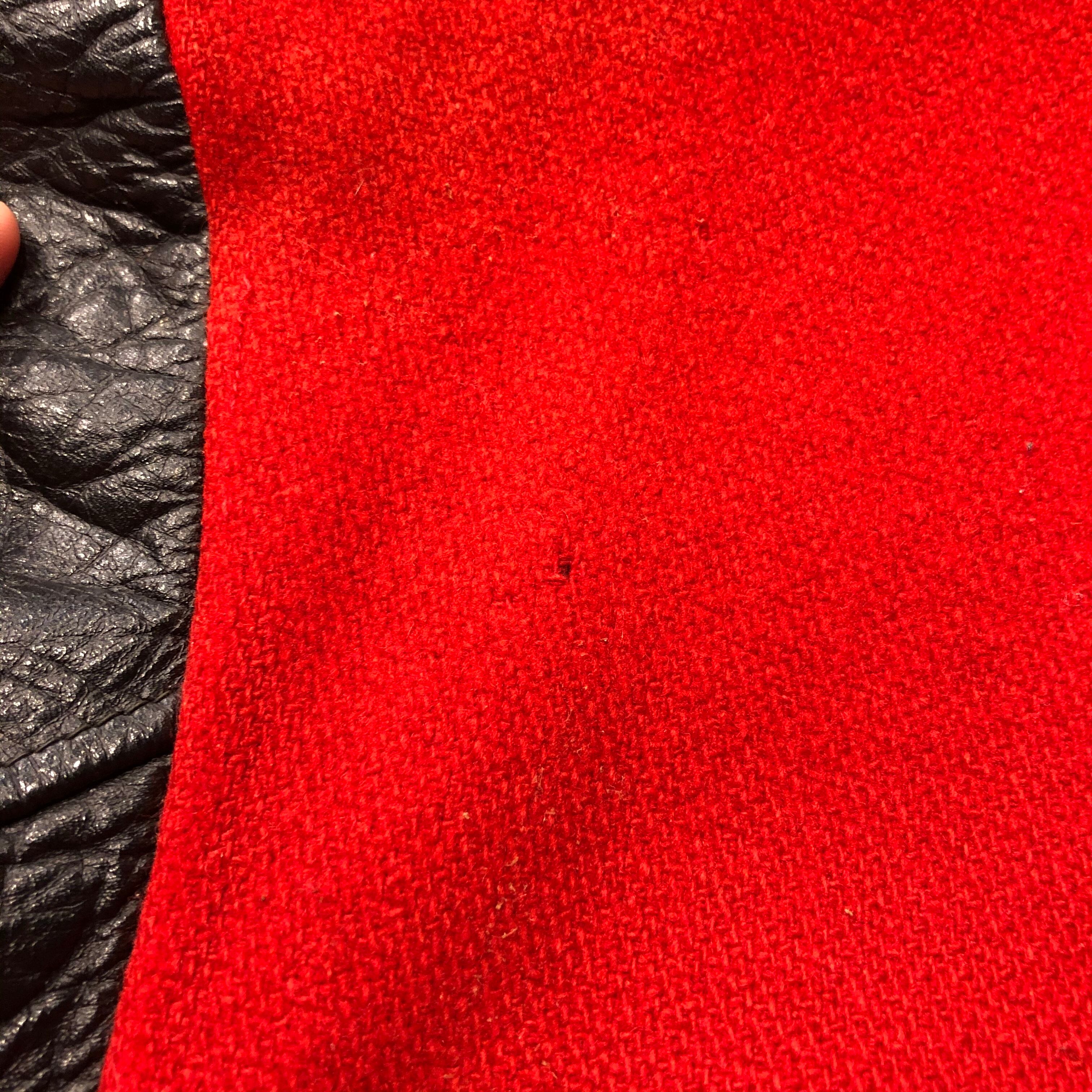 不明ですが、見頃はウール、袖はレザーだと思います。