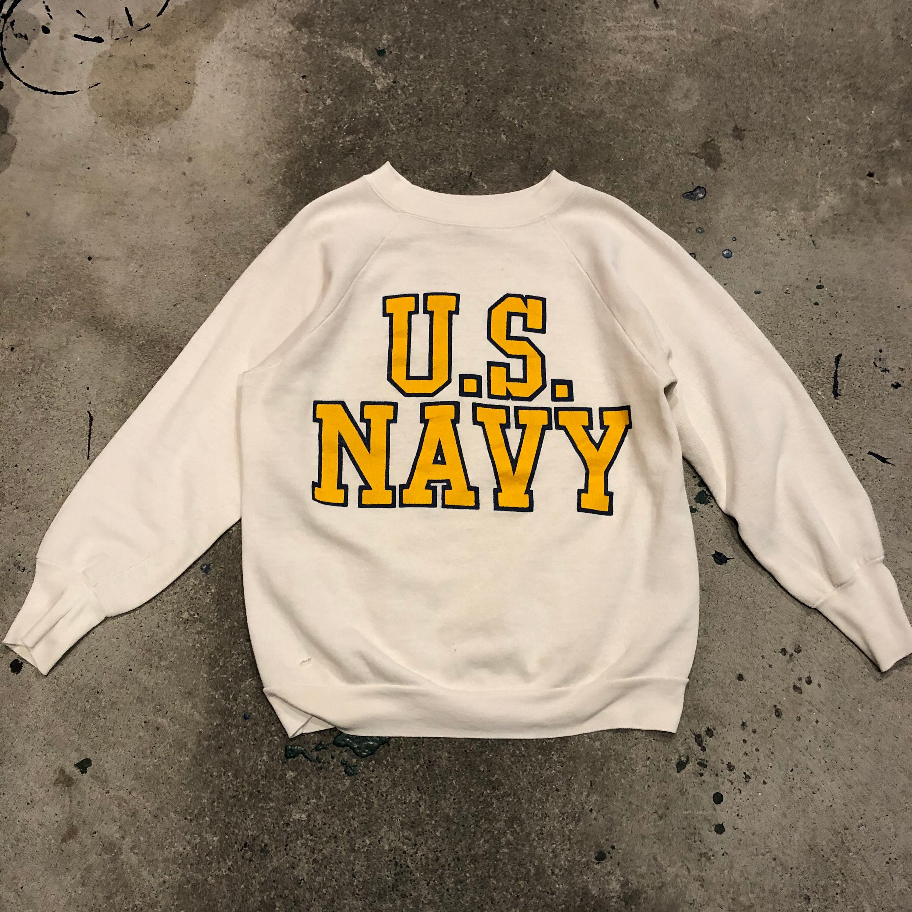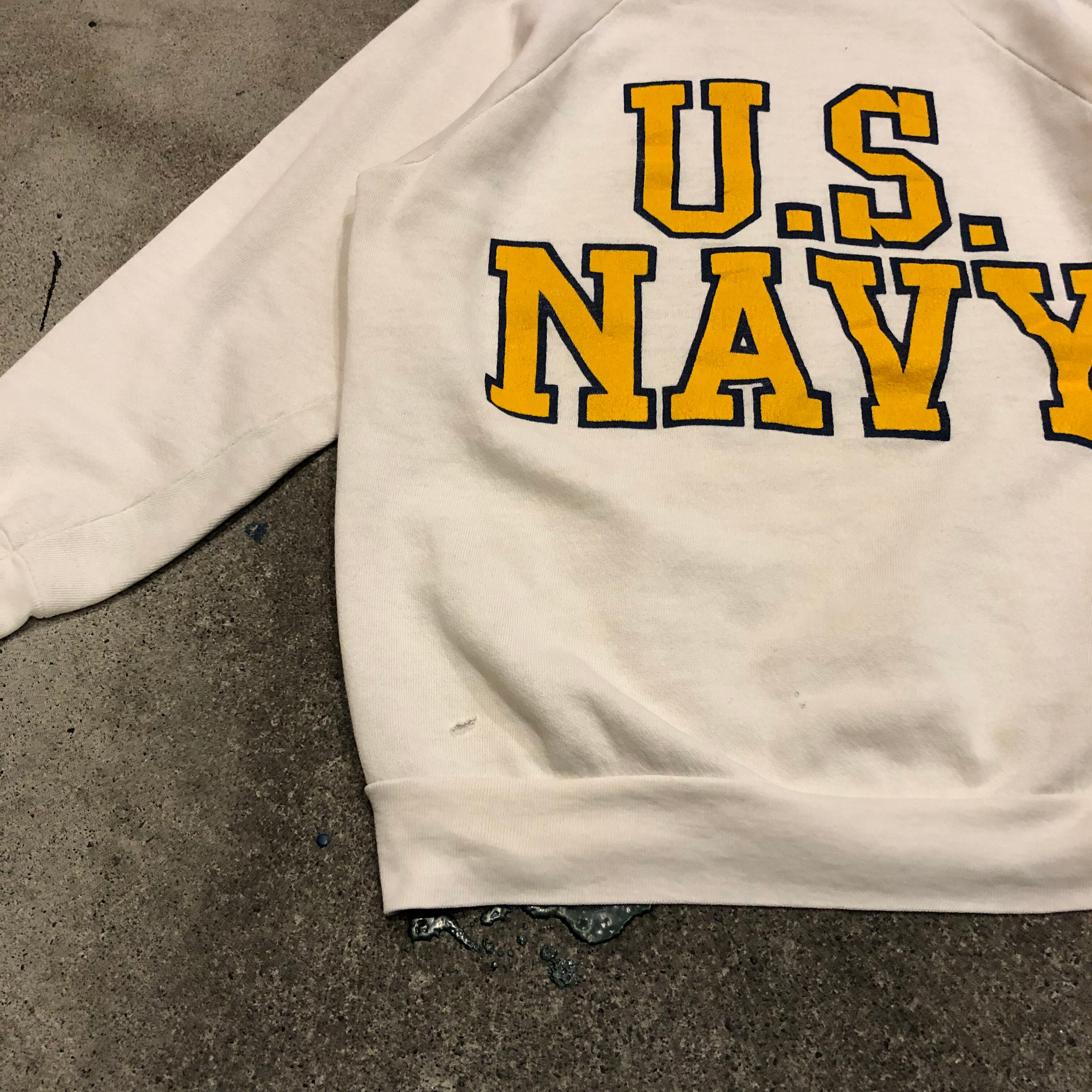 白地にU.S.NAVYのプリントが良い感じです。コンパクトなサイズ感で使いやすいと思います。ラグランスリーブで着心地が良いのもポイントです。デニムと合わせてアメカジなスタイルにも。