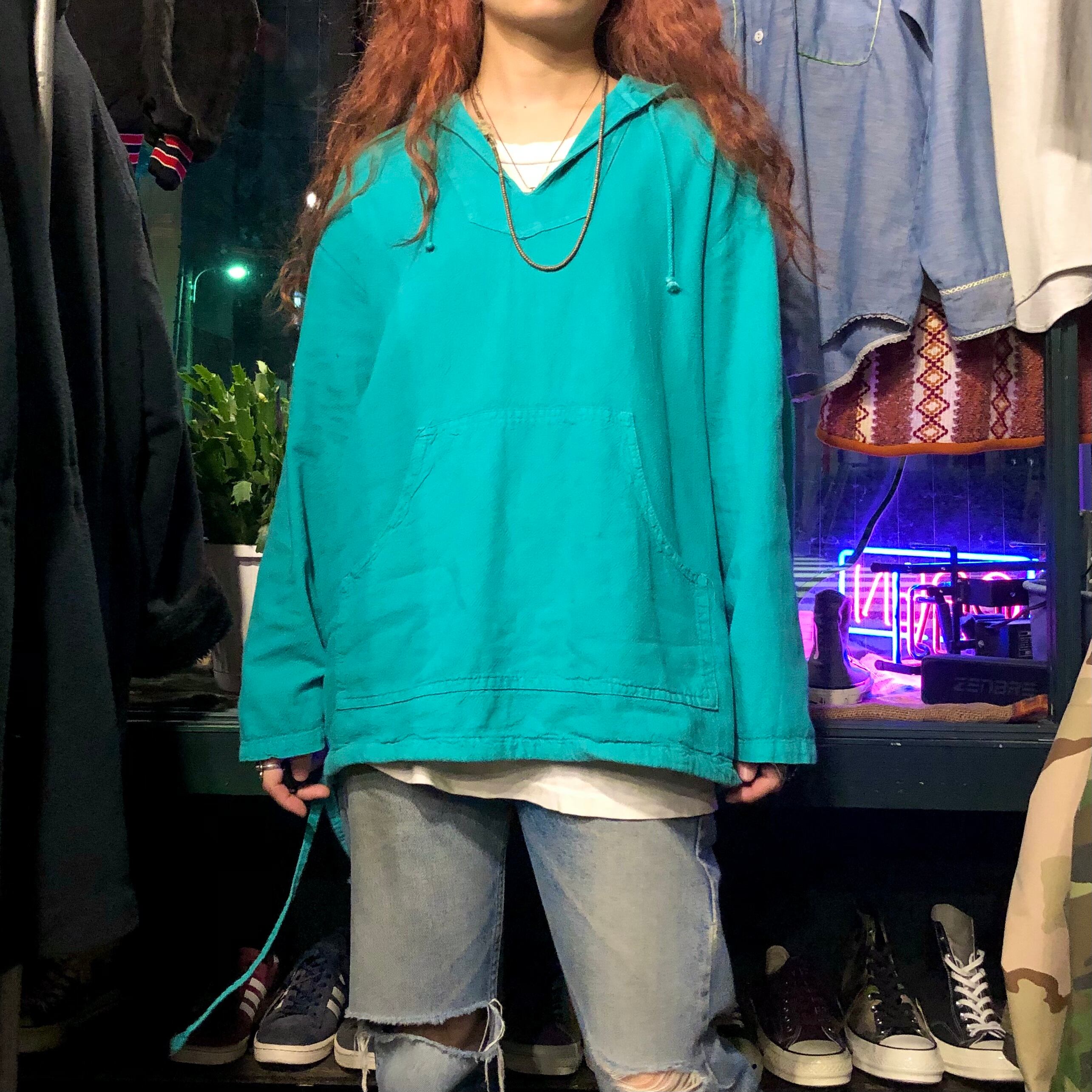 色味がきれいなコットン素材のプルオーバーパーカーです。