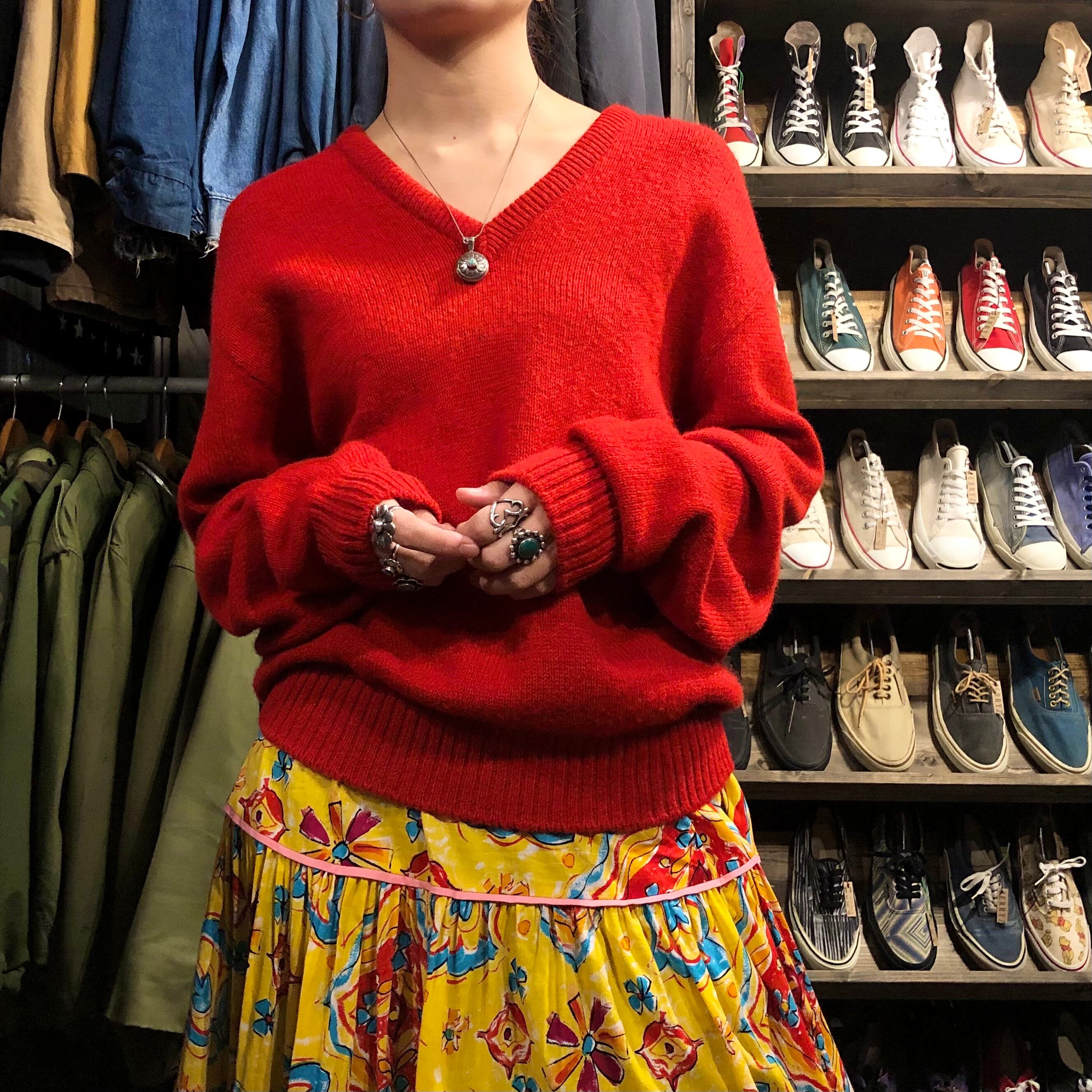 Vネックは中にTシャツを着てもシャツやブラウス、タートルネックなど着てもかわいいですが、個人的にはデコルテを見せて着るのが好きです。