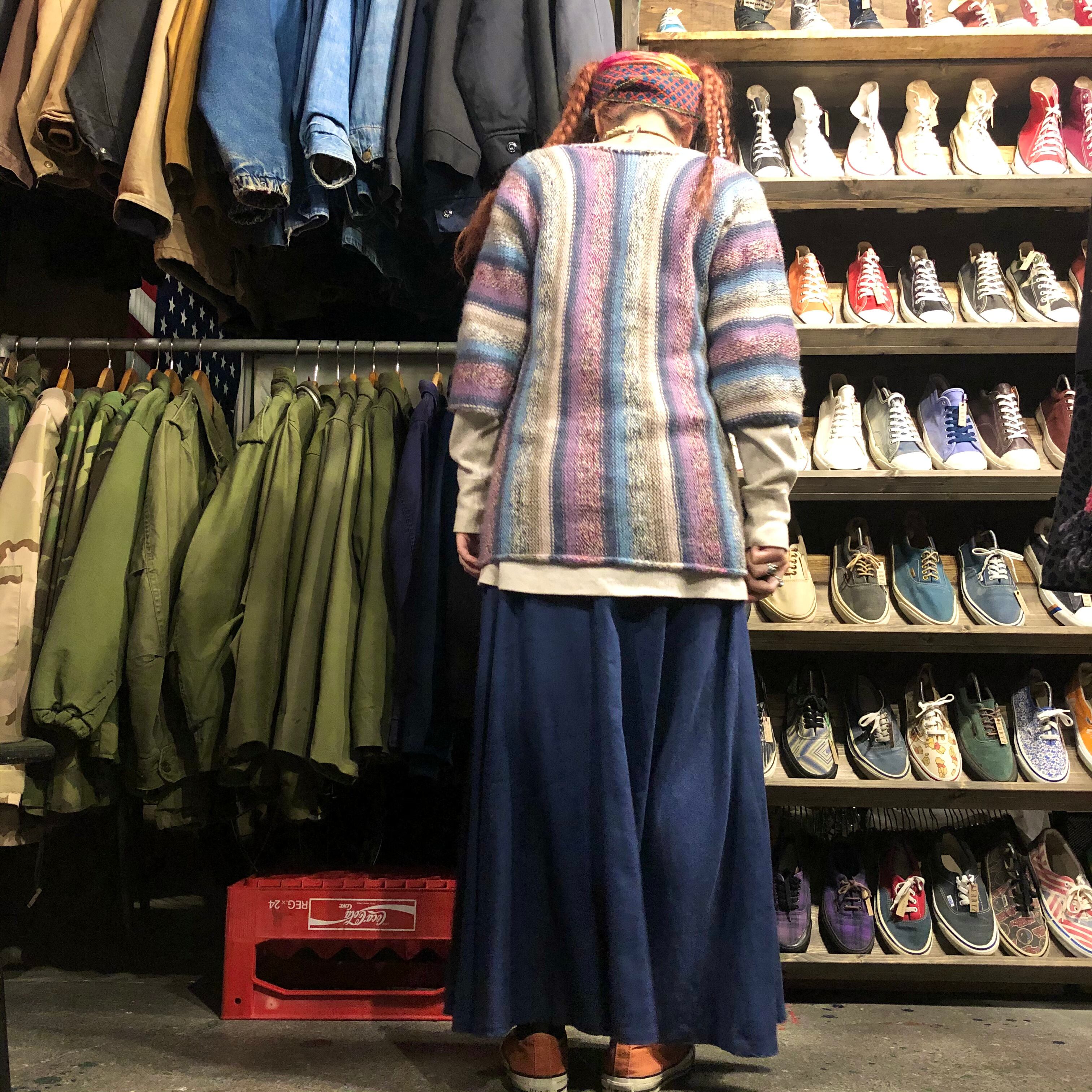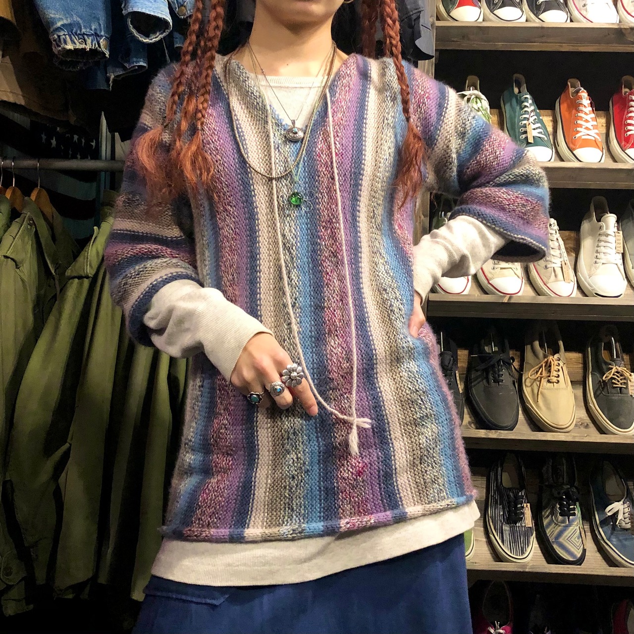 ボヘミアンな雰囲気がかわいいハンドメイドのニットです。