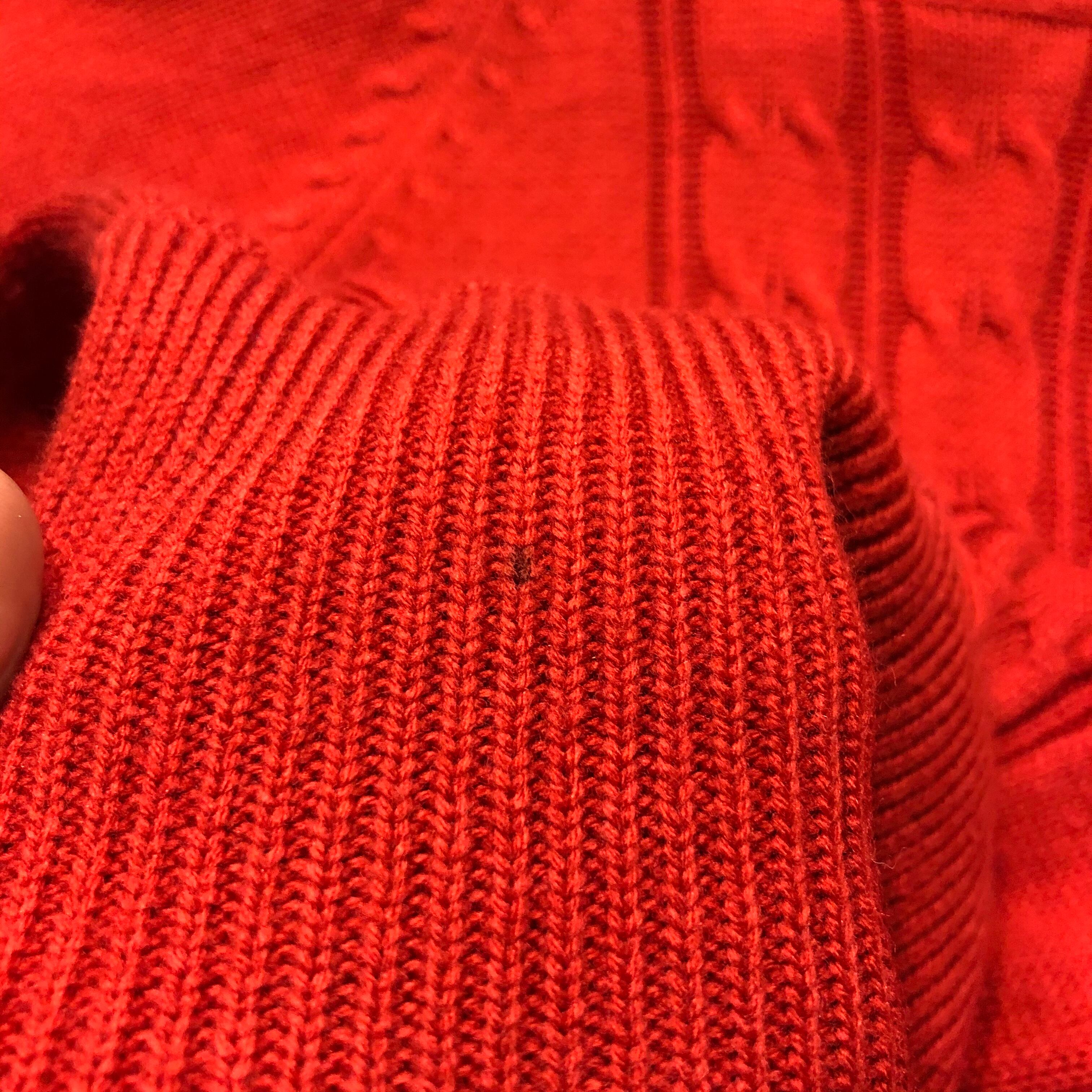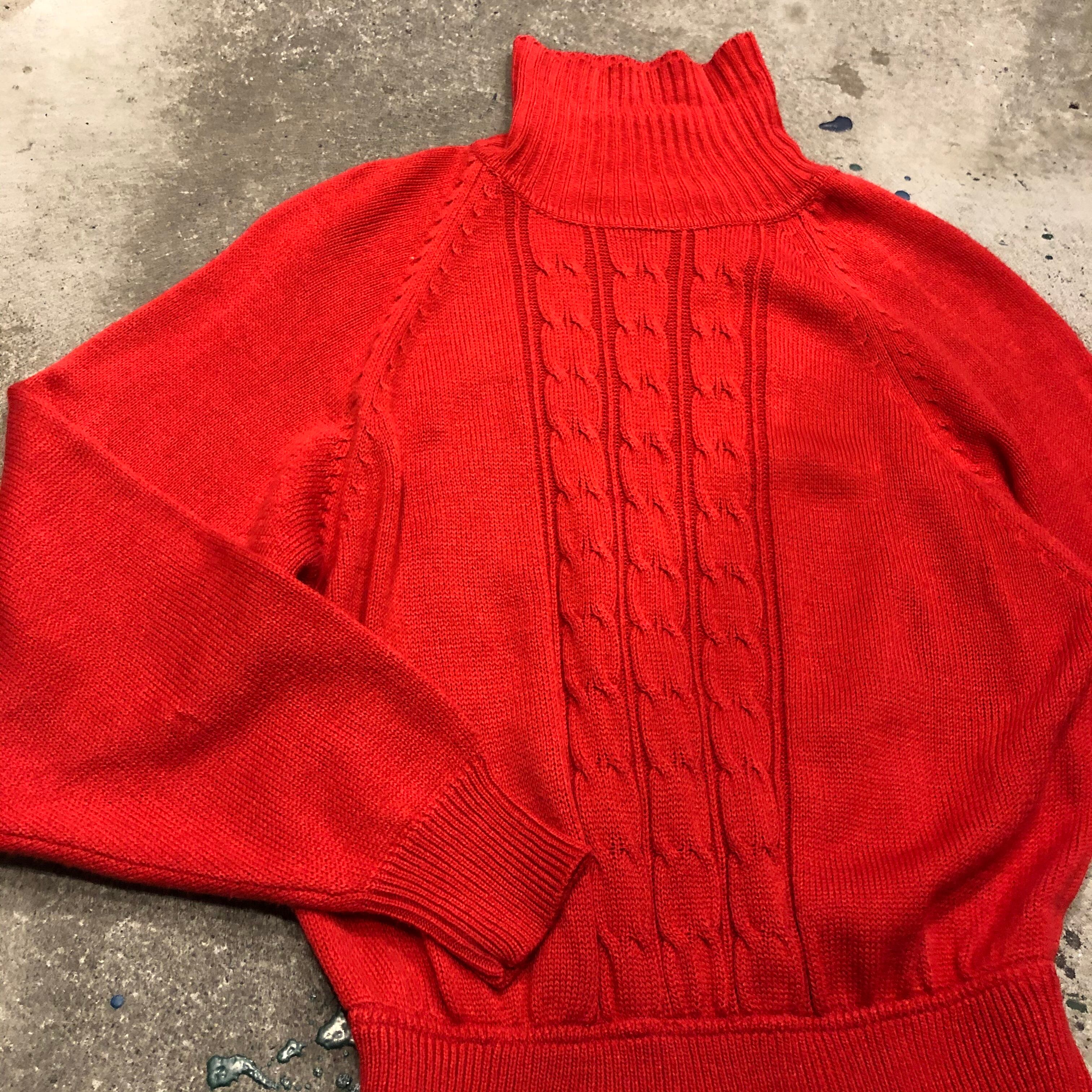 赤よりオレンジ味のある柔らかい色がかわいいです。タートルネックでロング丈なので薄手ですが暖かく、とても楽ちんです。