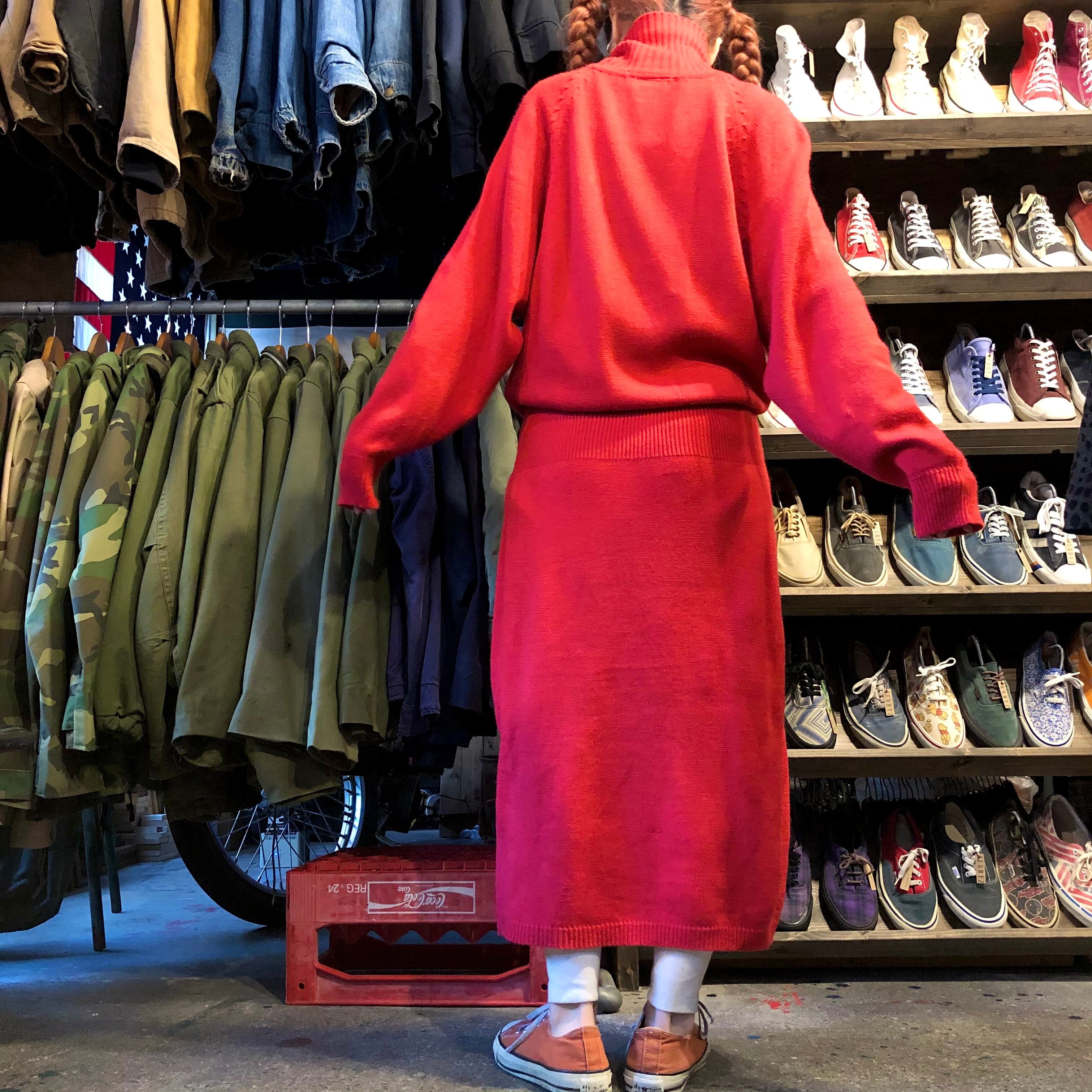 朱色のニットワンピースです。
