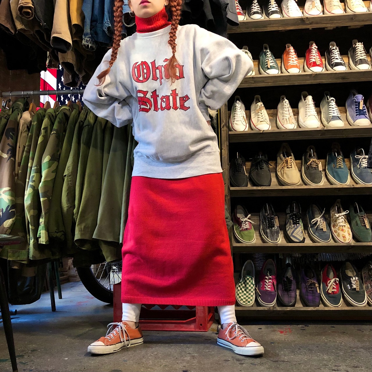 ウエストはリブになっているのでぐっと上にあげたり絶妙に丈を変えらるので重ね着の際バランスが取りやすいです。