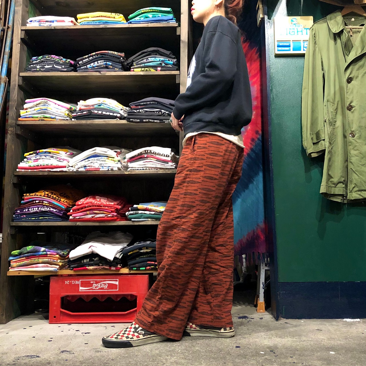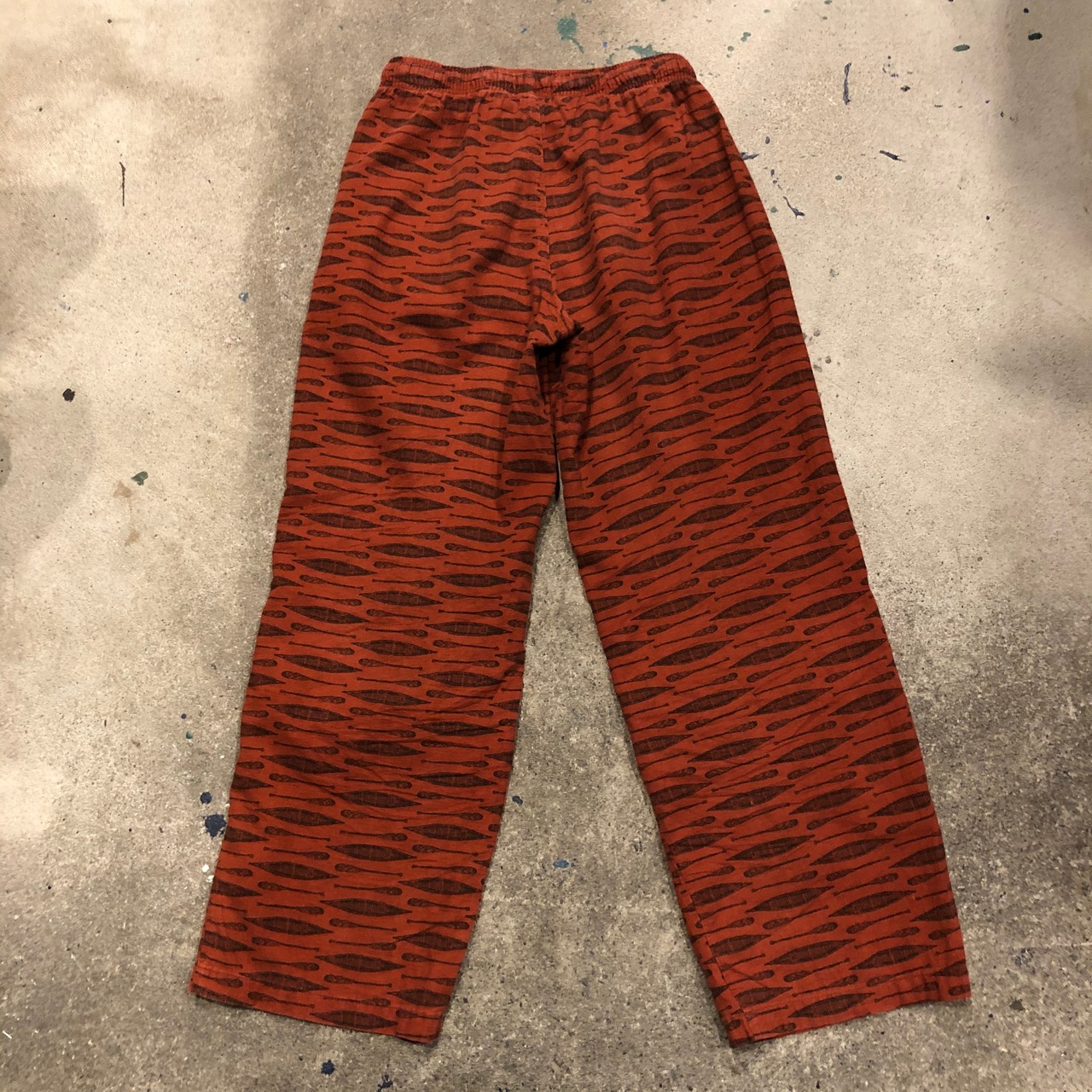 カヌーとオール柄が不思議なコットン素材のイージーパンツです。