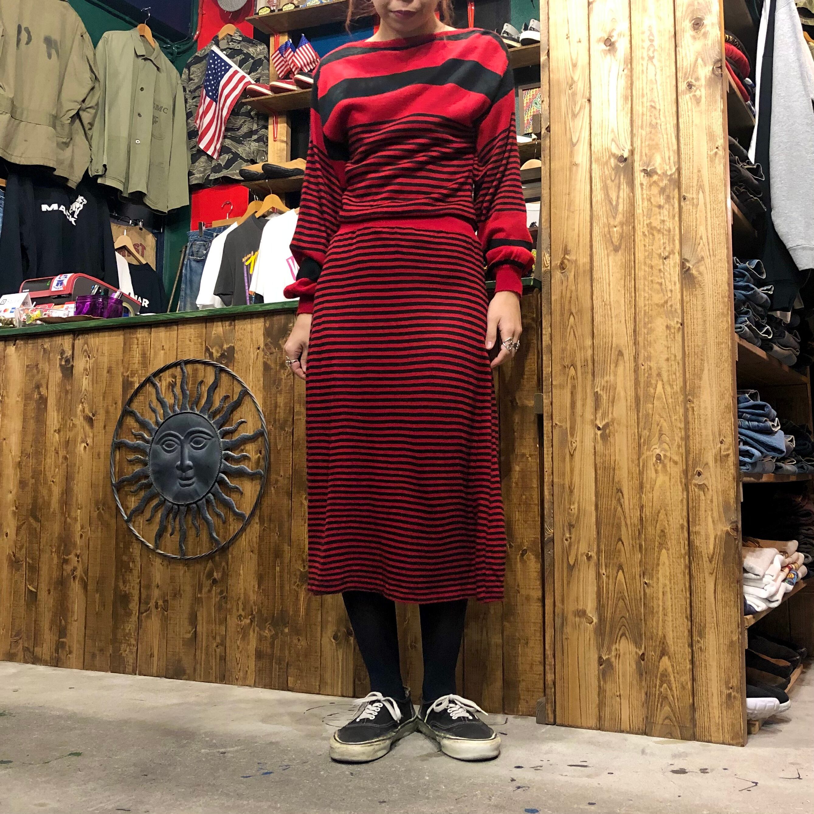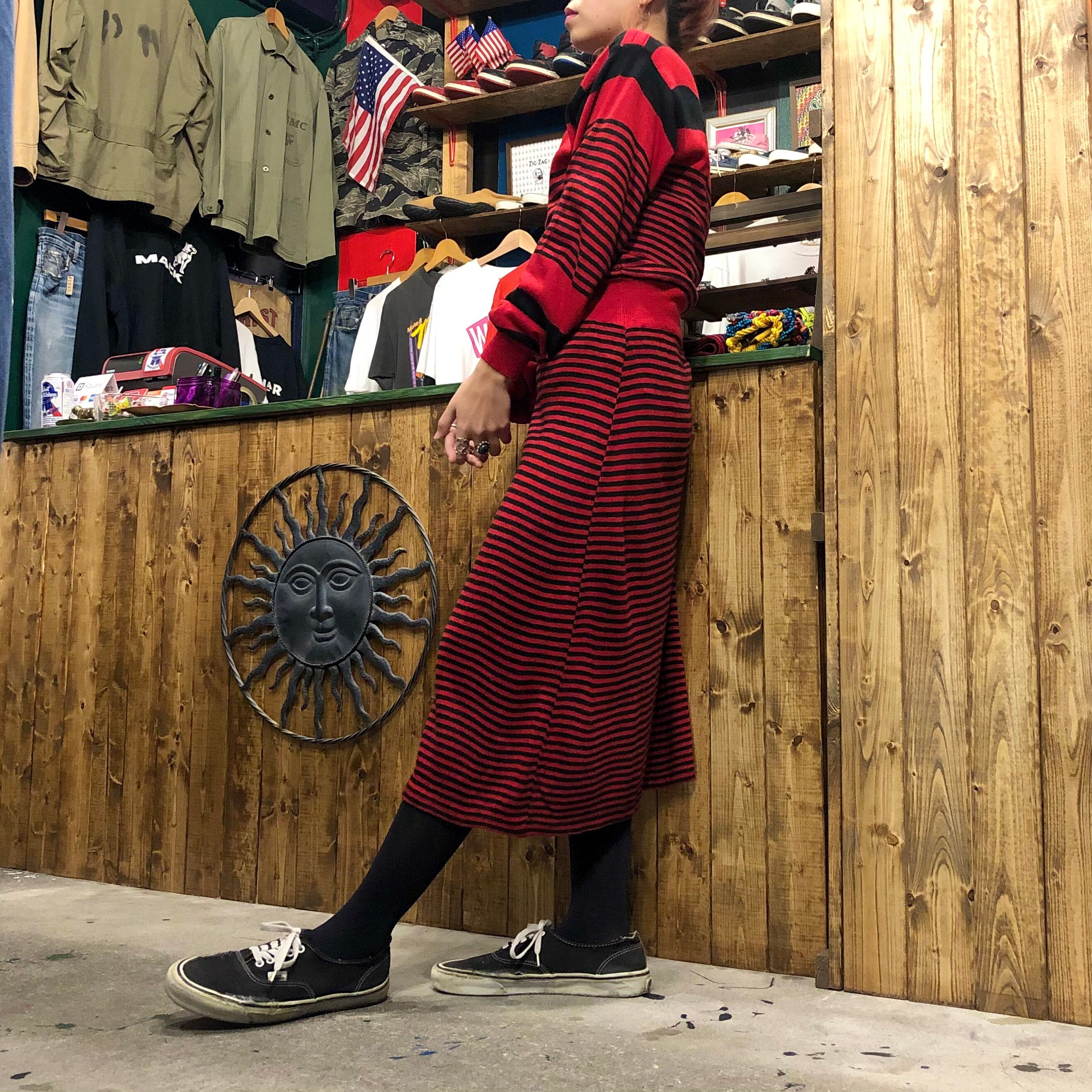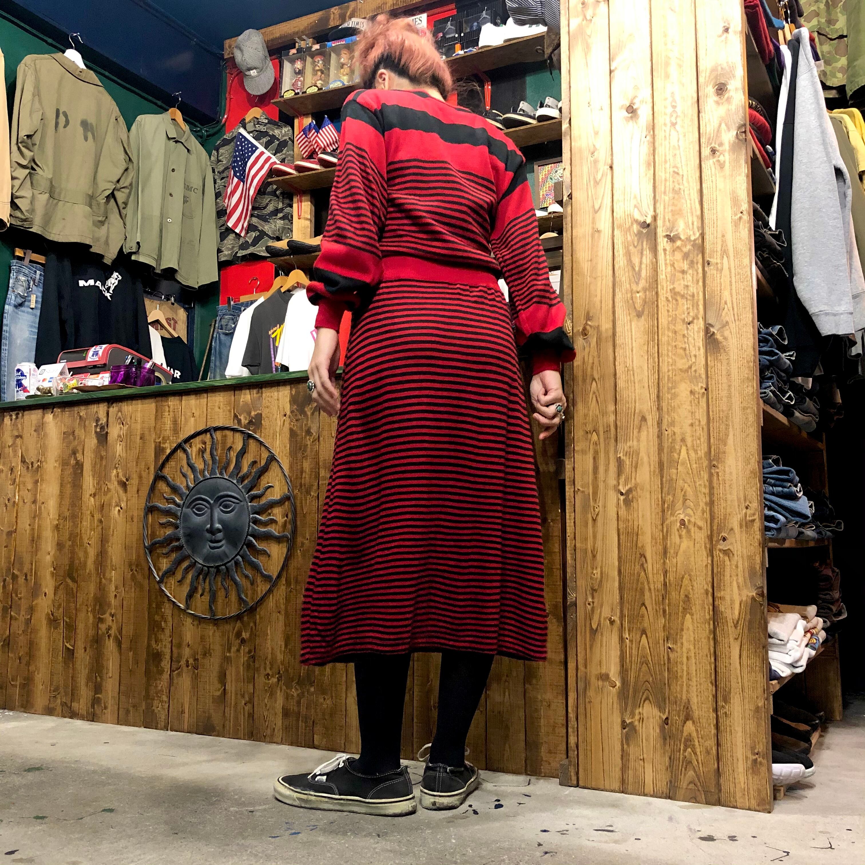 赤×黒のボーダーニットワンピースです。