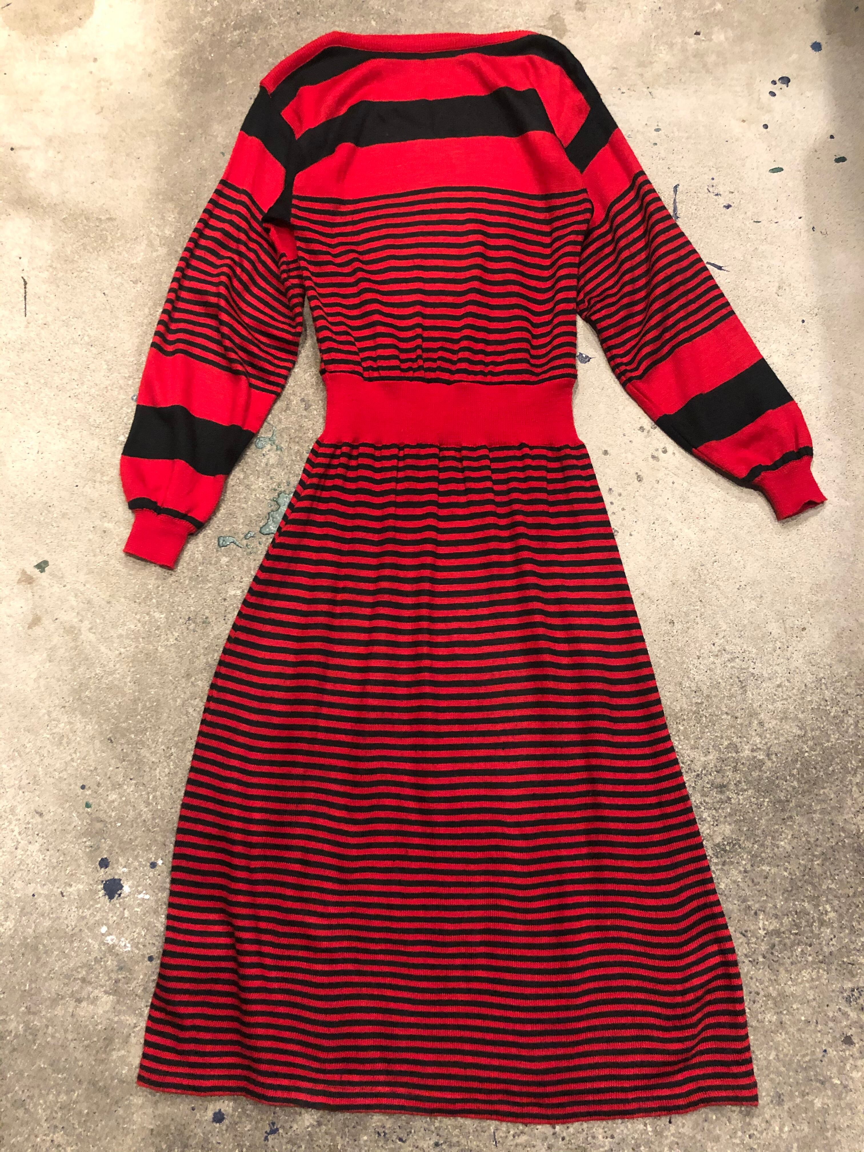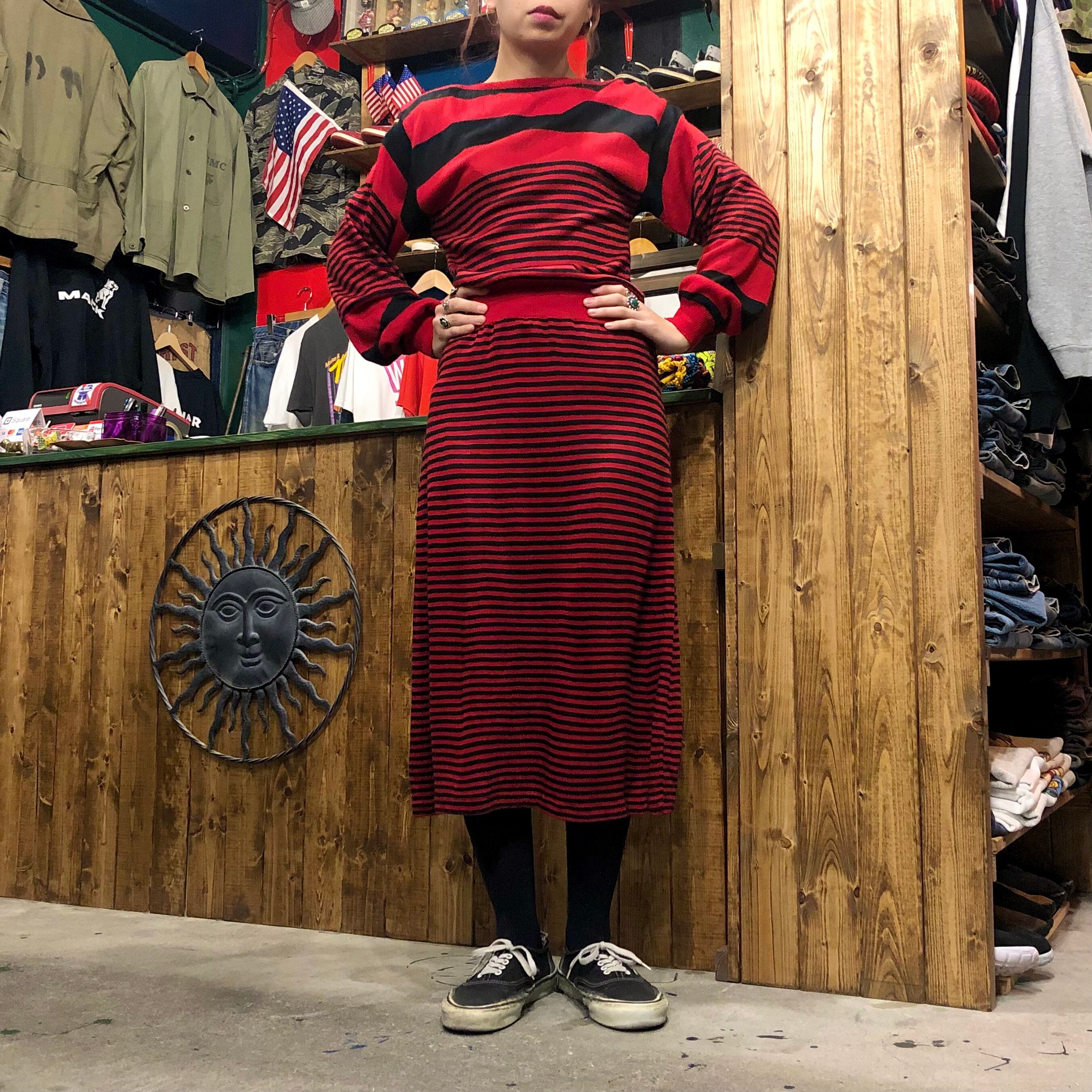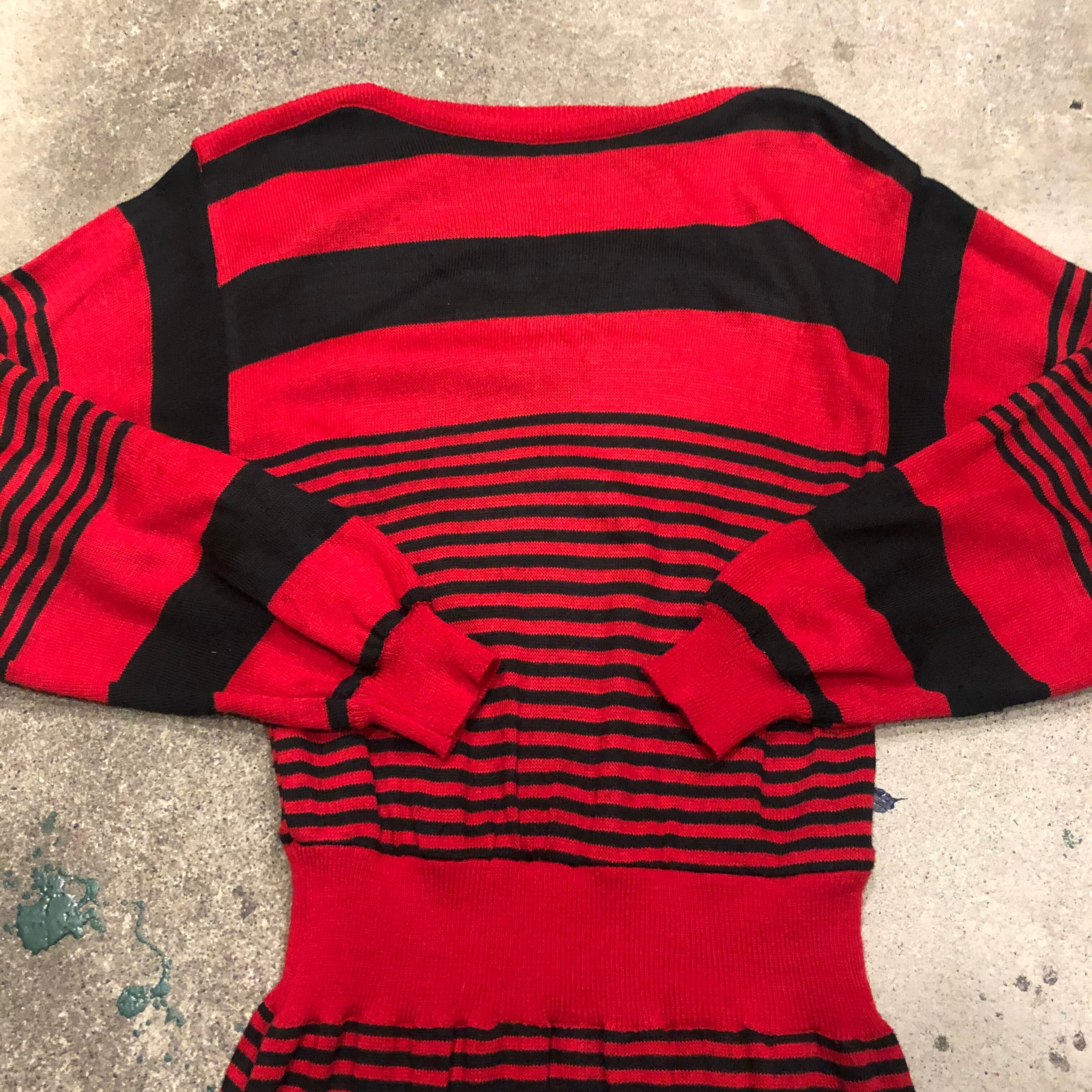 赤×黒のボーダーニットワンピースです。