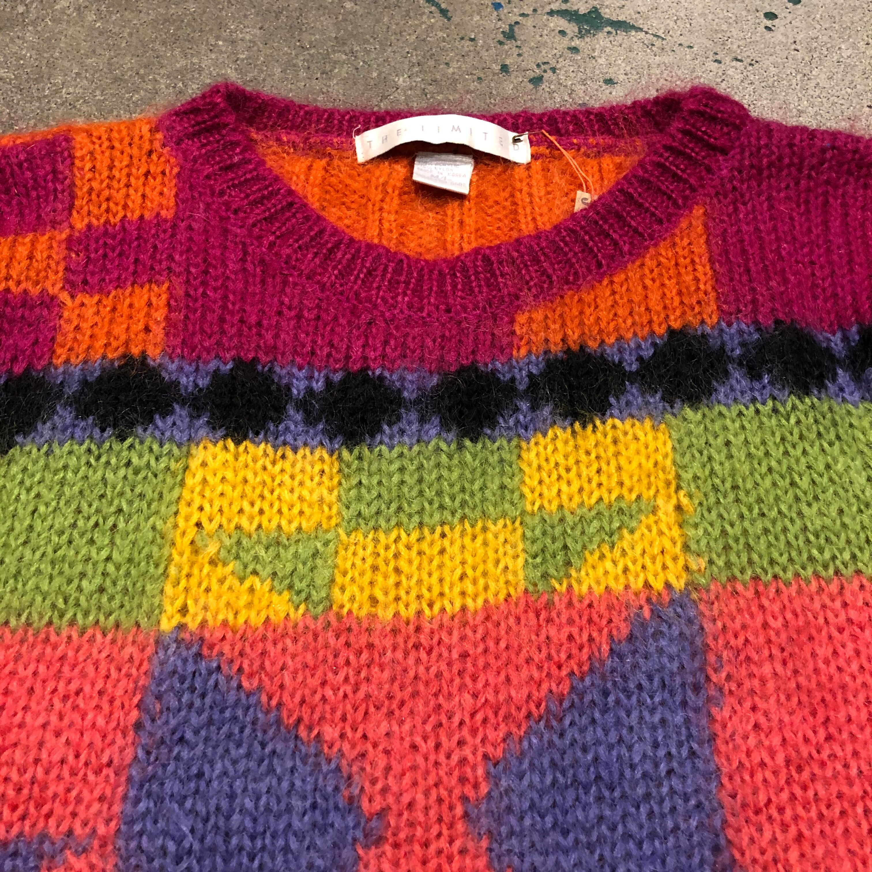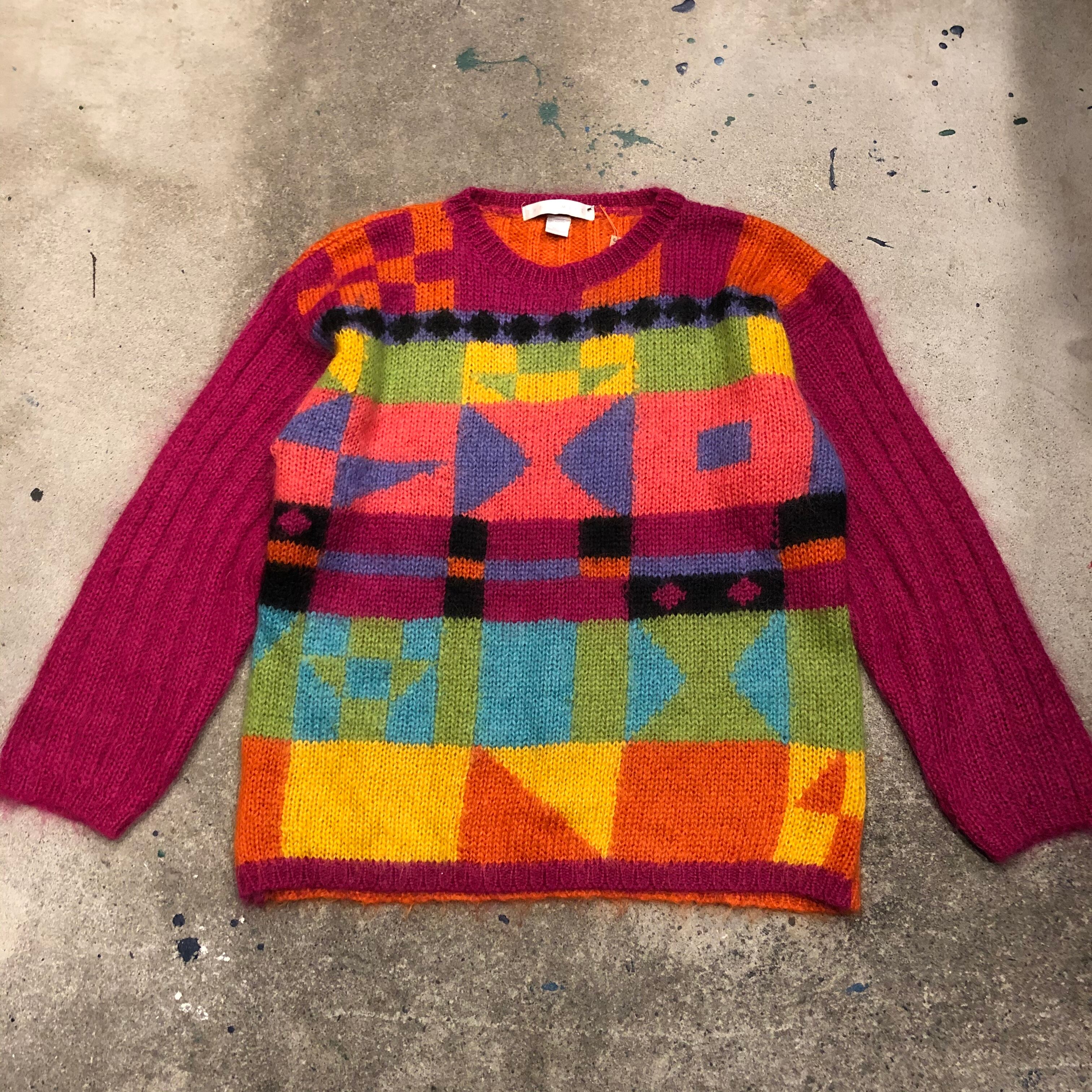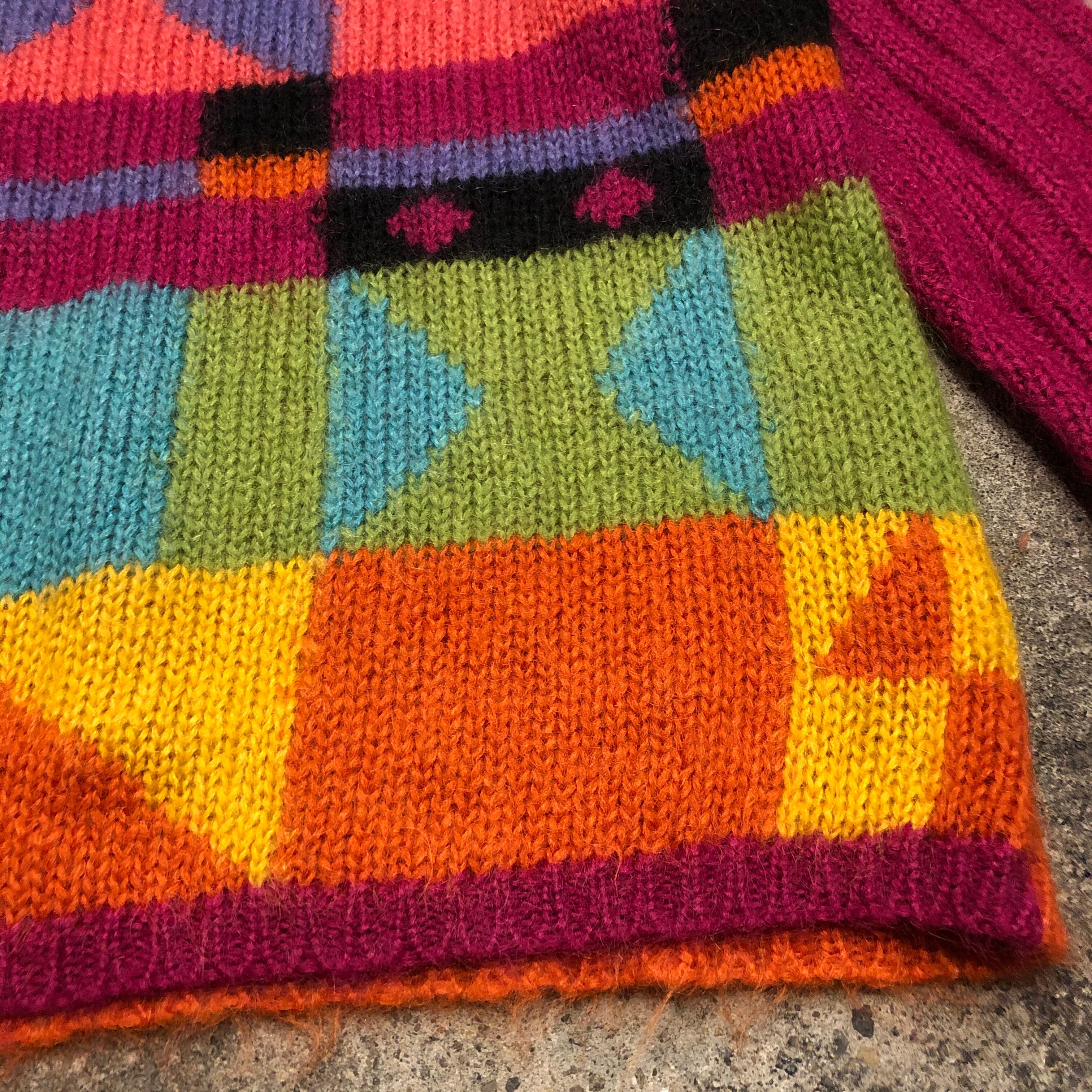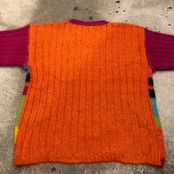 ピンクとオレンジがベースのカラフルなモヘアニットです。