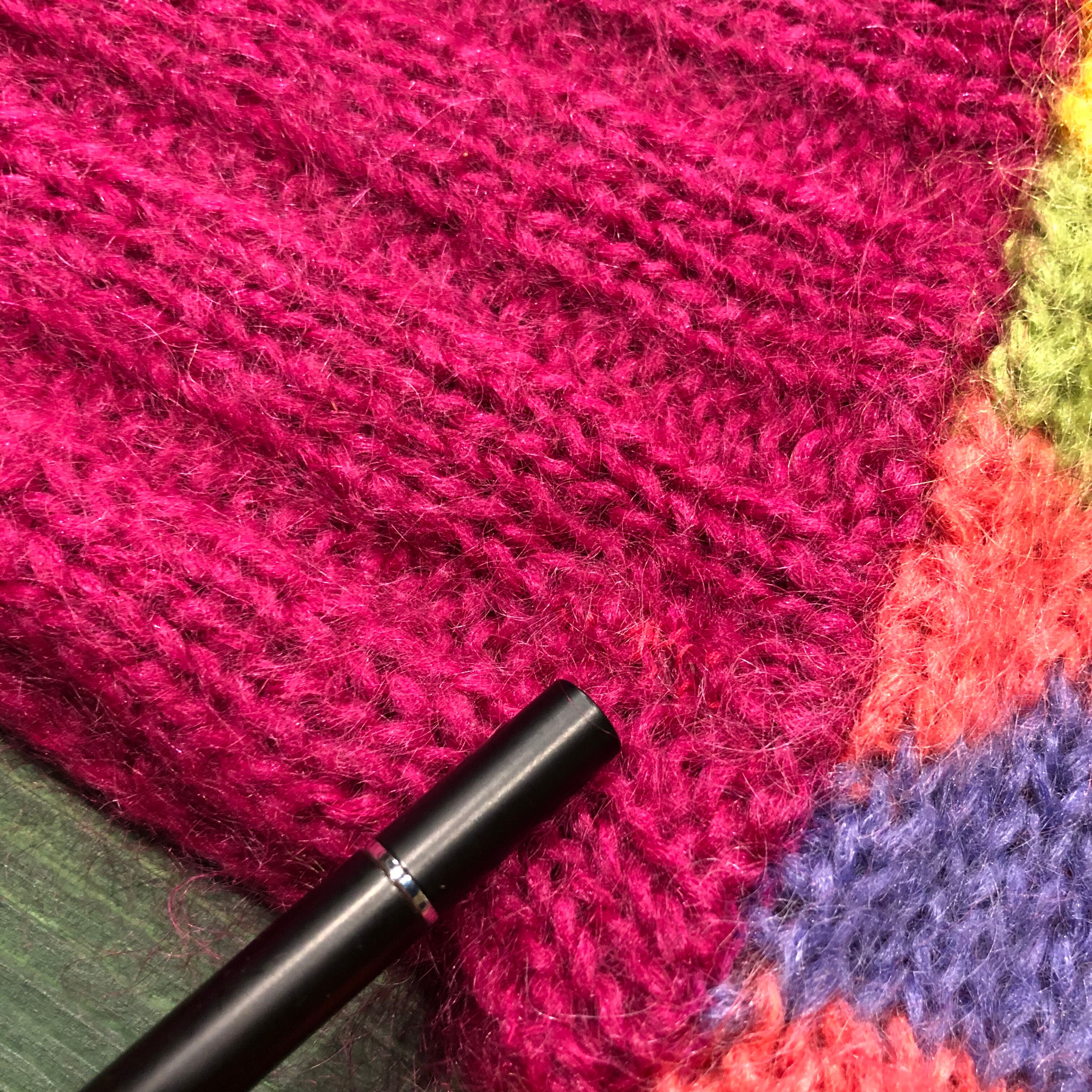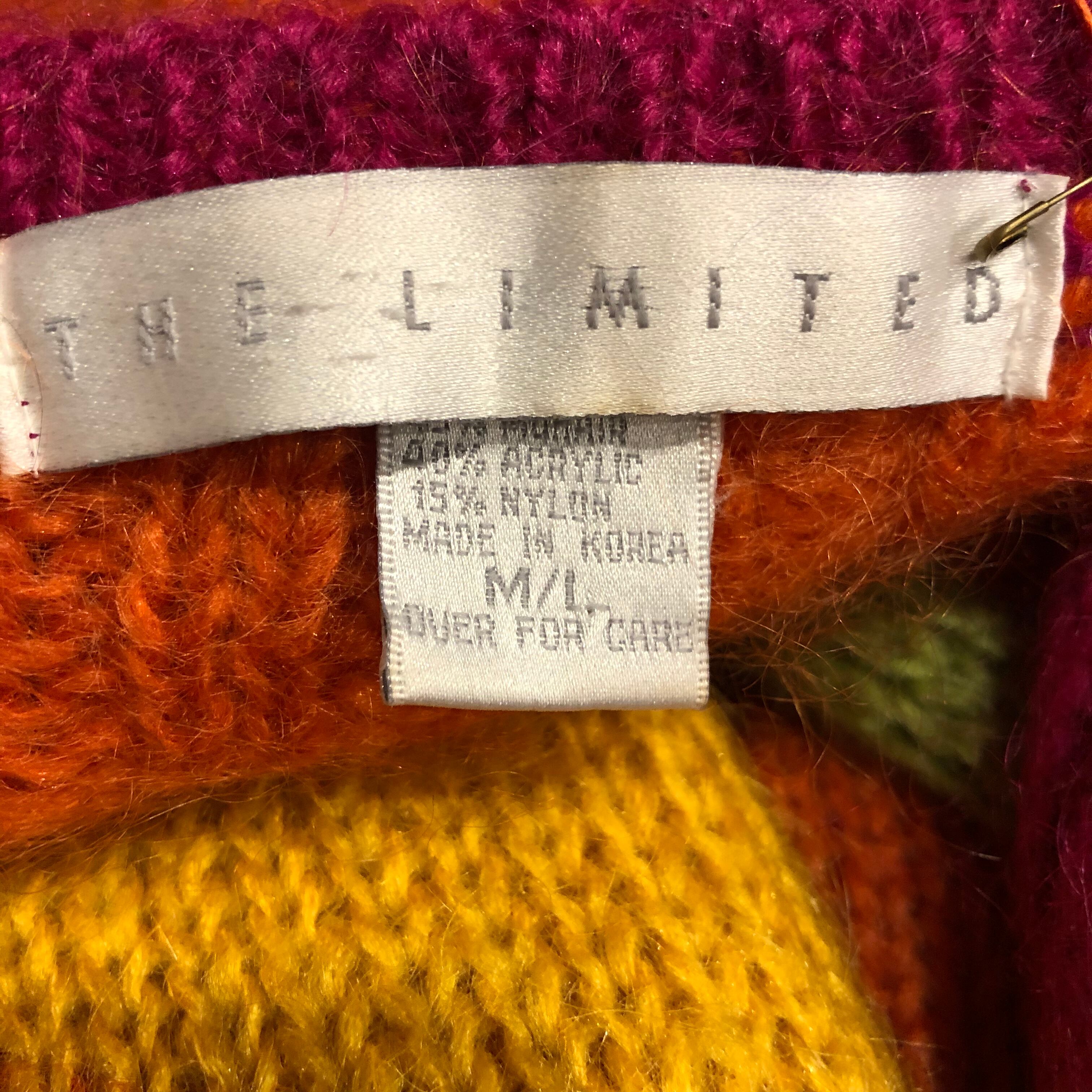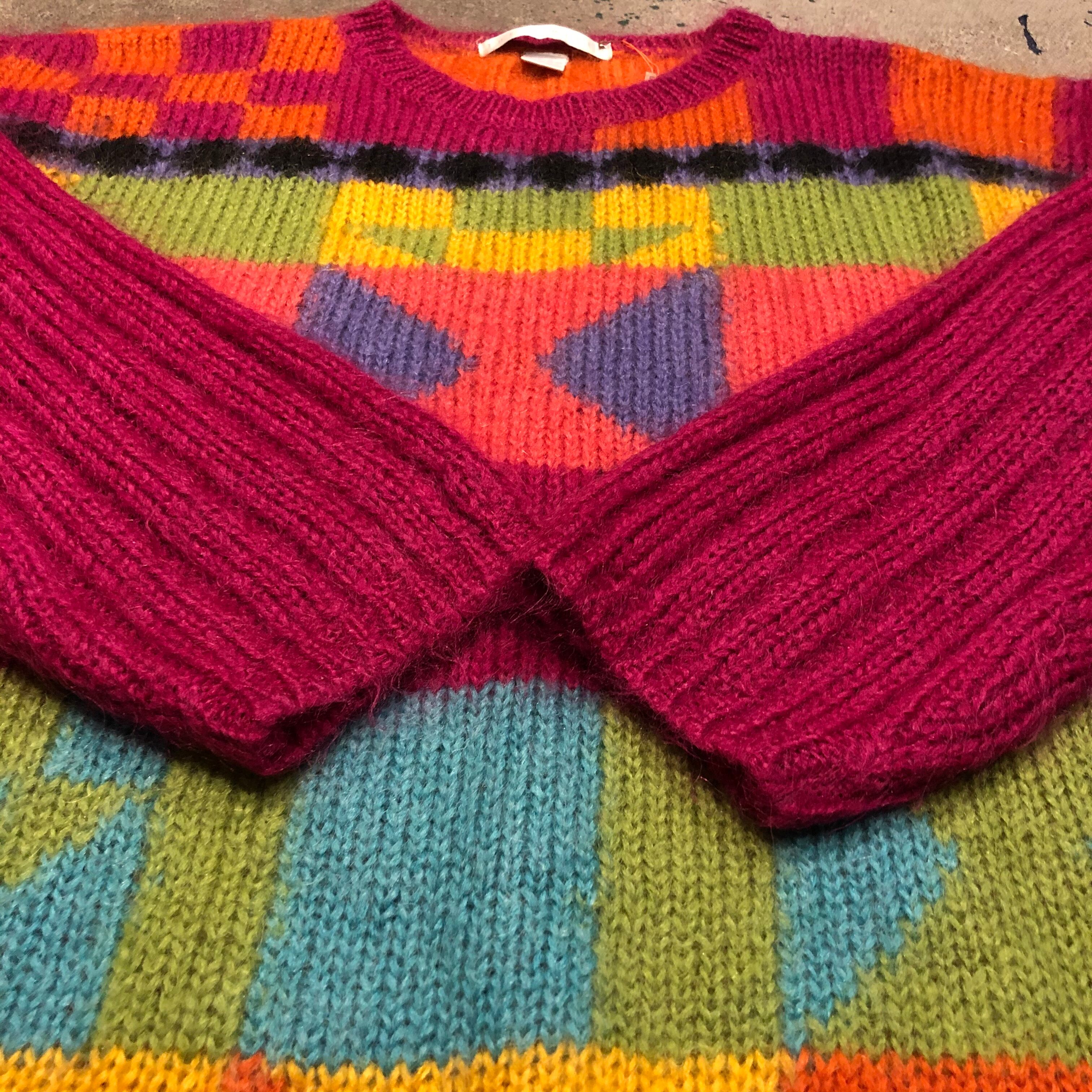 ピンクとオレンジがベースのカラフルなモヘアニットです。