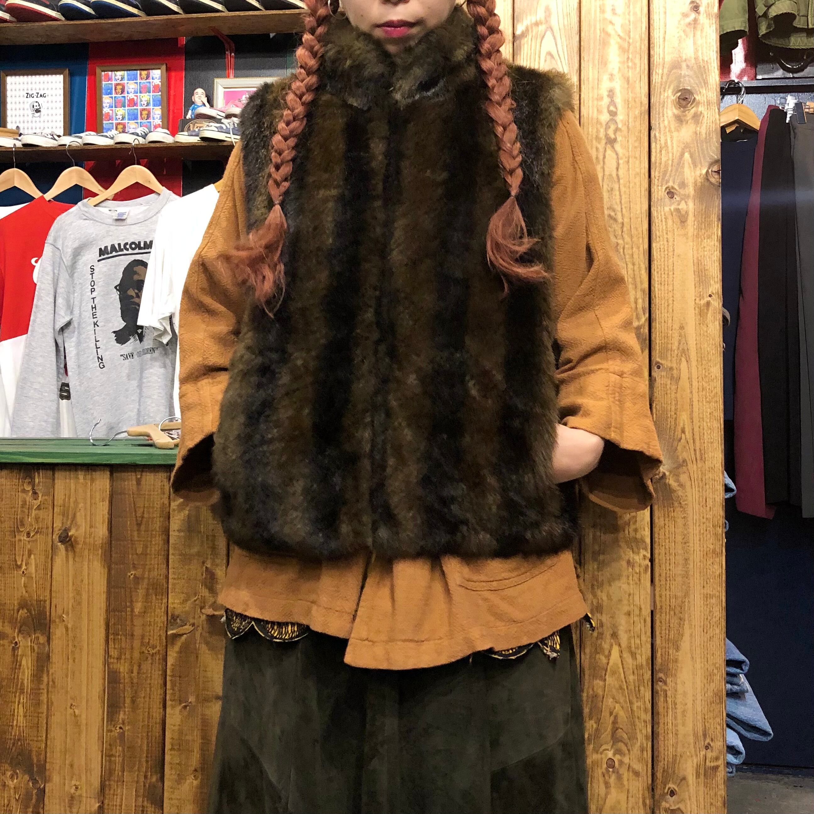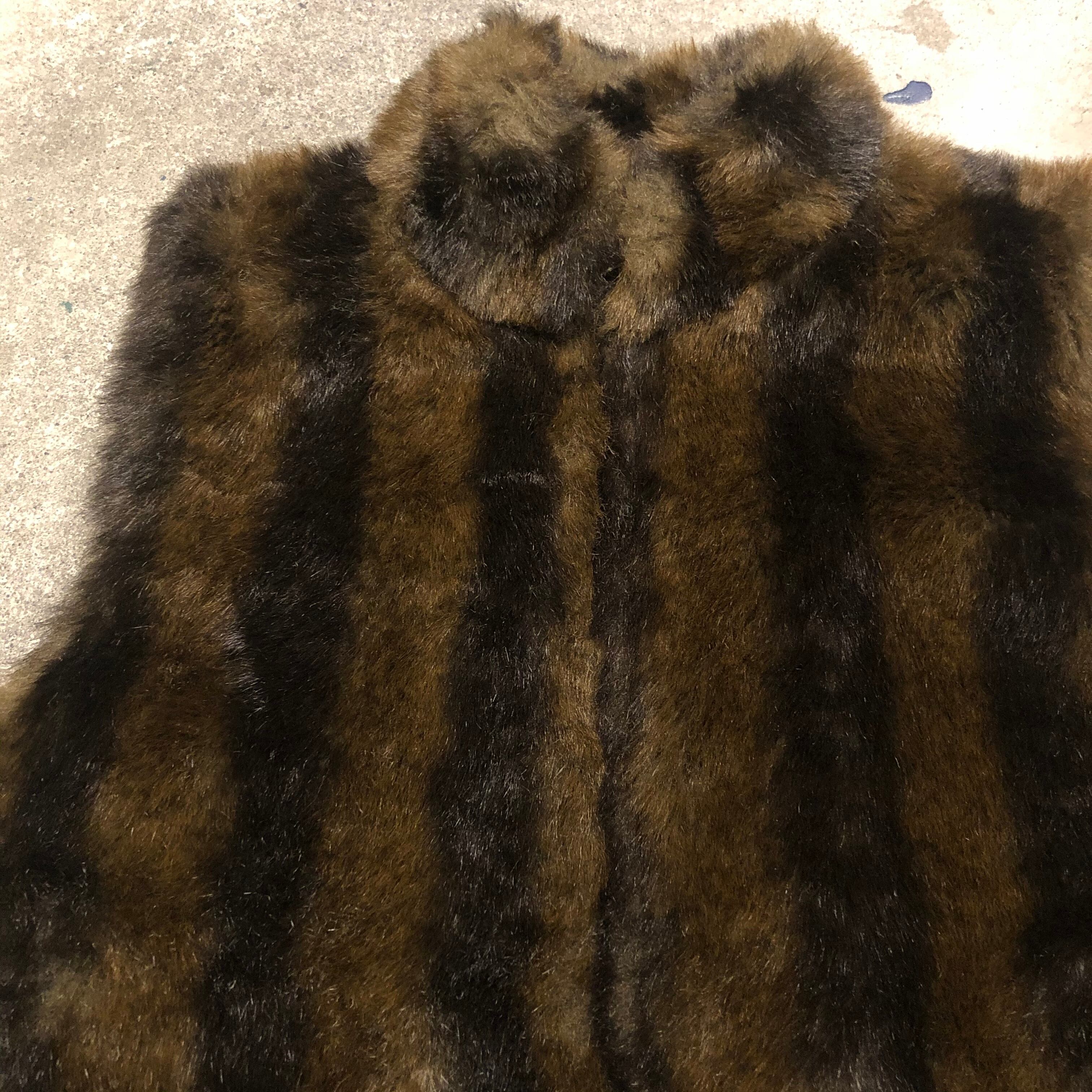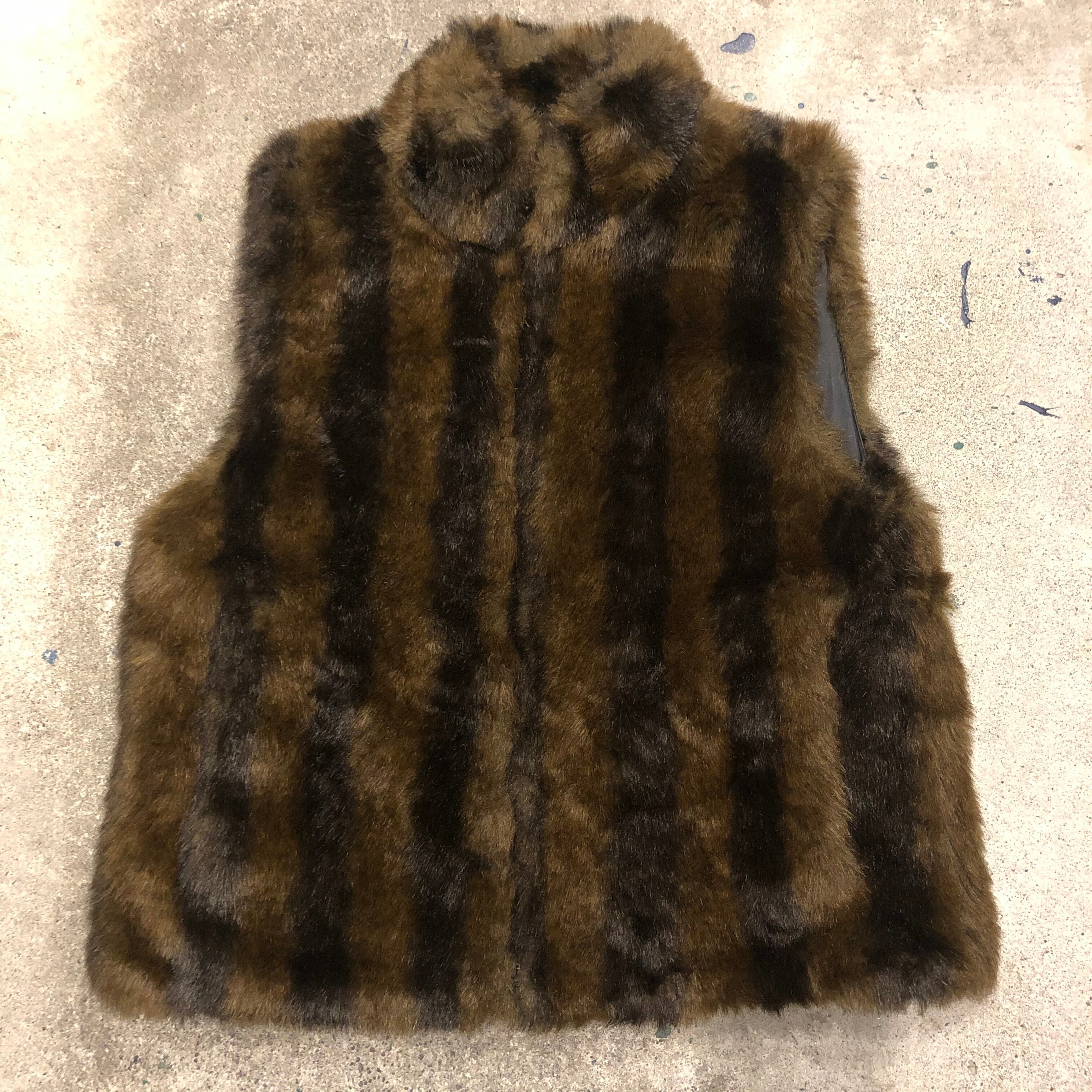 茶色と黒のうっすらストライプのフェイクファーベストです。