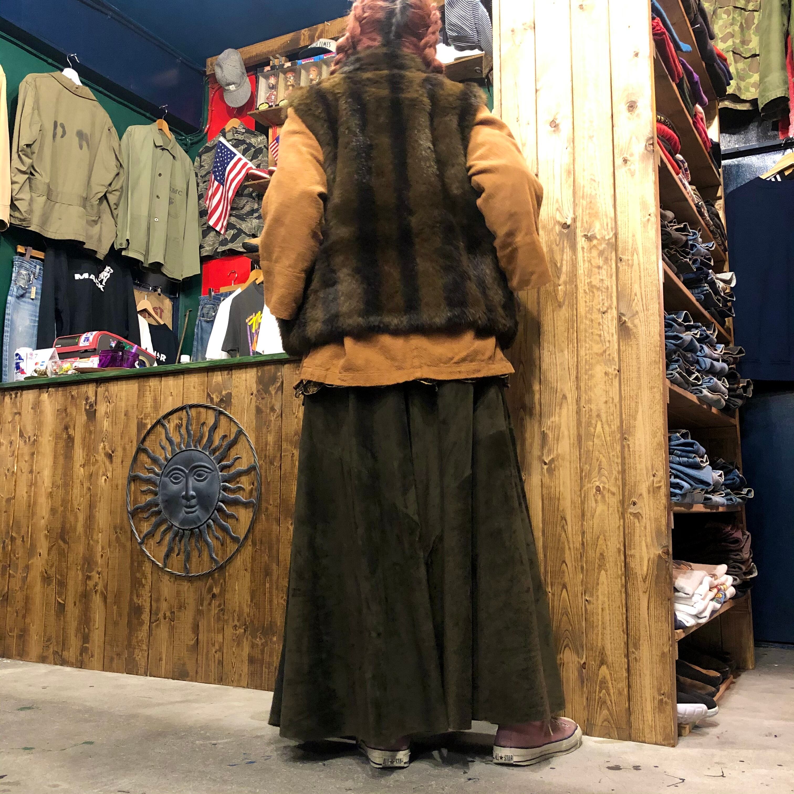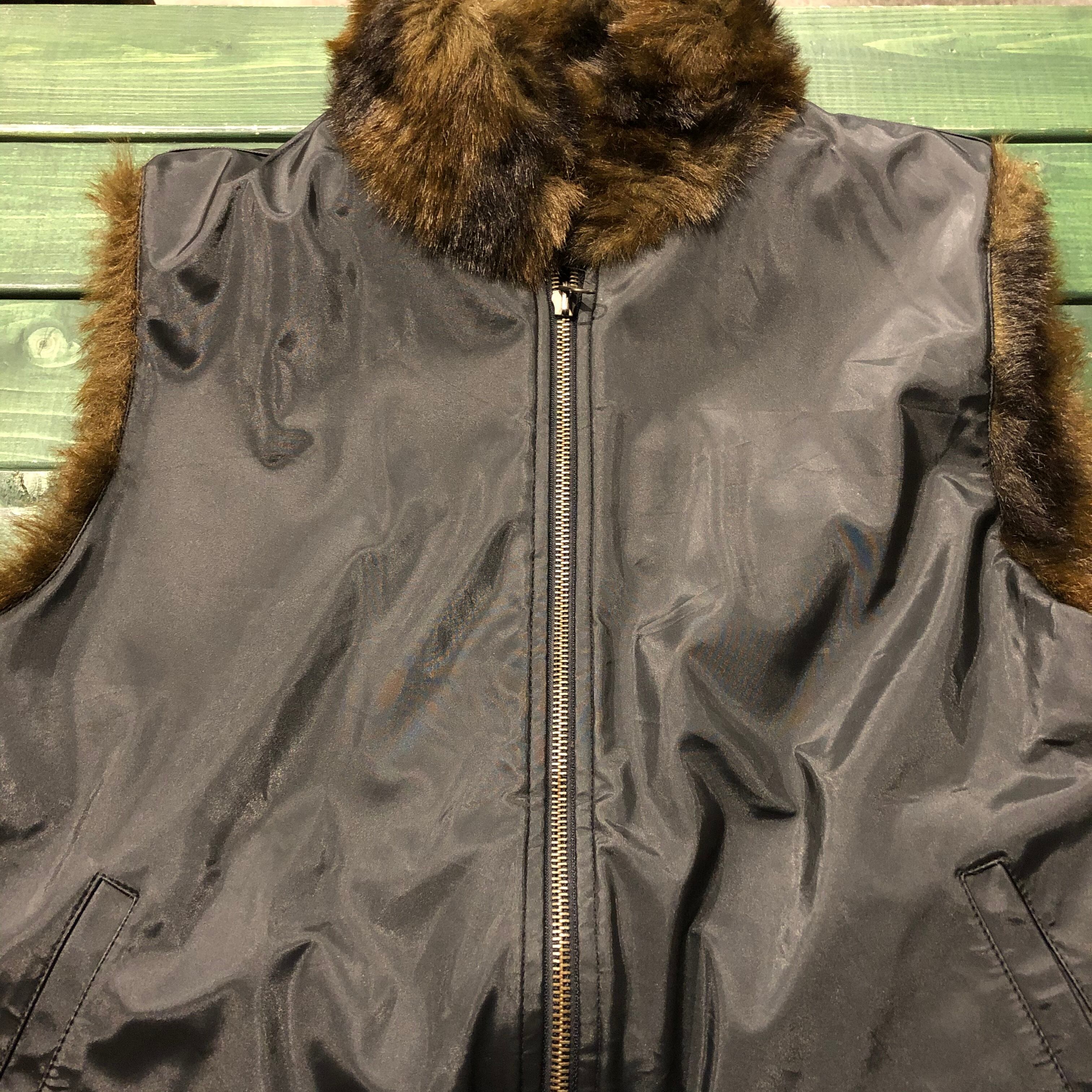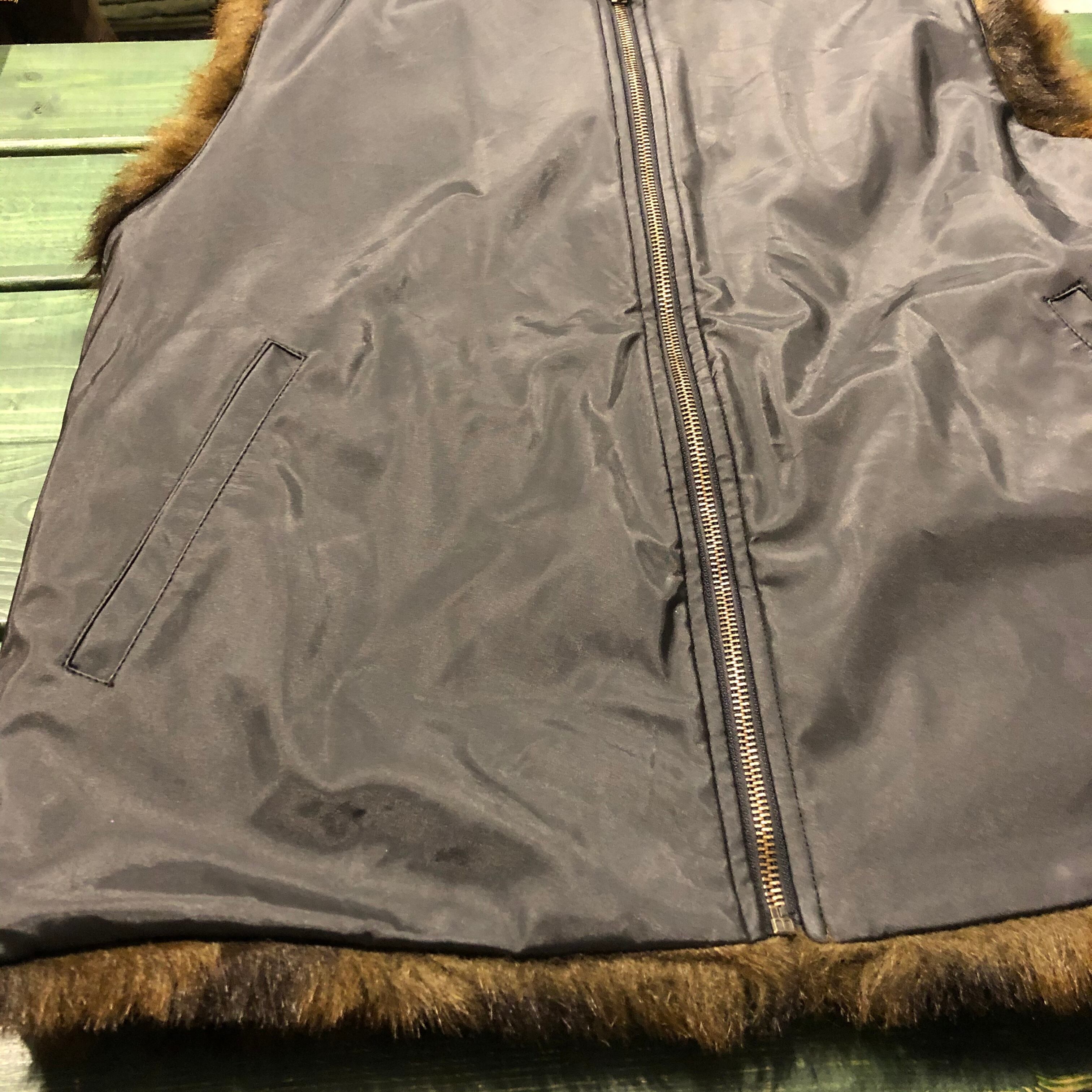 茶色と黒のうっすらストライプのフェイクファーベストです。