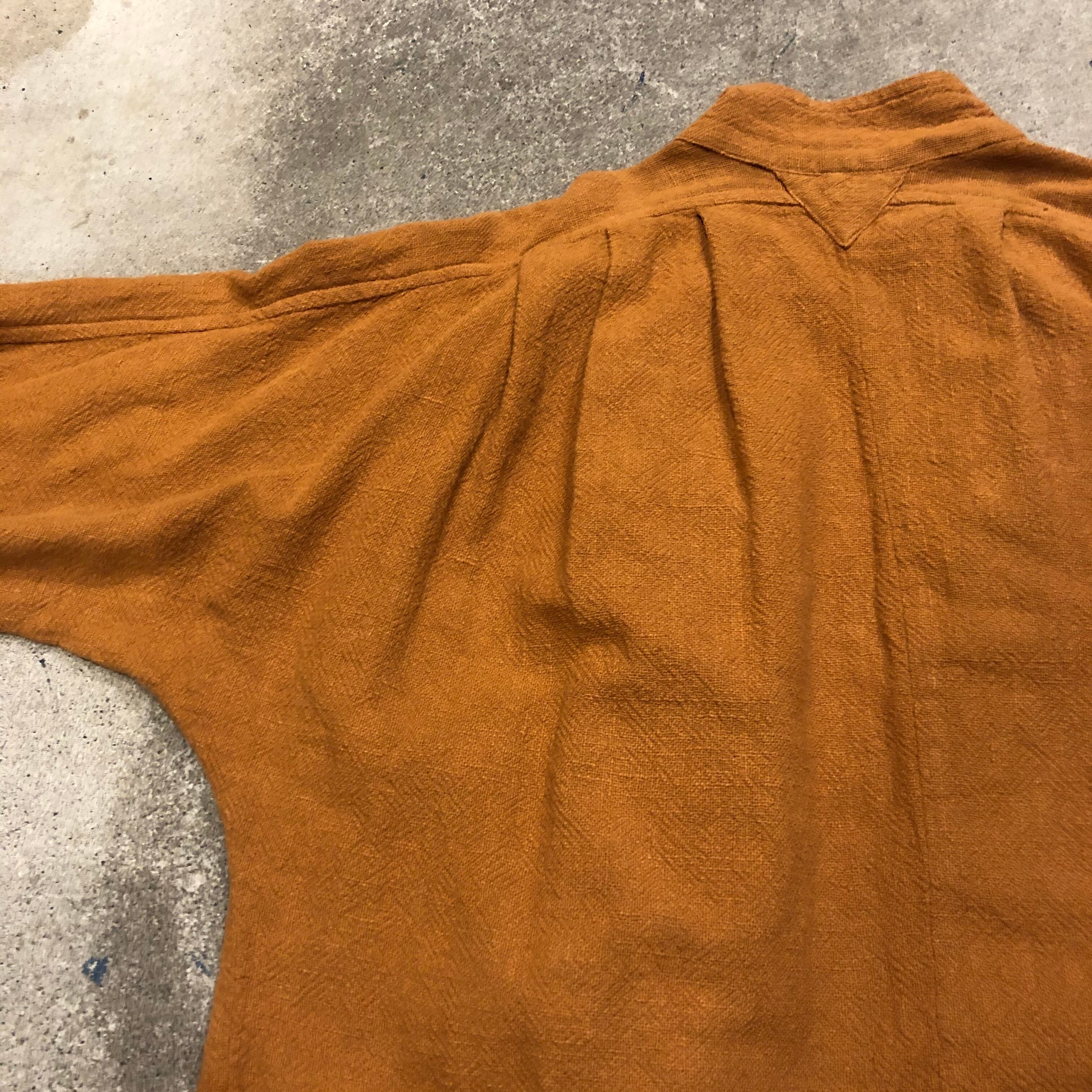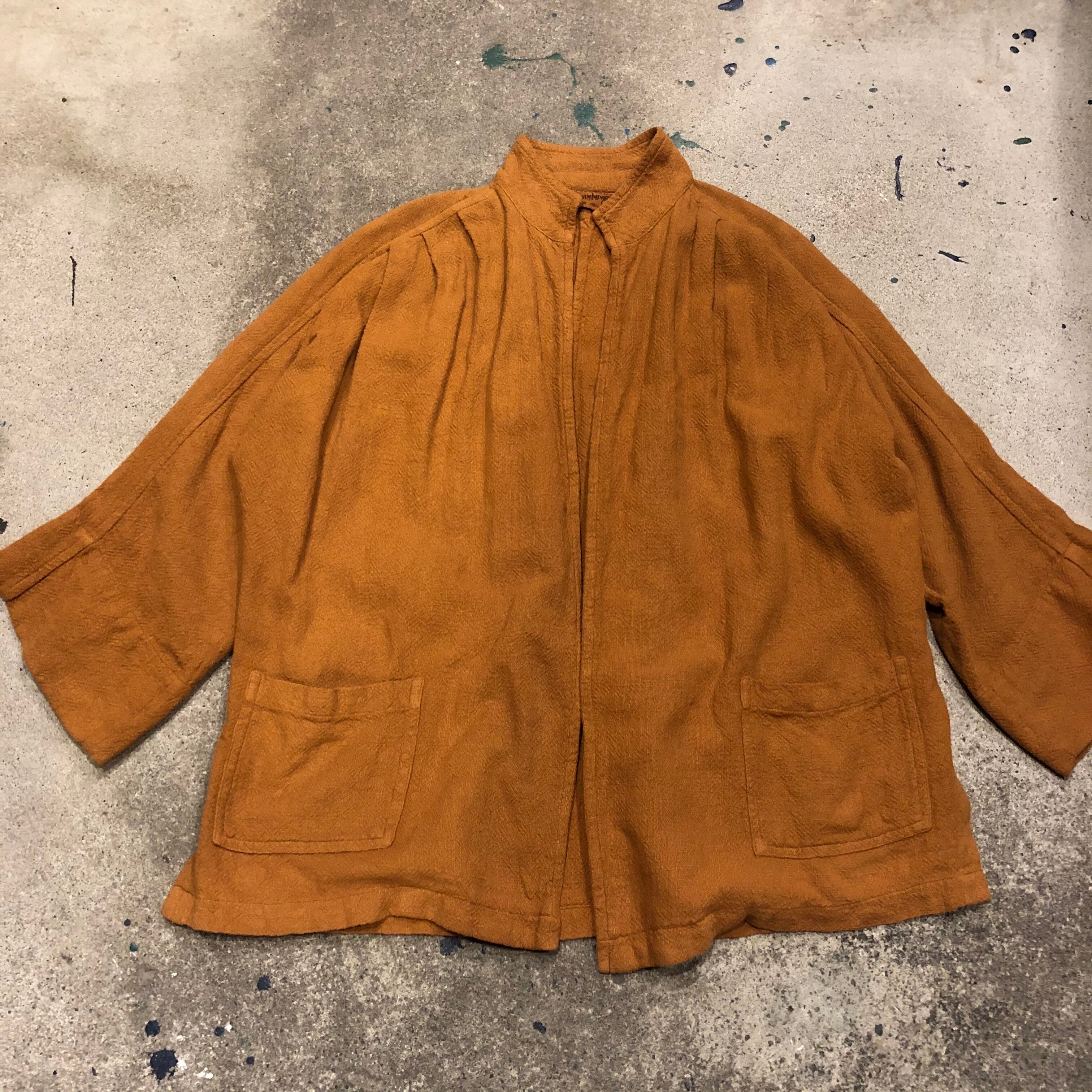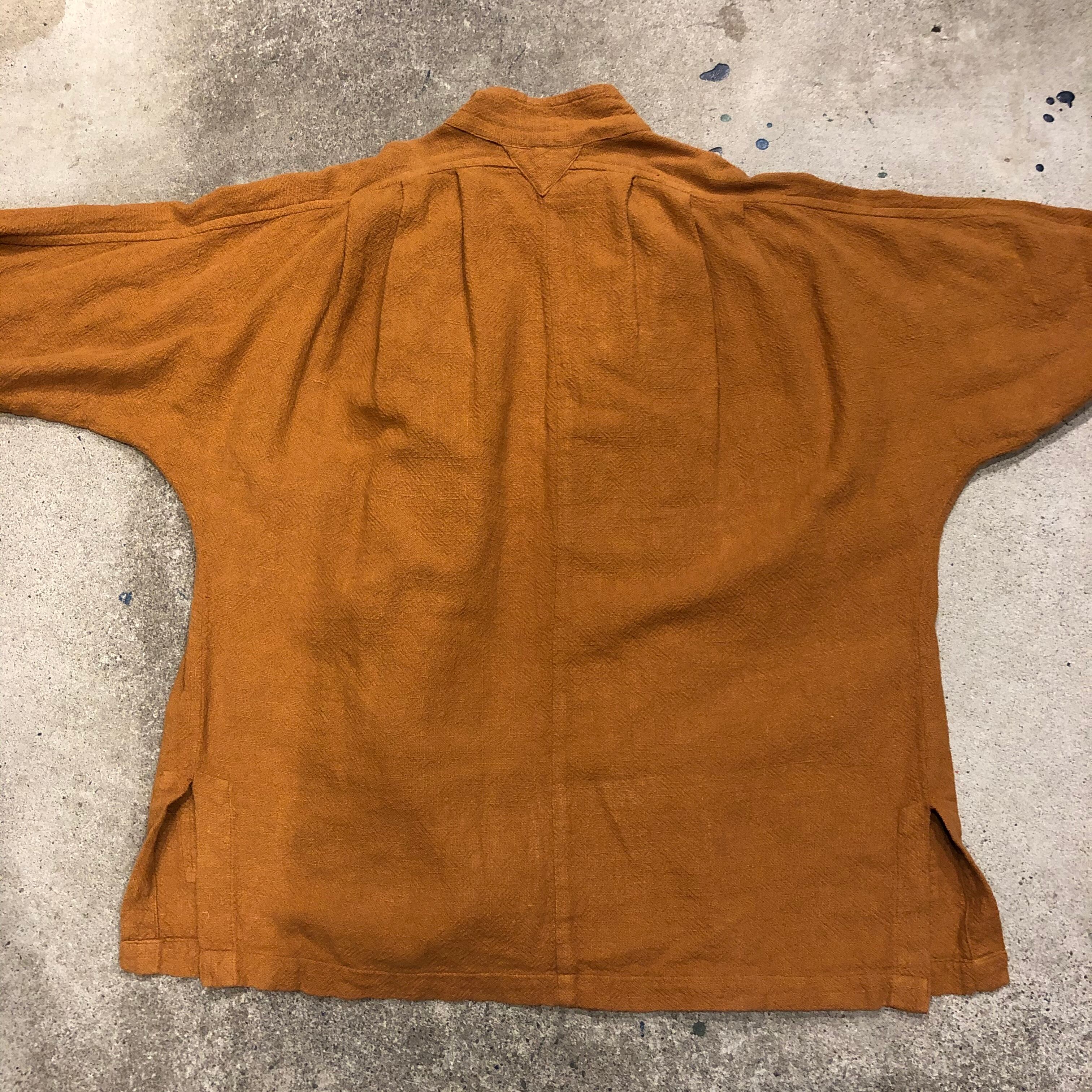 後染めの茶色が良い雰囲気のコットン素材の羽織です。