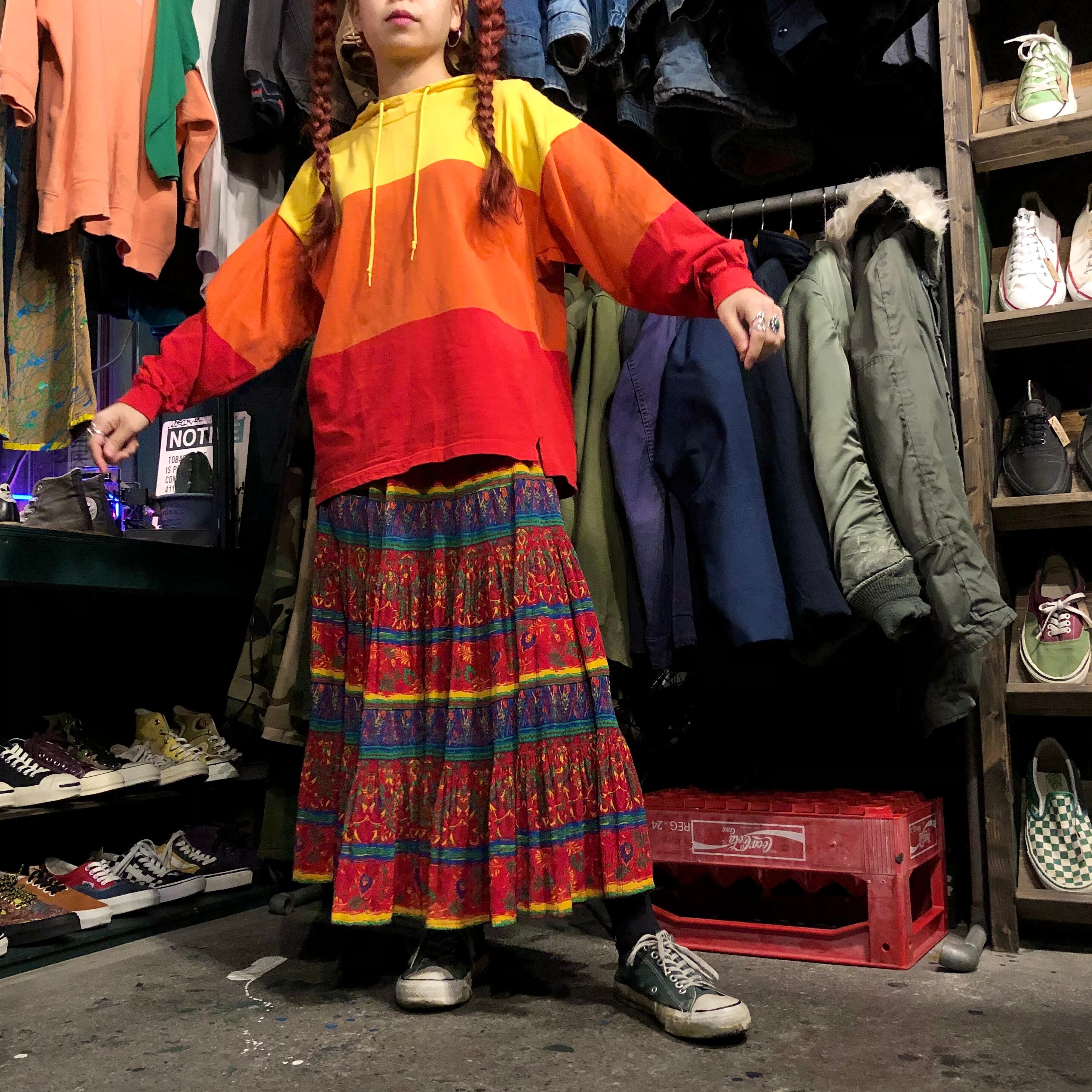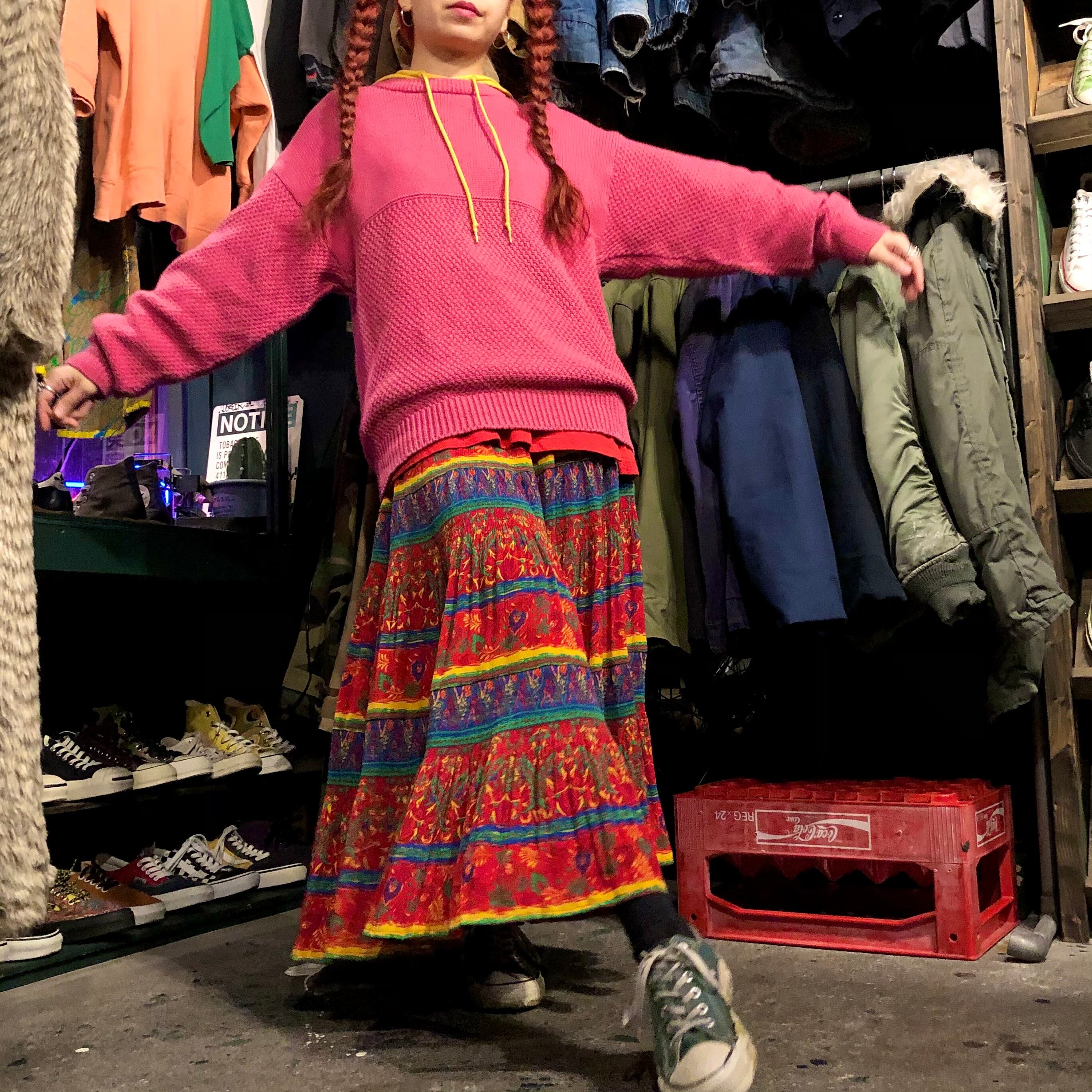 サラサラのポリエステル素材でボリュームがあり歩くたびひらひら動いて素敵です。