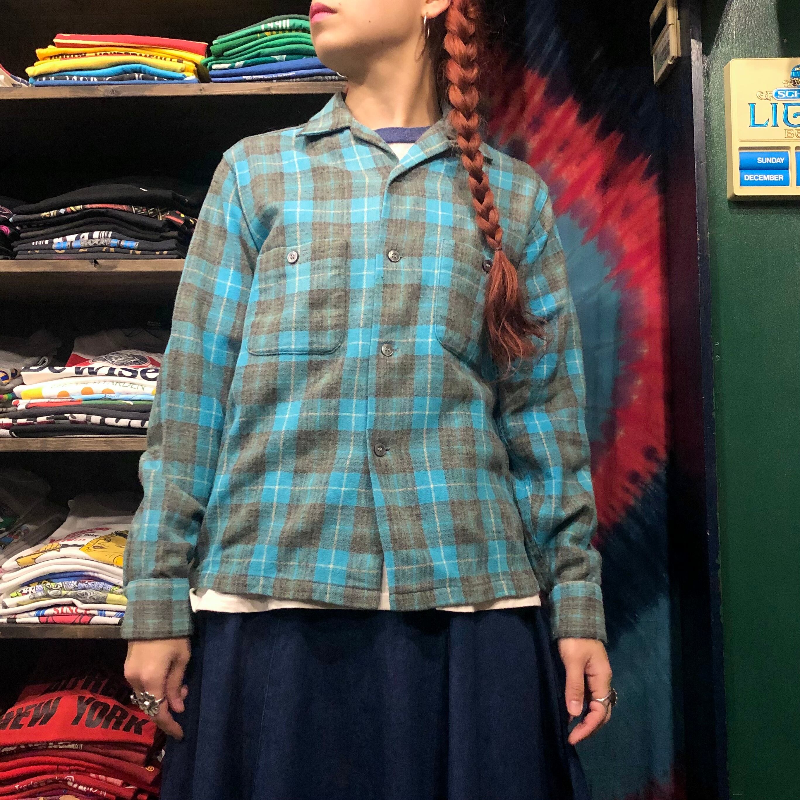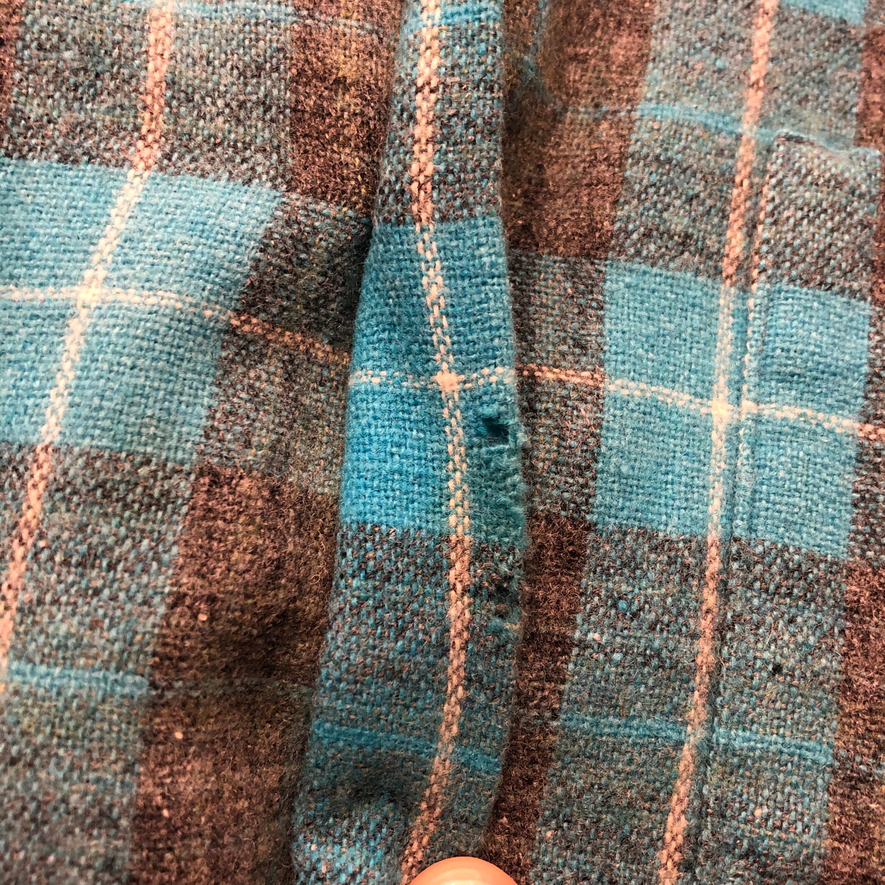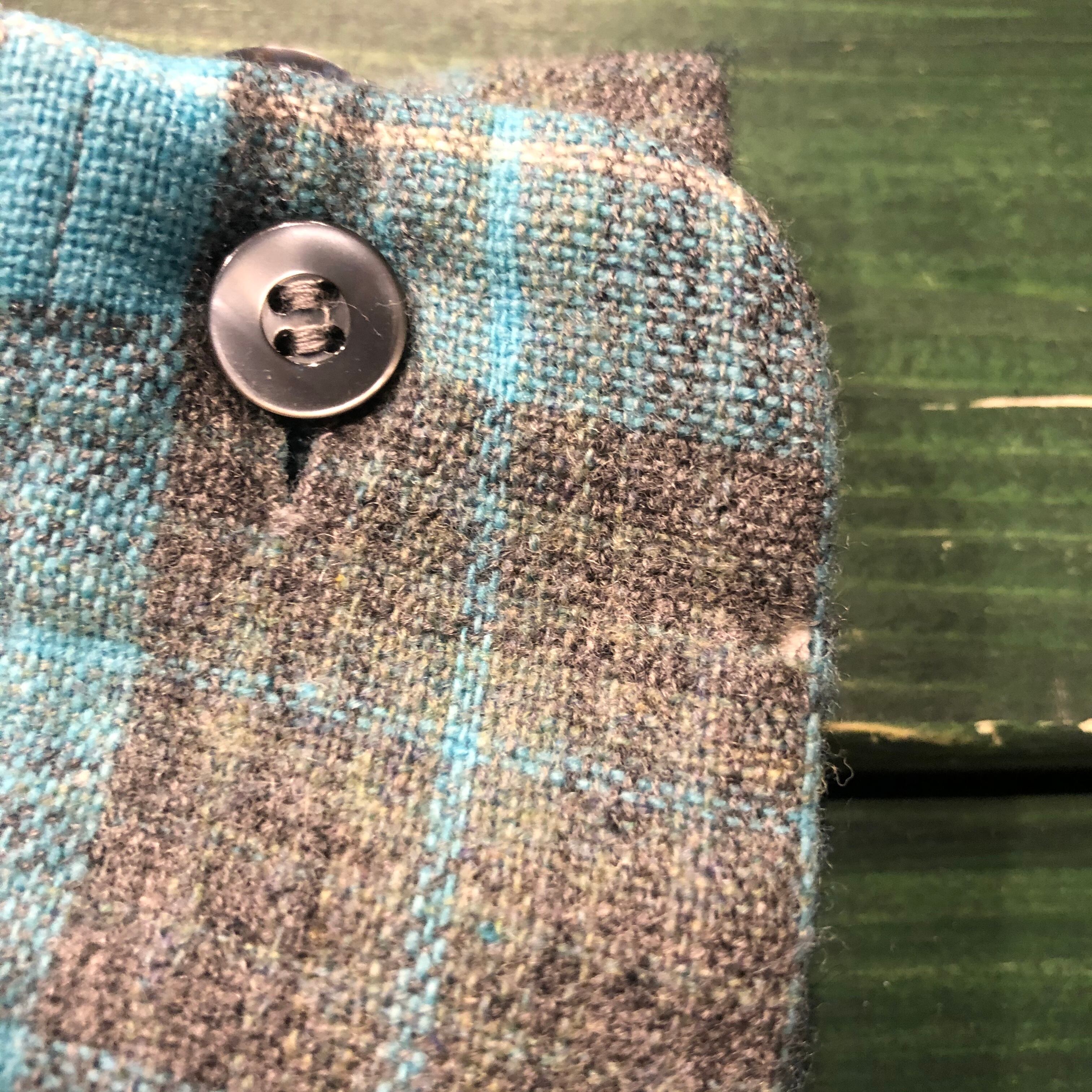 水色とグレーの色合いがかわいいウールシャツです。Tシャツの上に羽織ったり、カーディガンやスウェット、ジャケットを重ねたり色々お使いいただけます。