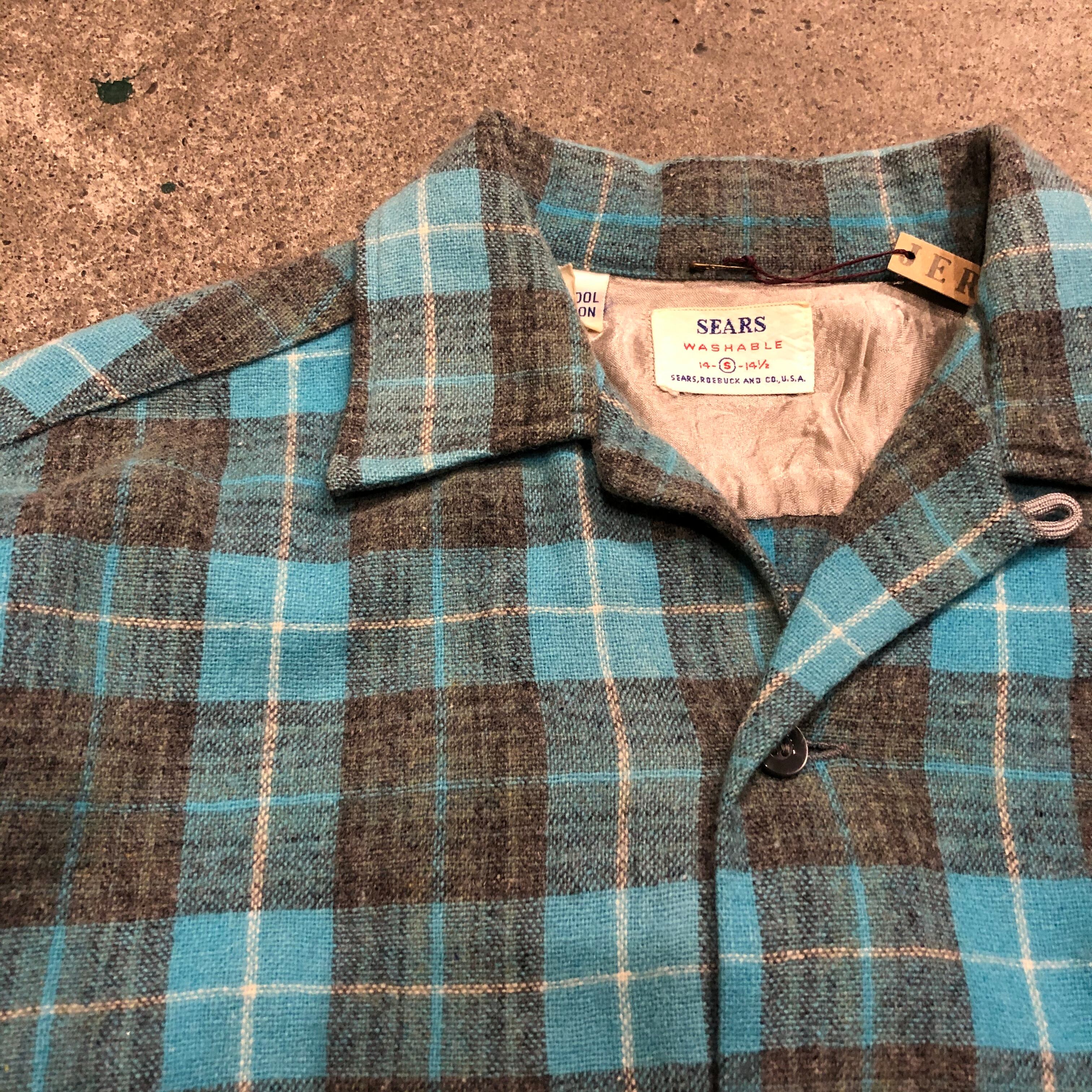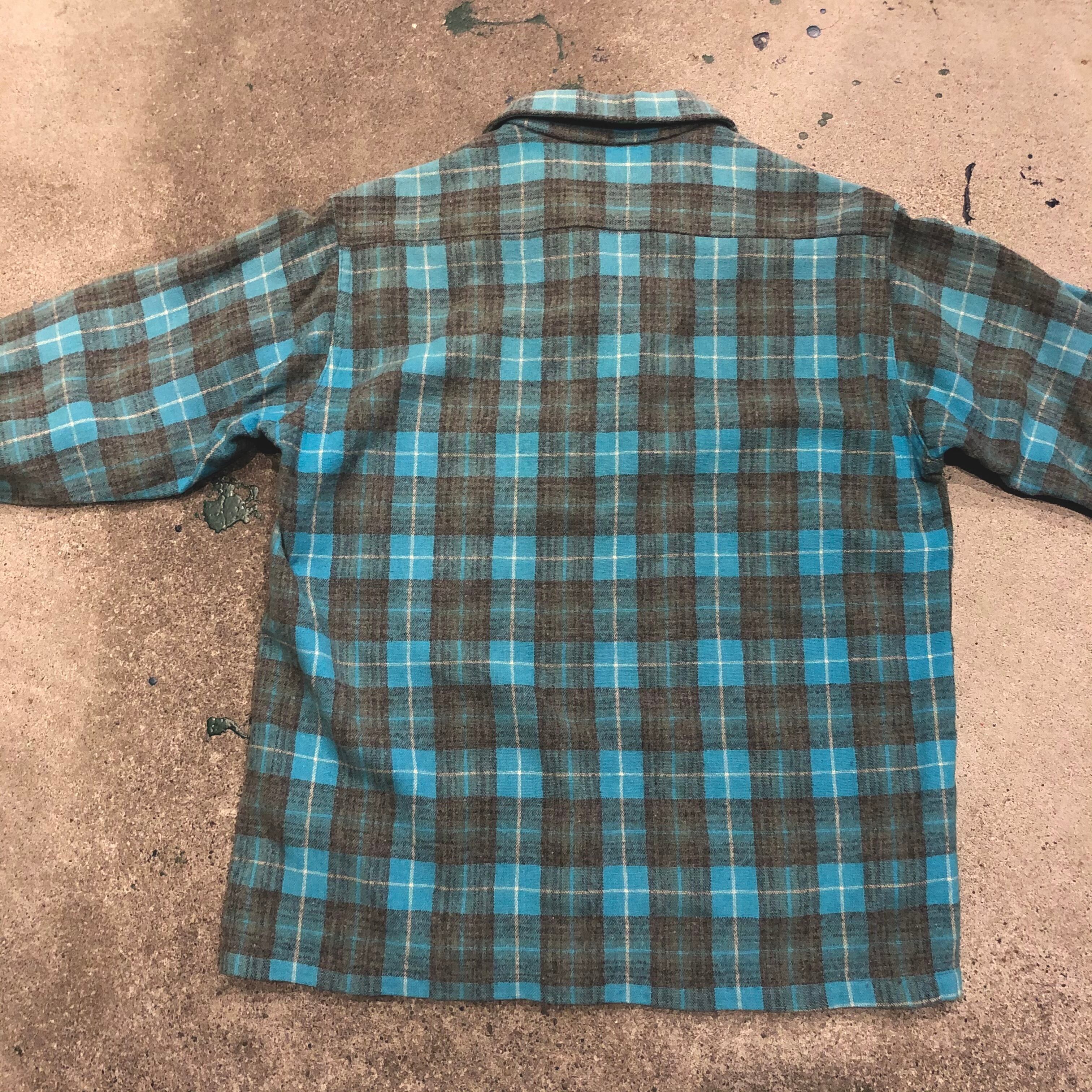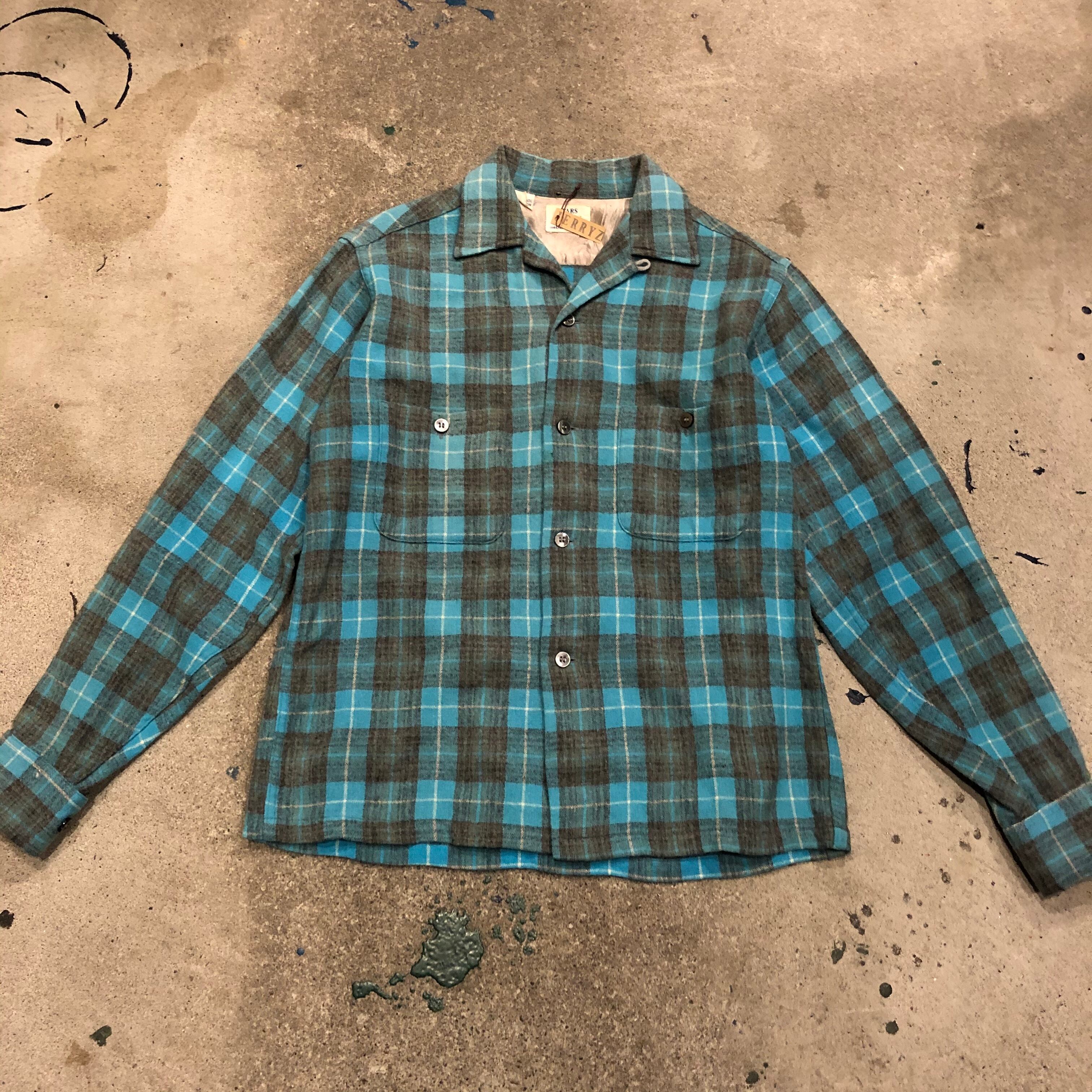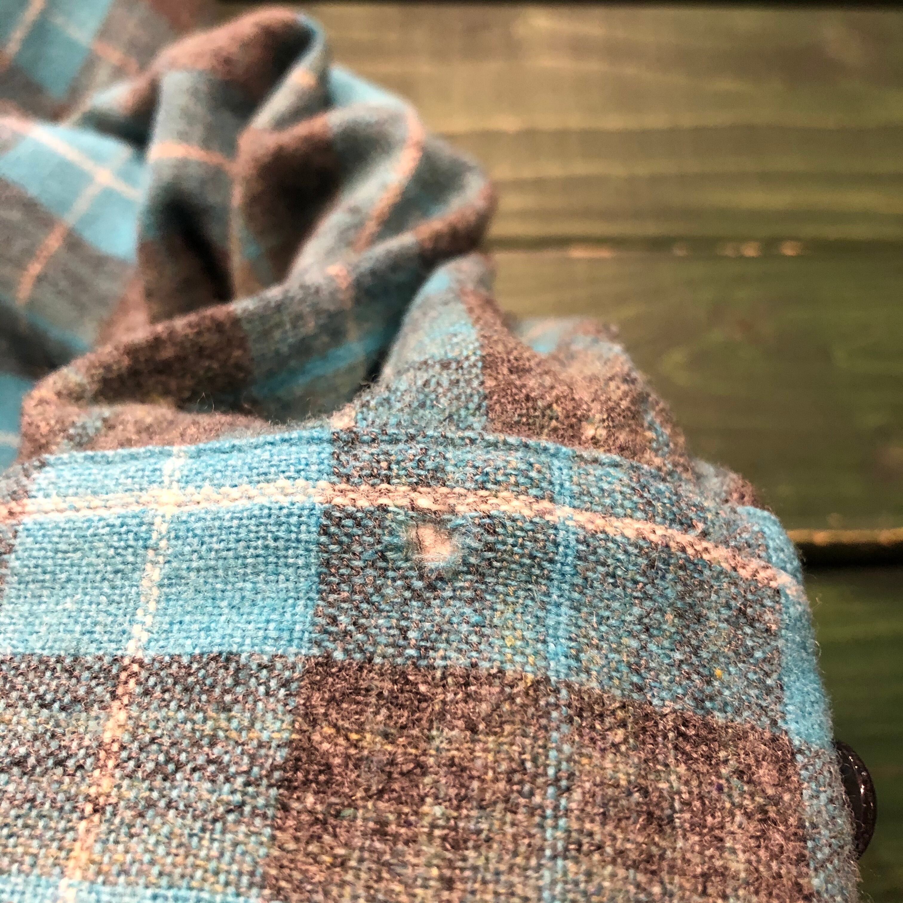 水色とグレーの色合いがかわいいウールシャツです。Tシャツの上に羽織ったり、カーディガンやスウェット、ジャケットを重ねたり色々お使いいただけます。