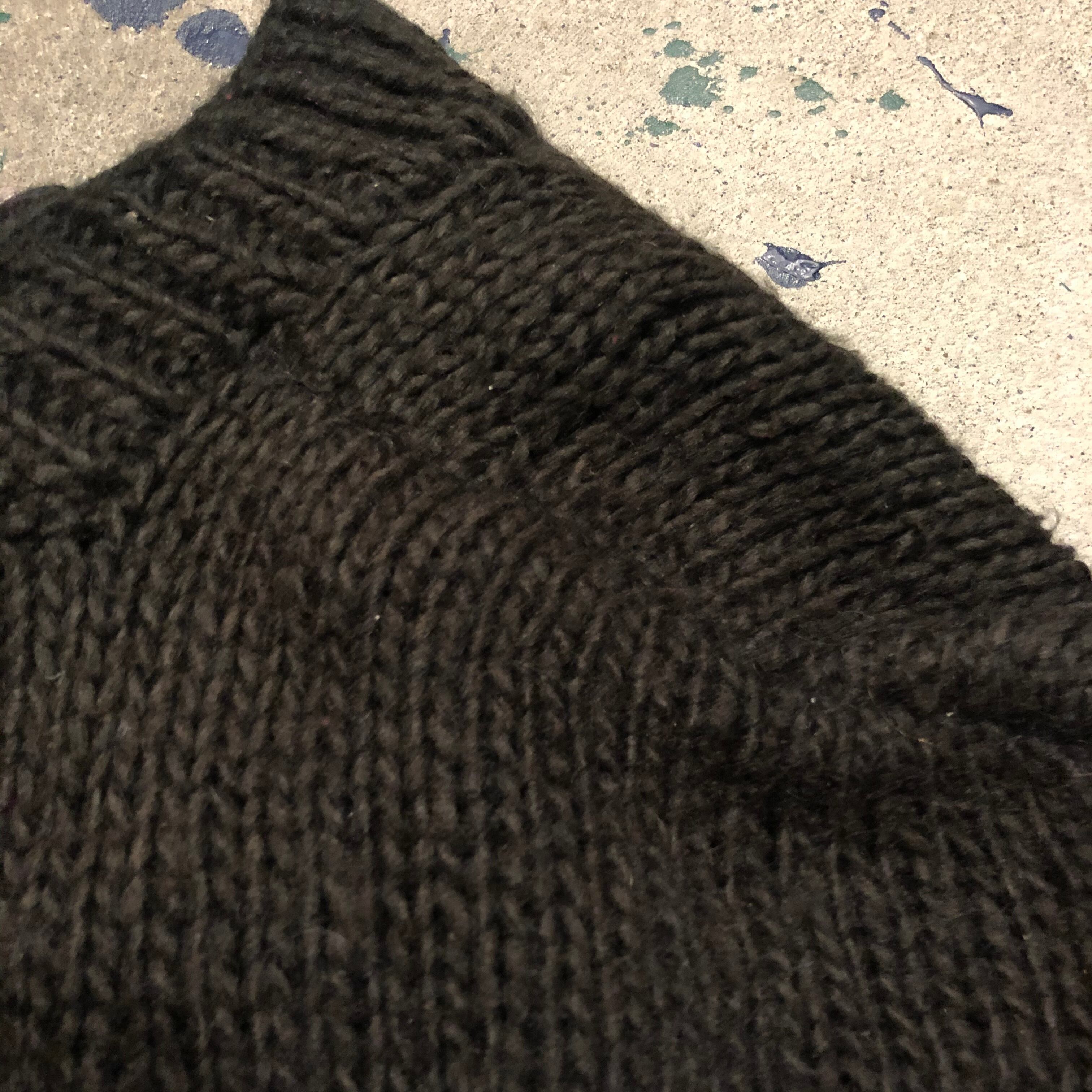 肩の部分が、日焼けなのか少し違う毛糸で編まれているのかうっすら茶色っぽくなっています。