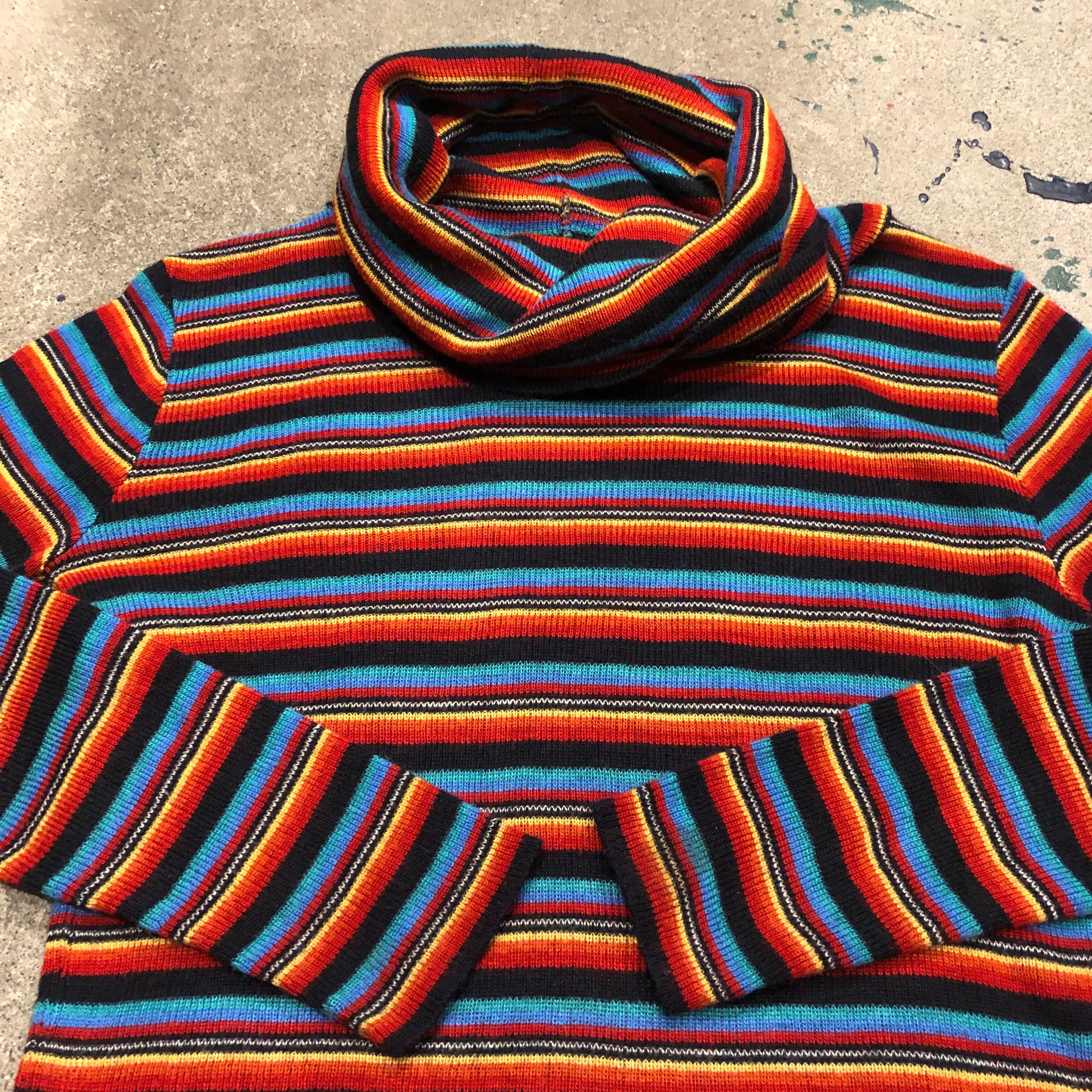 コンパクトなサイズ感に緩めなタートルネックがポイントになっています。インナーとしても一枚でも使える一着です。古着ならではなカラーリングが素敵ですね!