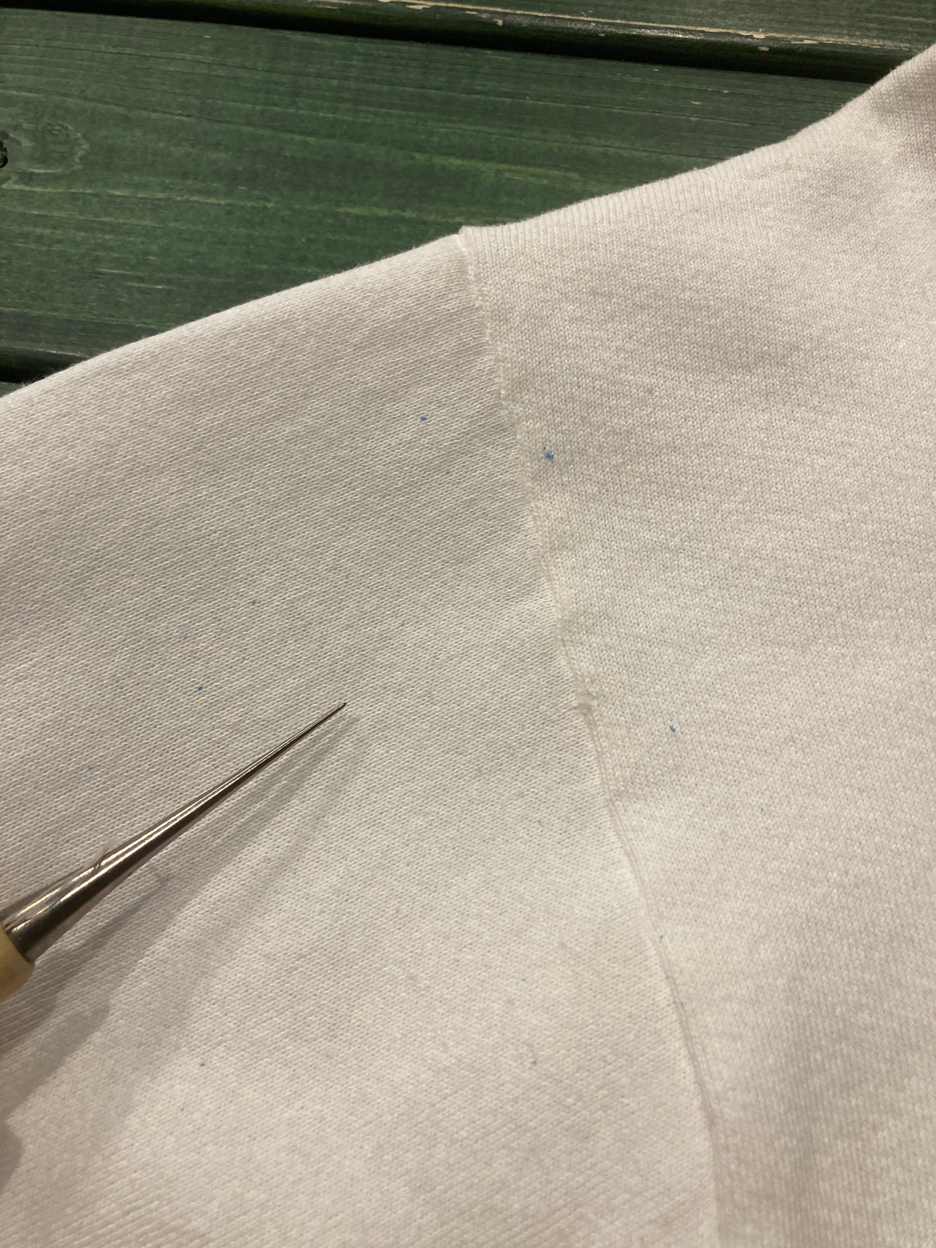 全体的な状態は良いですが、右肩付け根部分に細かなペンキの飛び散り、フロント左脇腹部分に薄らとシミかございます。