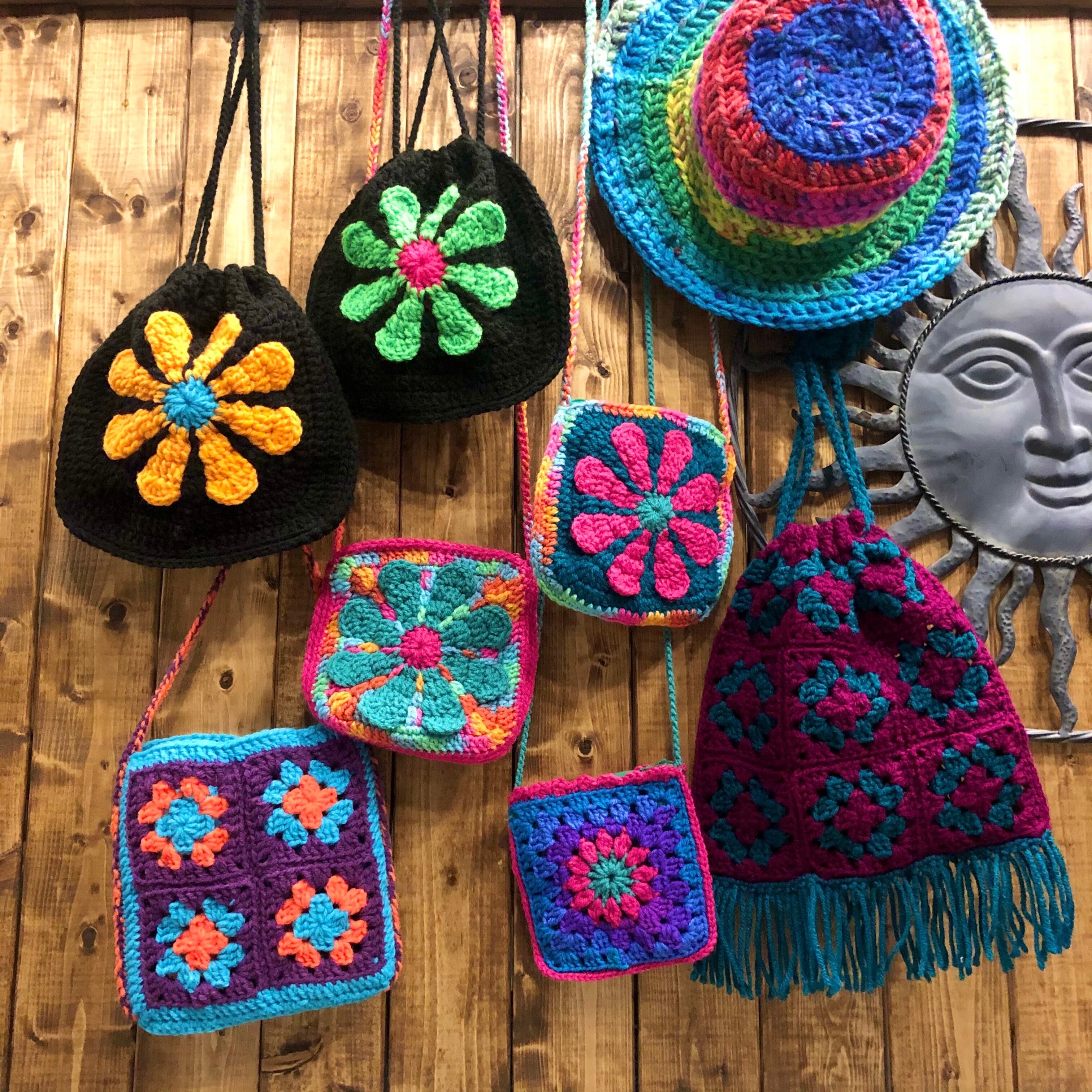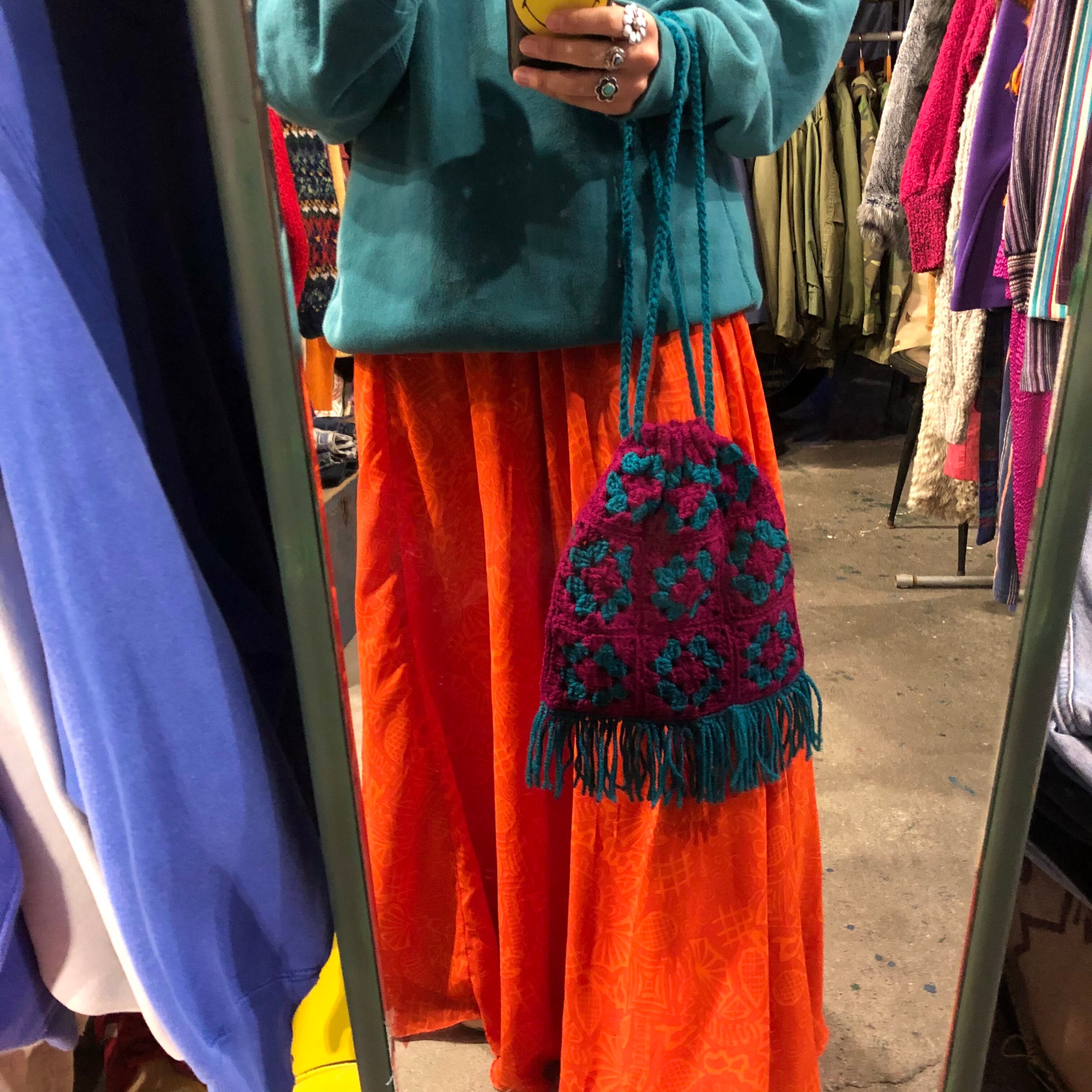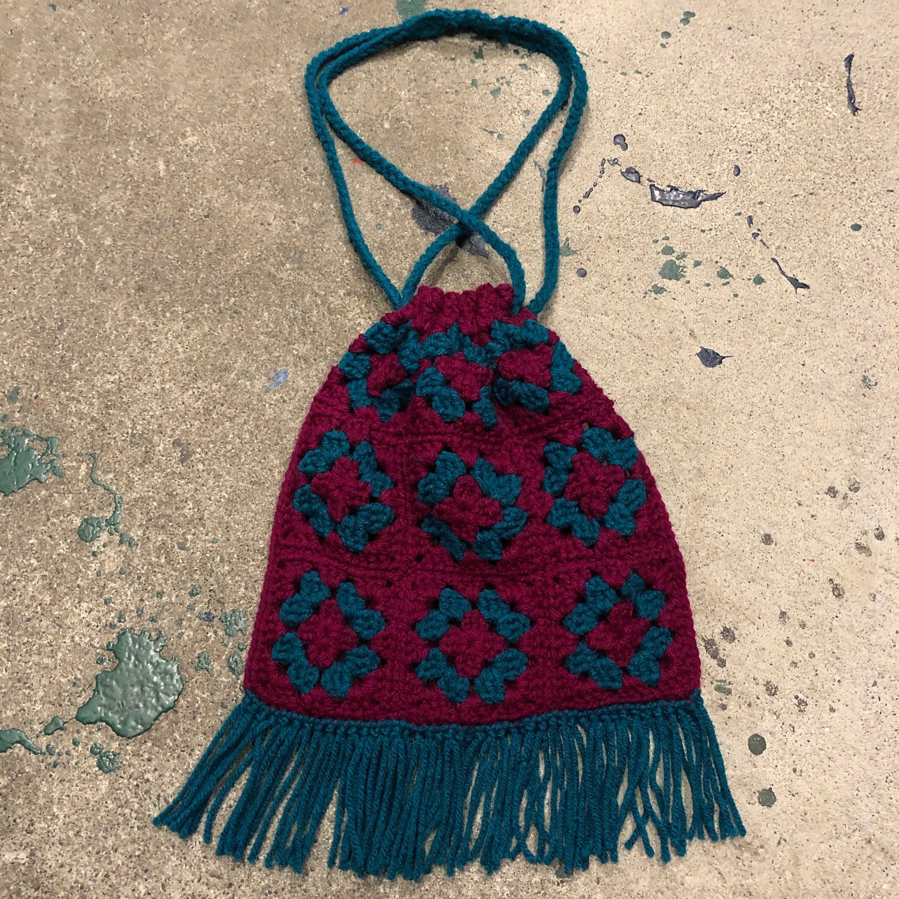 アメリカで購入した毛糸を使って制作いたしました。絶妙な色味同士を合わせて大人っぽい雰囲気だと思います。ペットボトルも入るサイズ感ではありますがあまり重いものを入れるのはお勧めしません。
