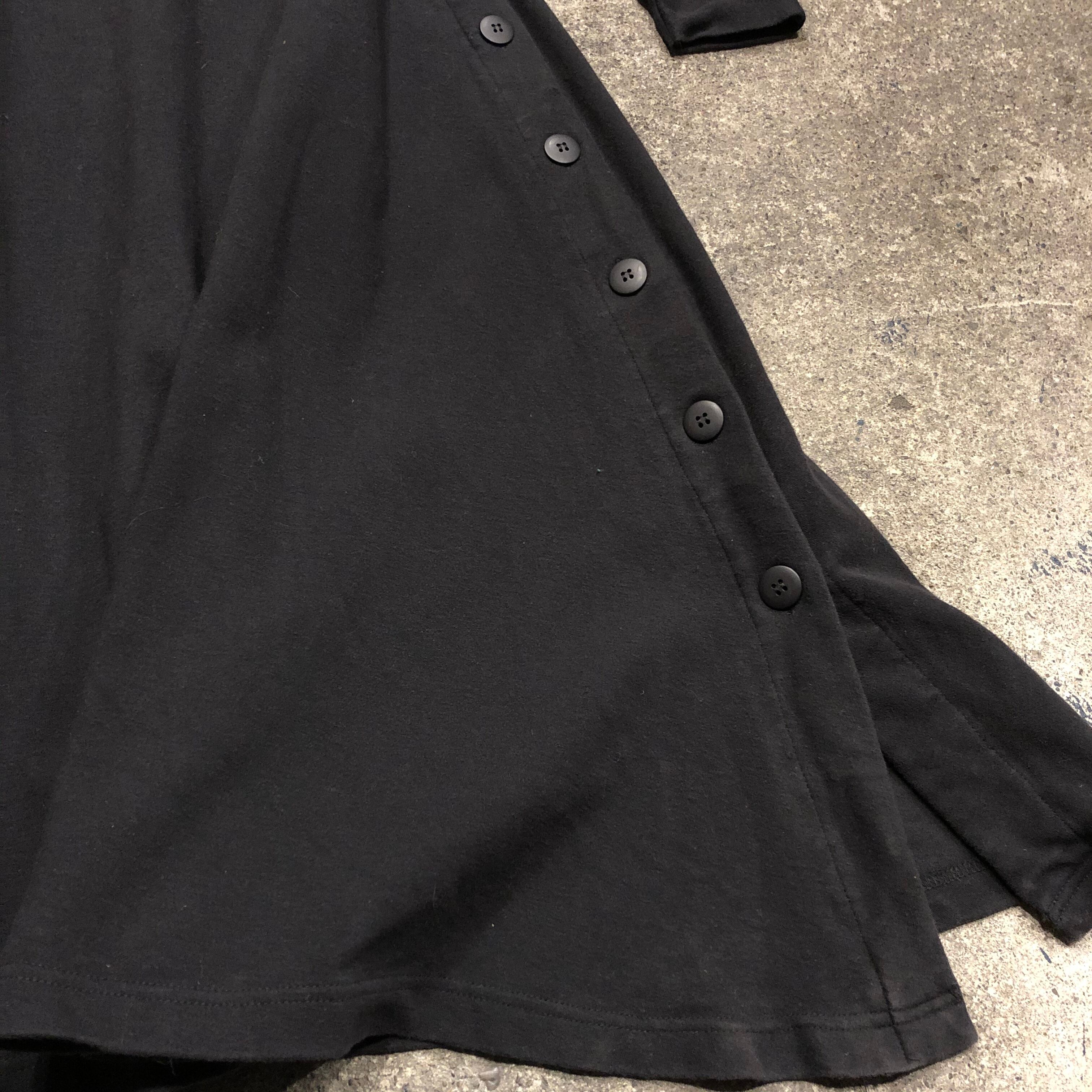 短すぎず長すぎず動きやすい丈感でカジュアルな生地で着ていてとても楽です。サイドについたボタンもさりげなくポイントになっていてかわいいです。