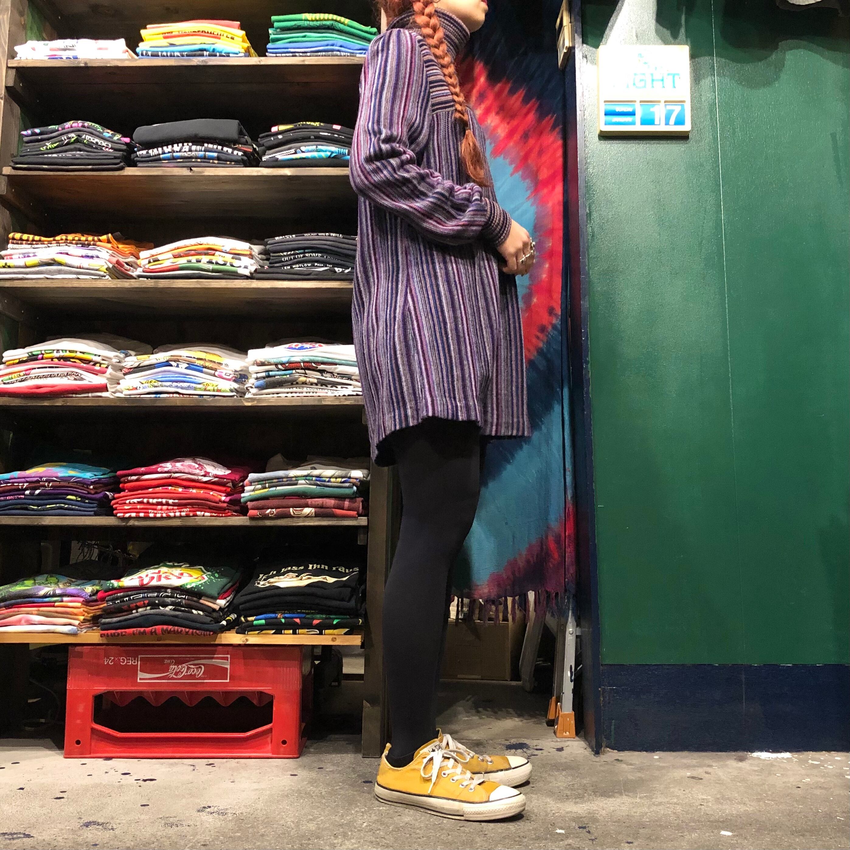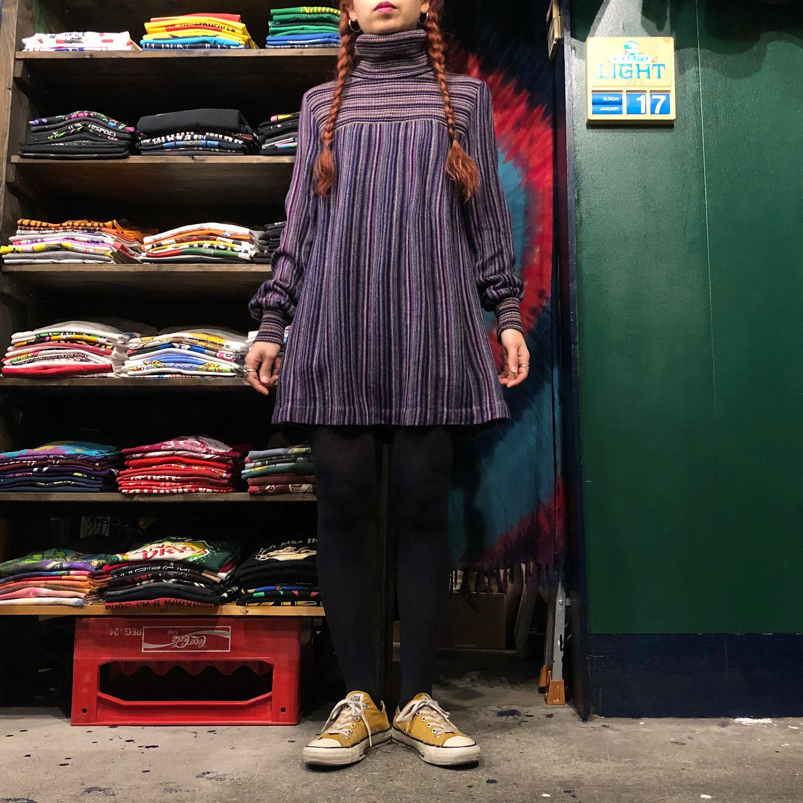 紫系のミックスカラーがかわいいニットのミニワンピースです。