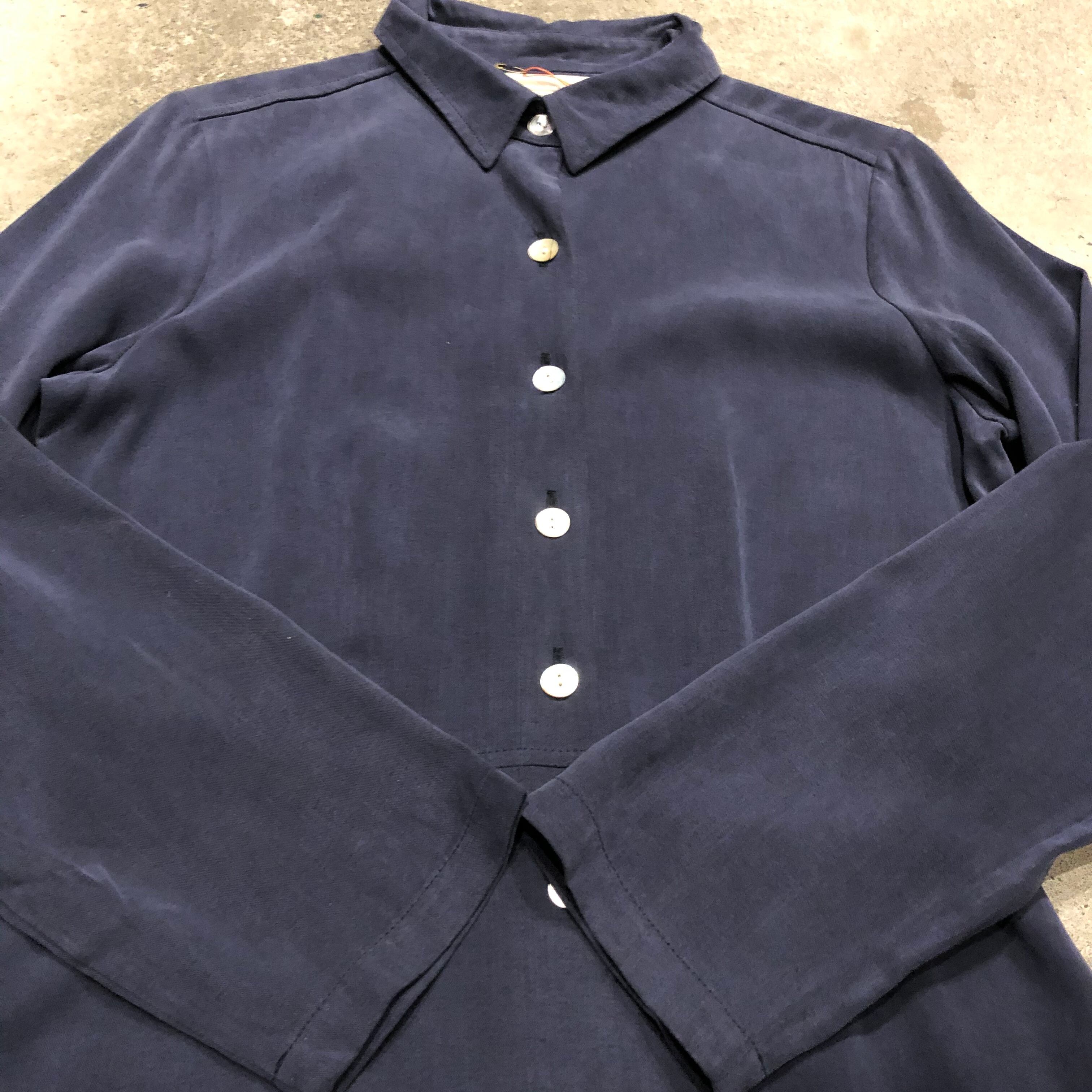 シェルボタンの前開きで羽織のようにも着られます。細すぎず太すぎず余裕があって着ていてとても楽です。