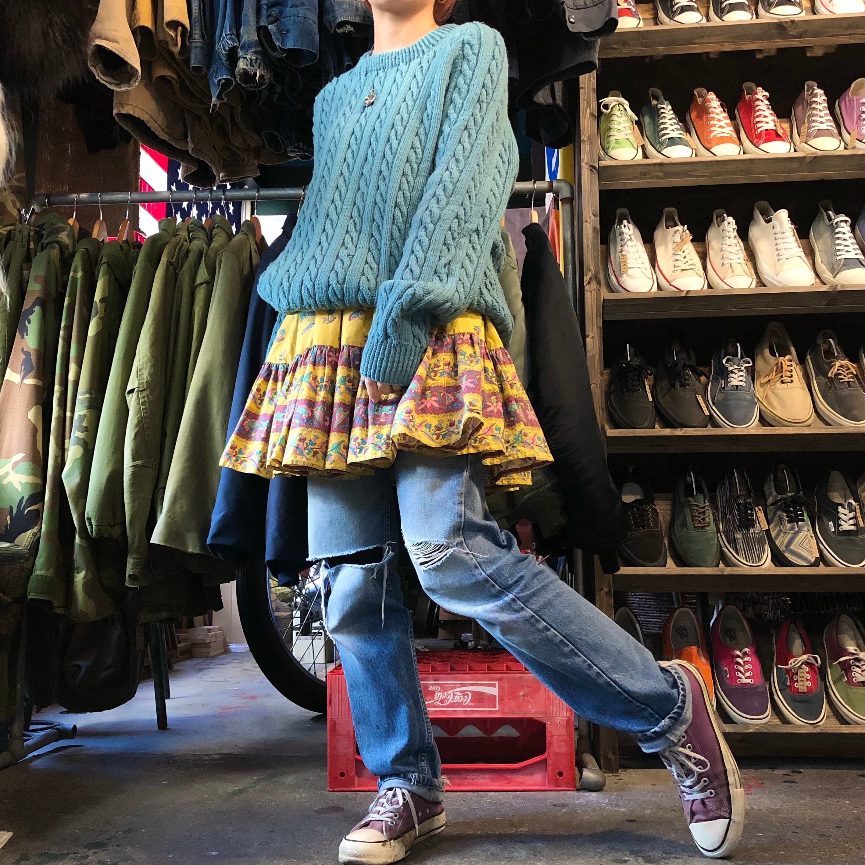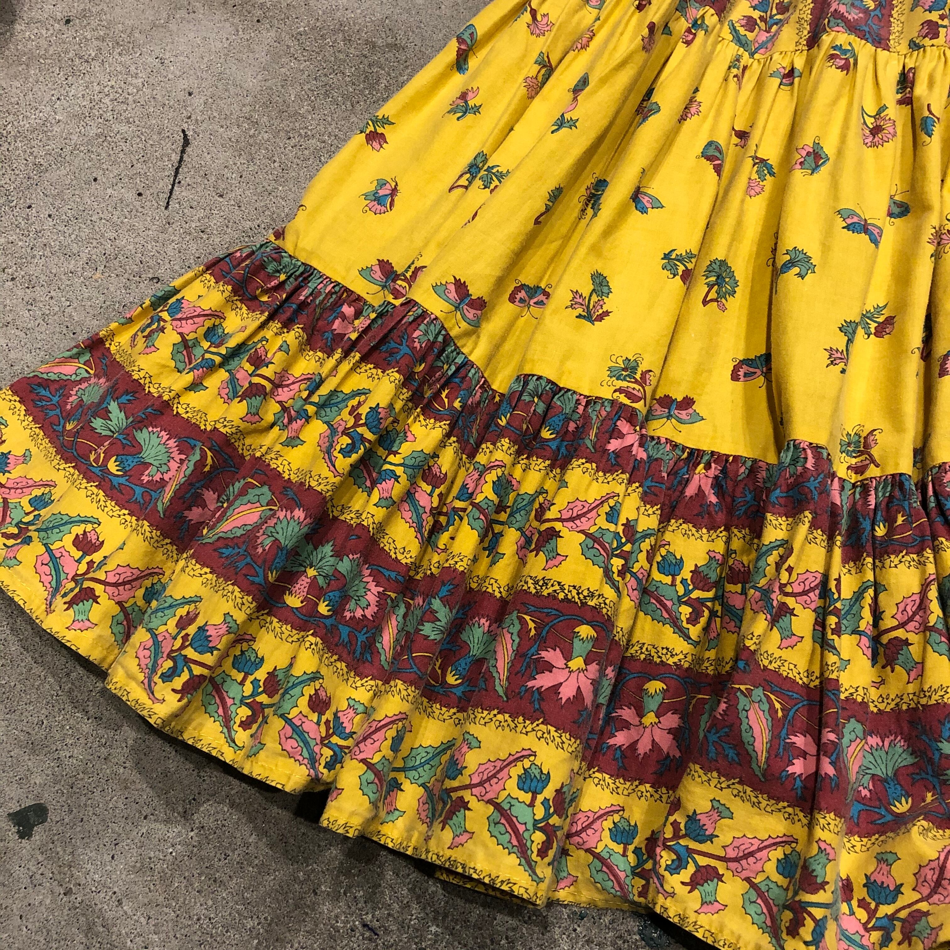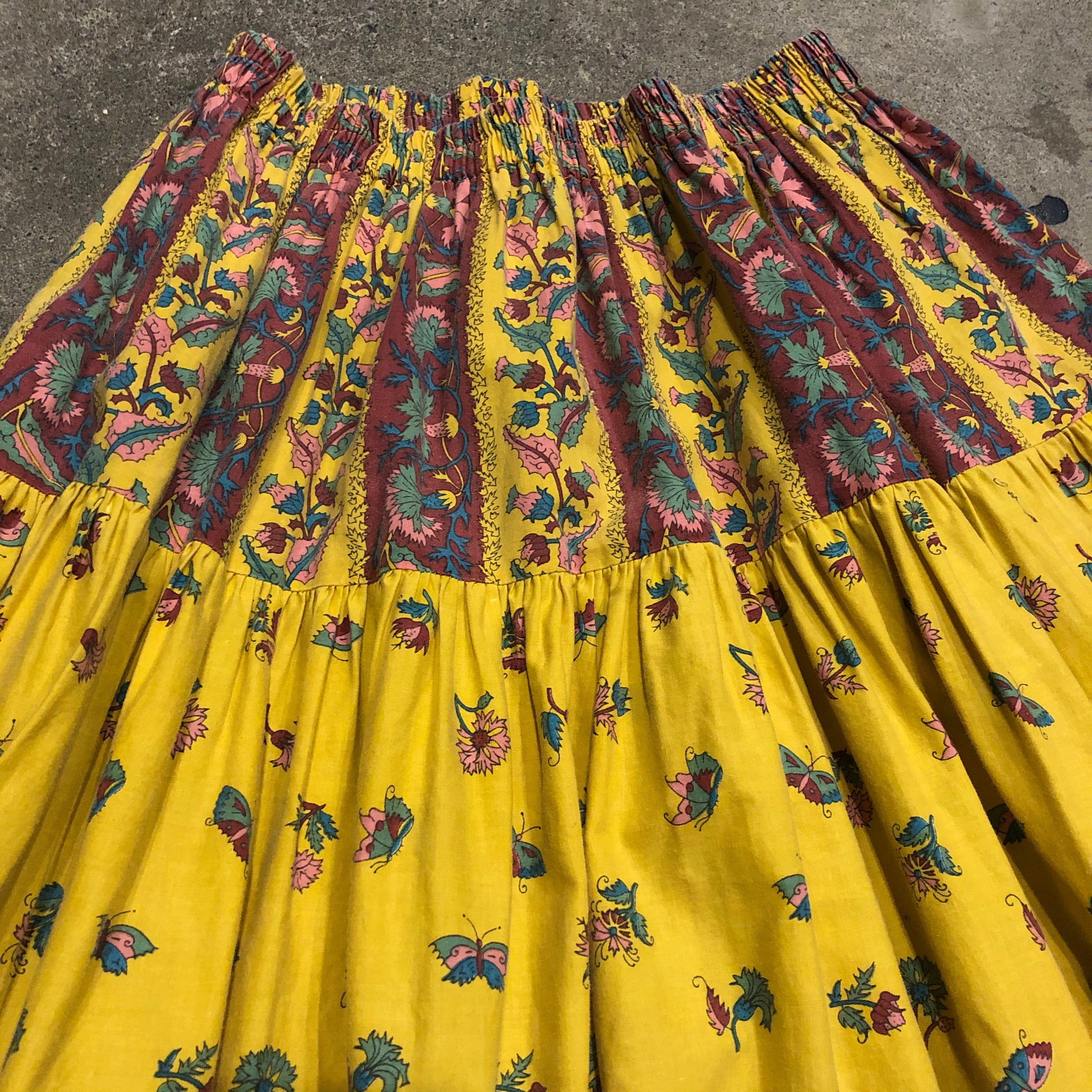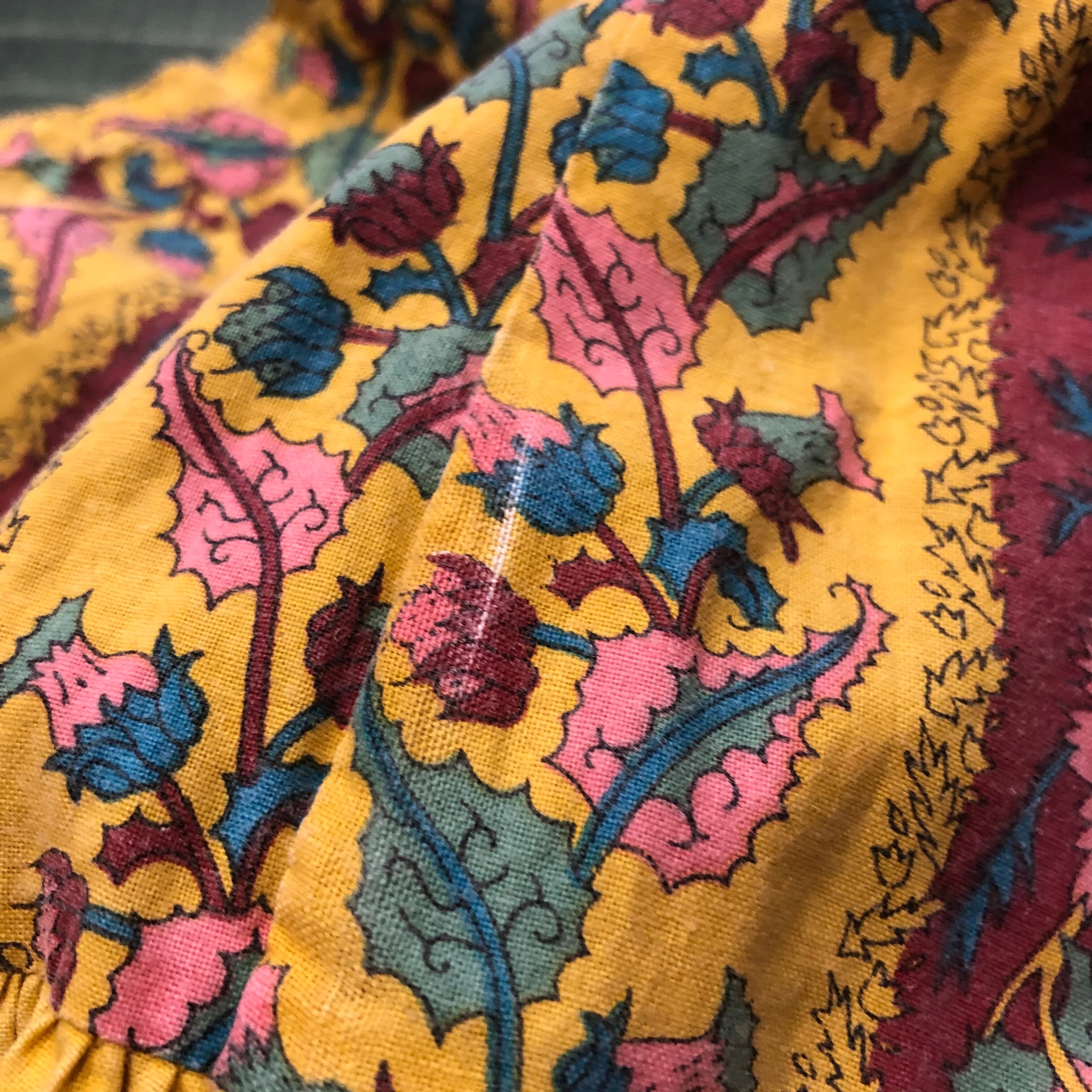マスタードと赤茶に水色や緑の差し色がかわいいプロバンススカートです。