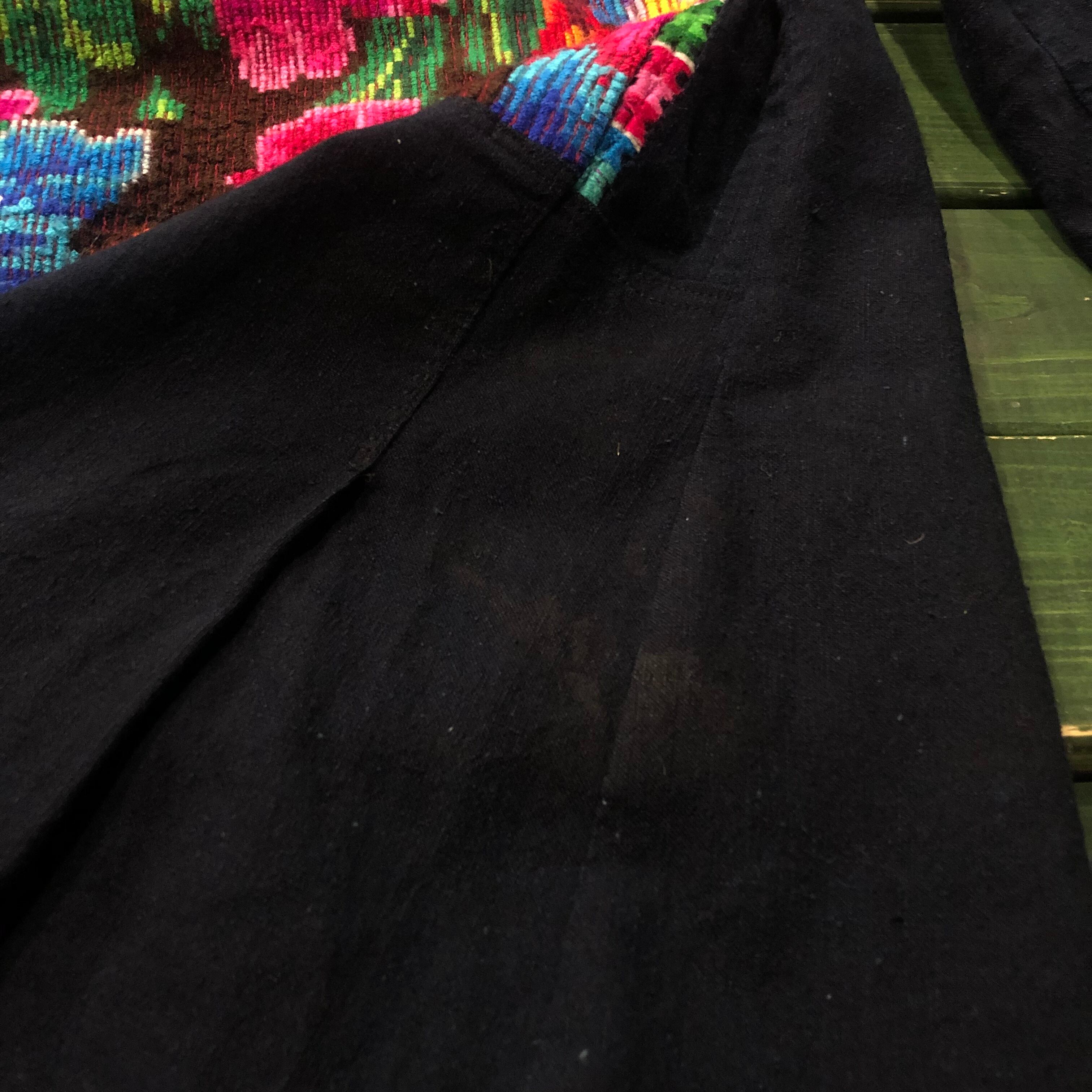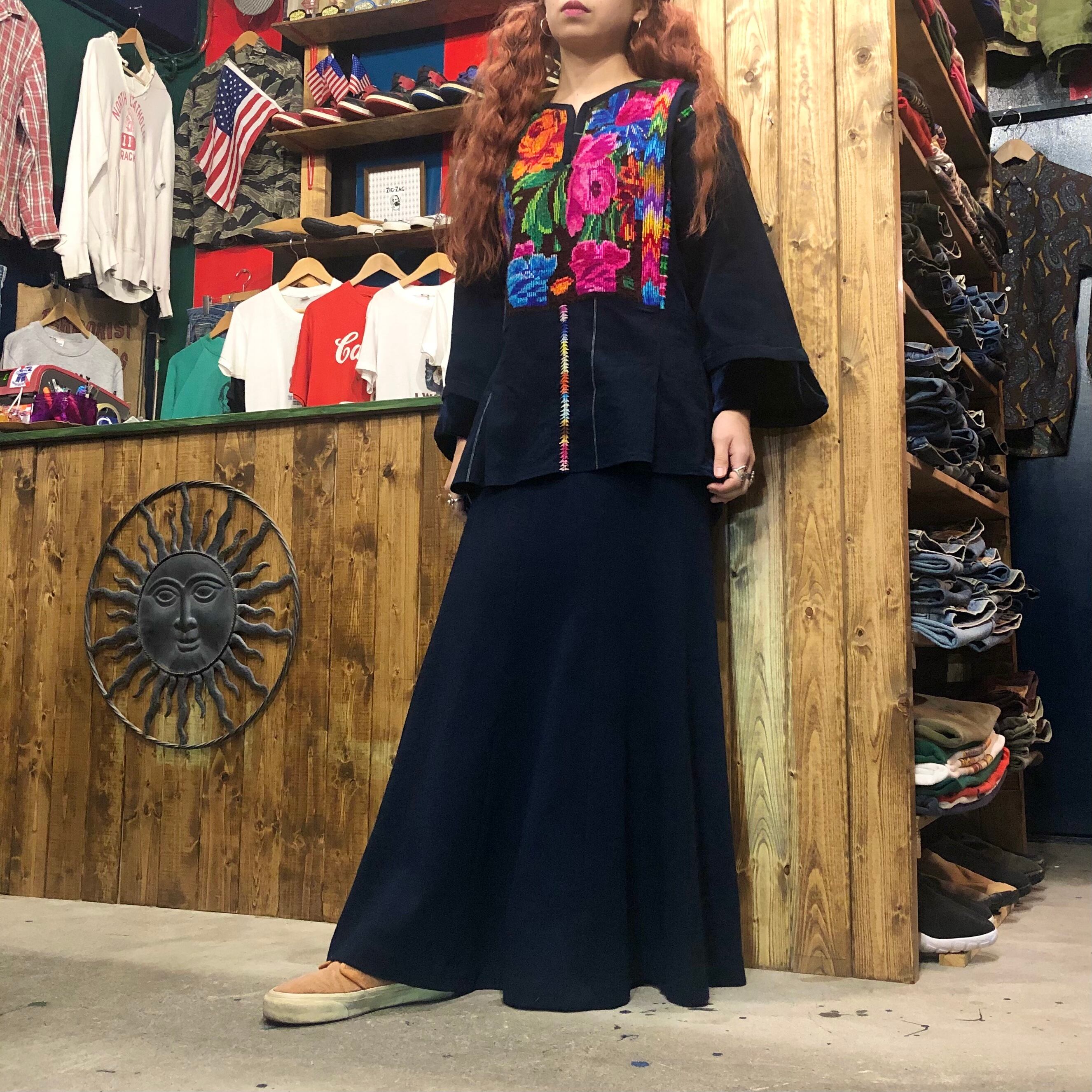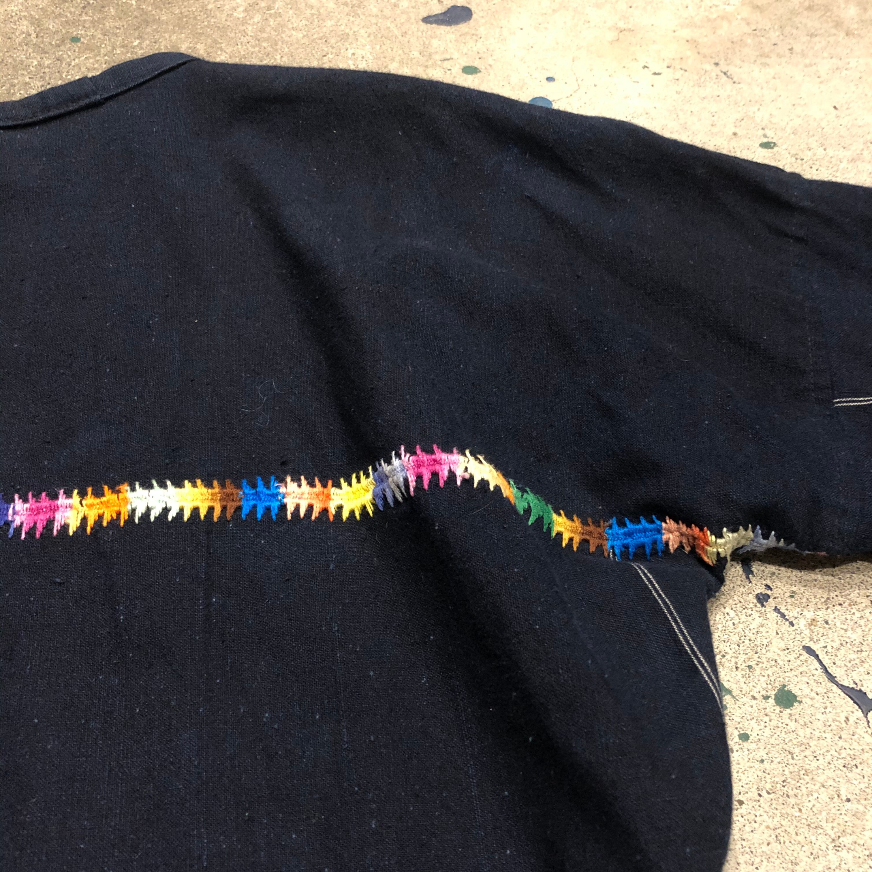 インディゴ染めのような深いネイビーにとても美しい刺繍が映えてインパクトのある一着です。
