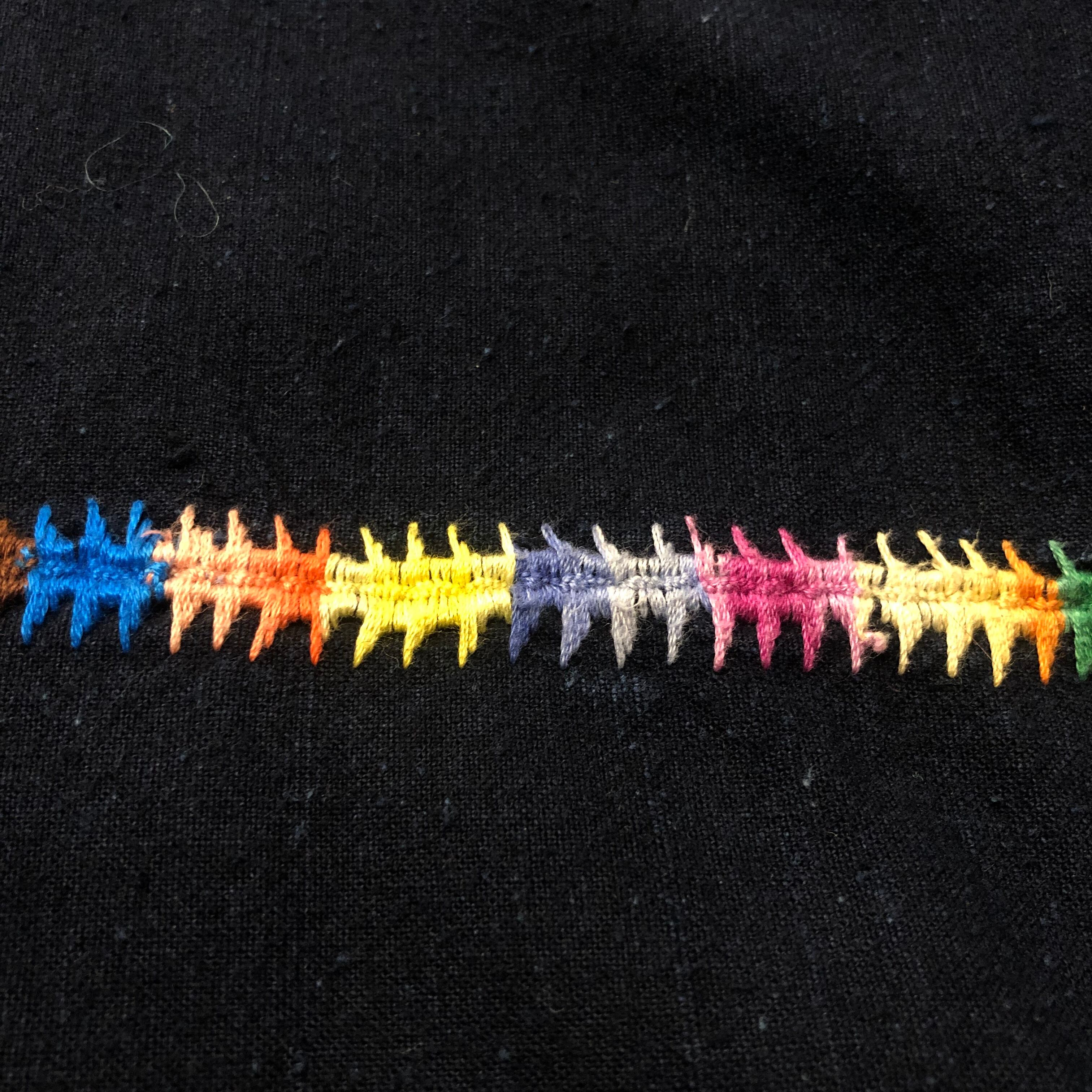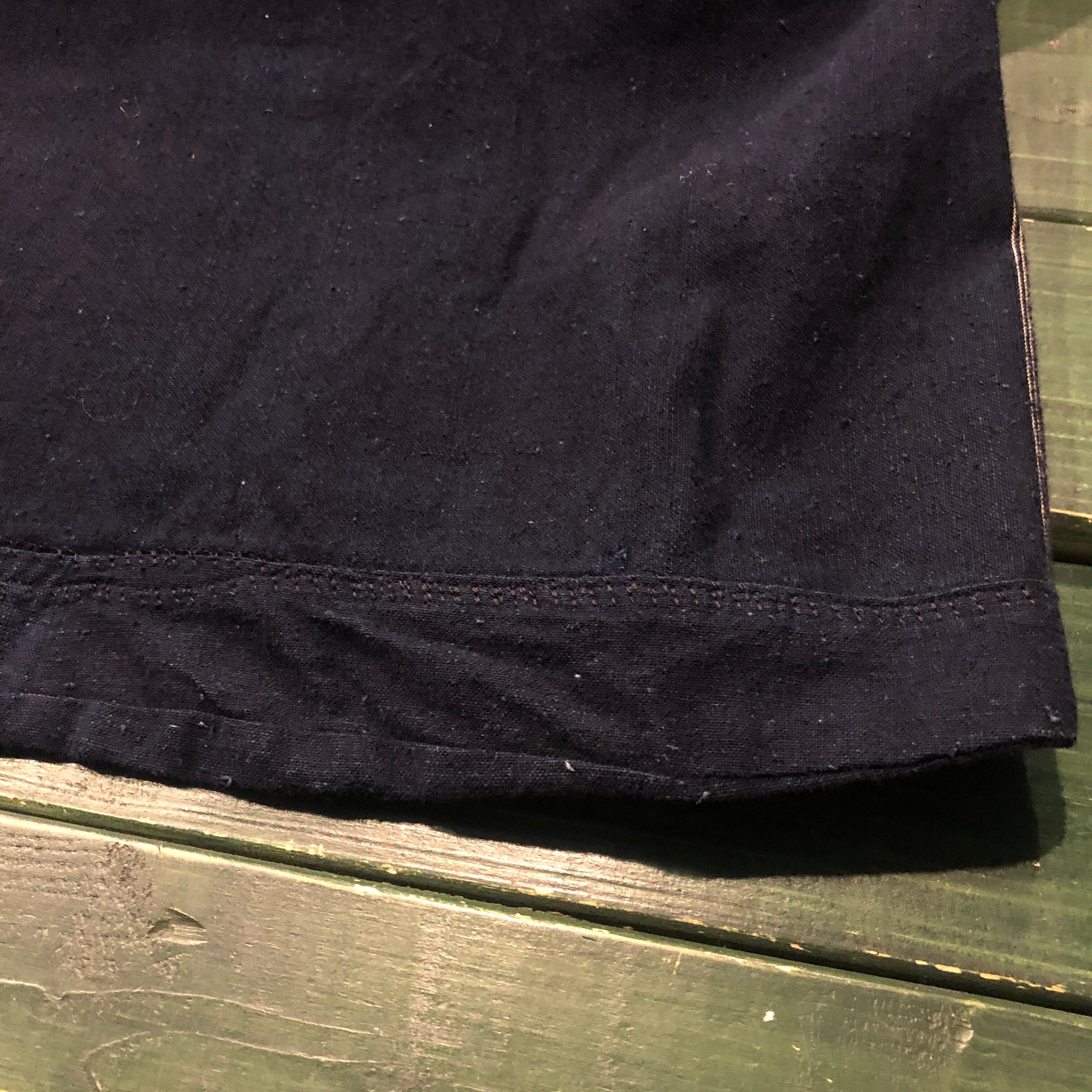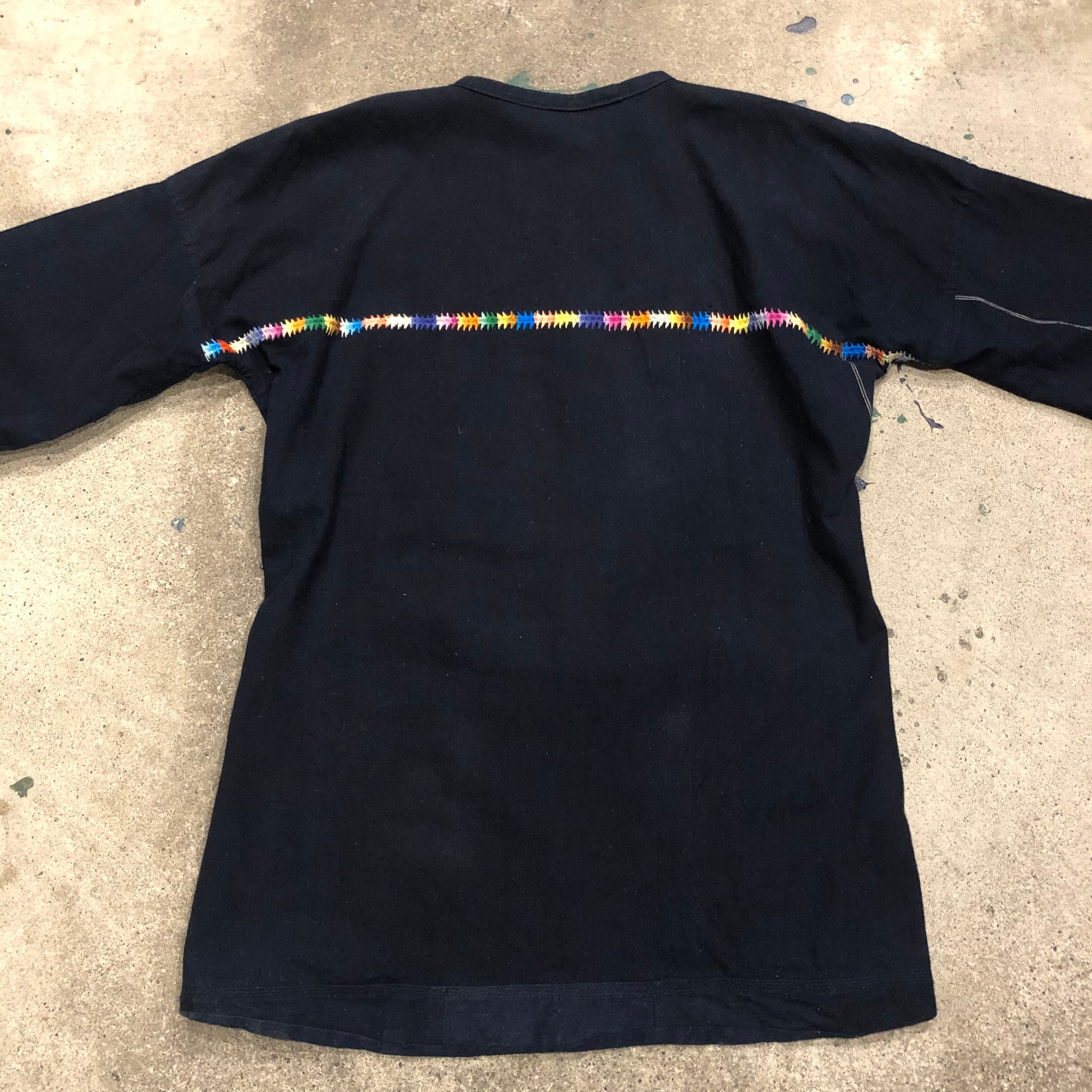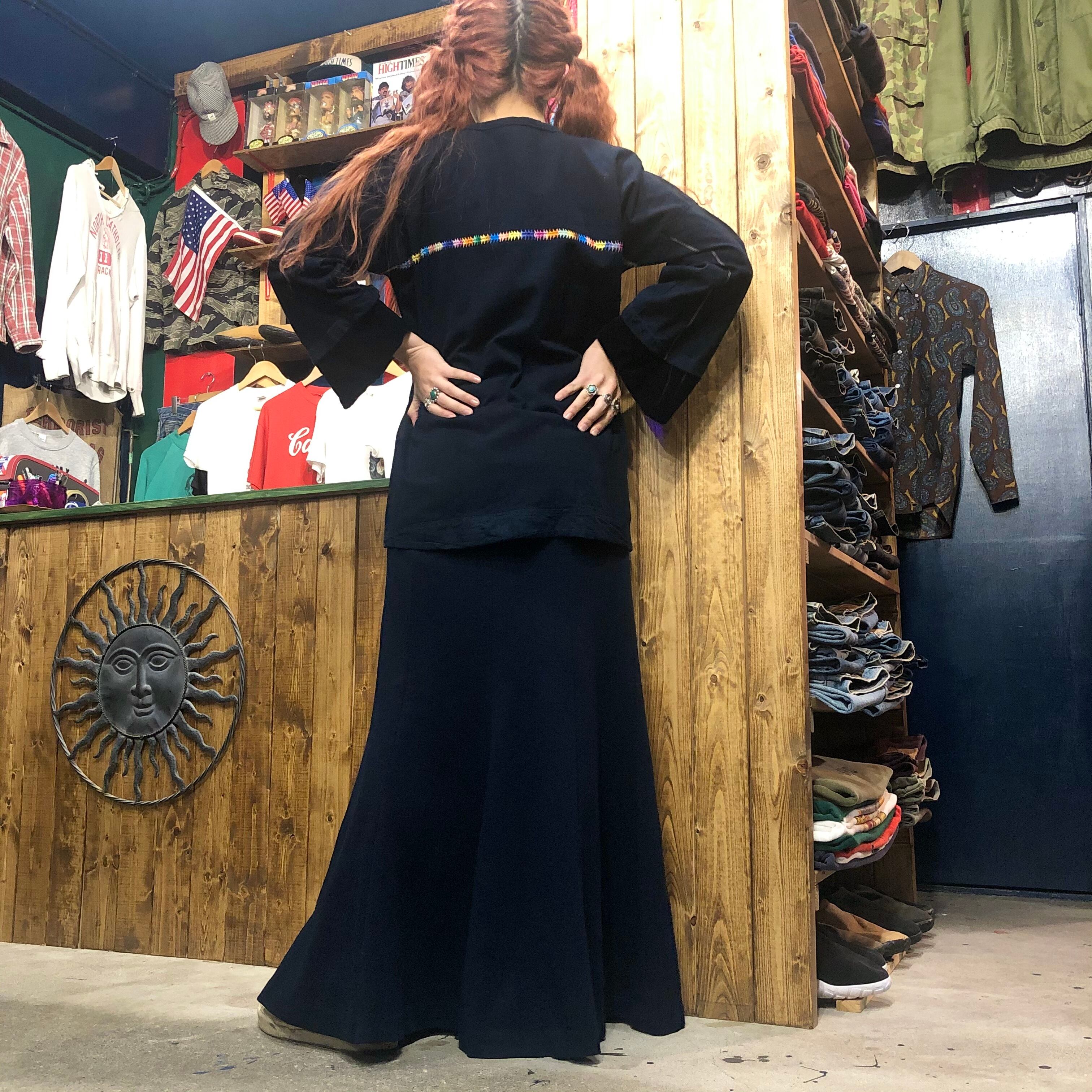 インディゴ染めのような深いネイビーにとても美しい刺繍が映えてインパクトのある一着です。