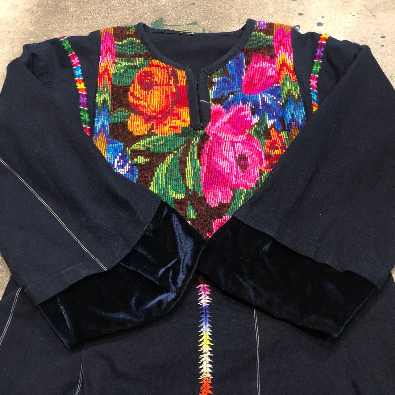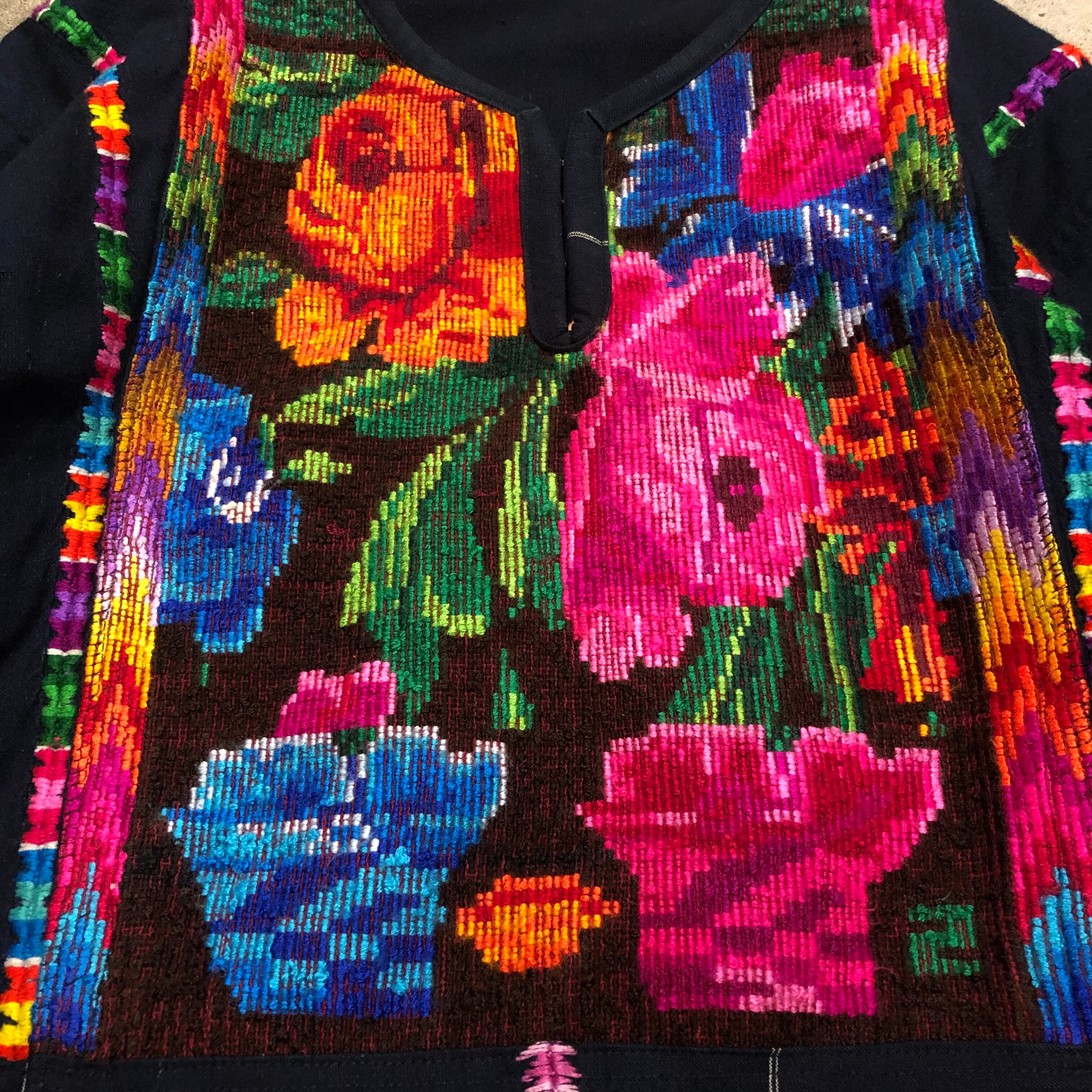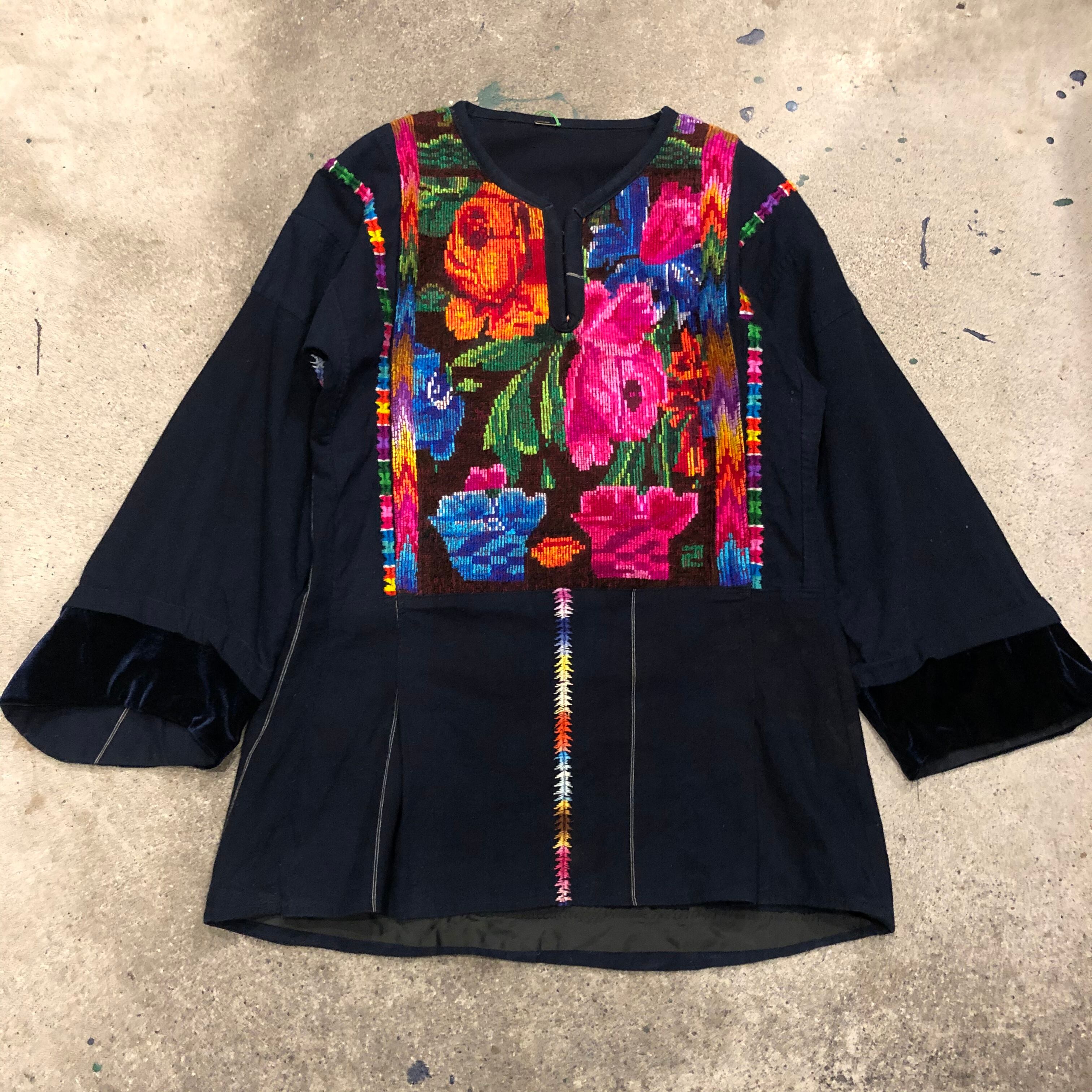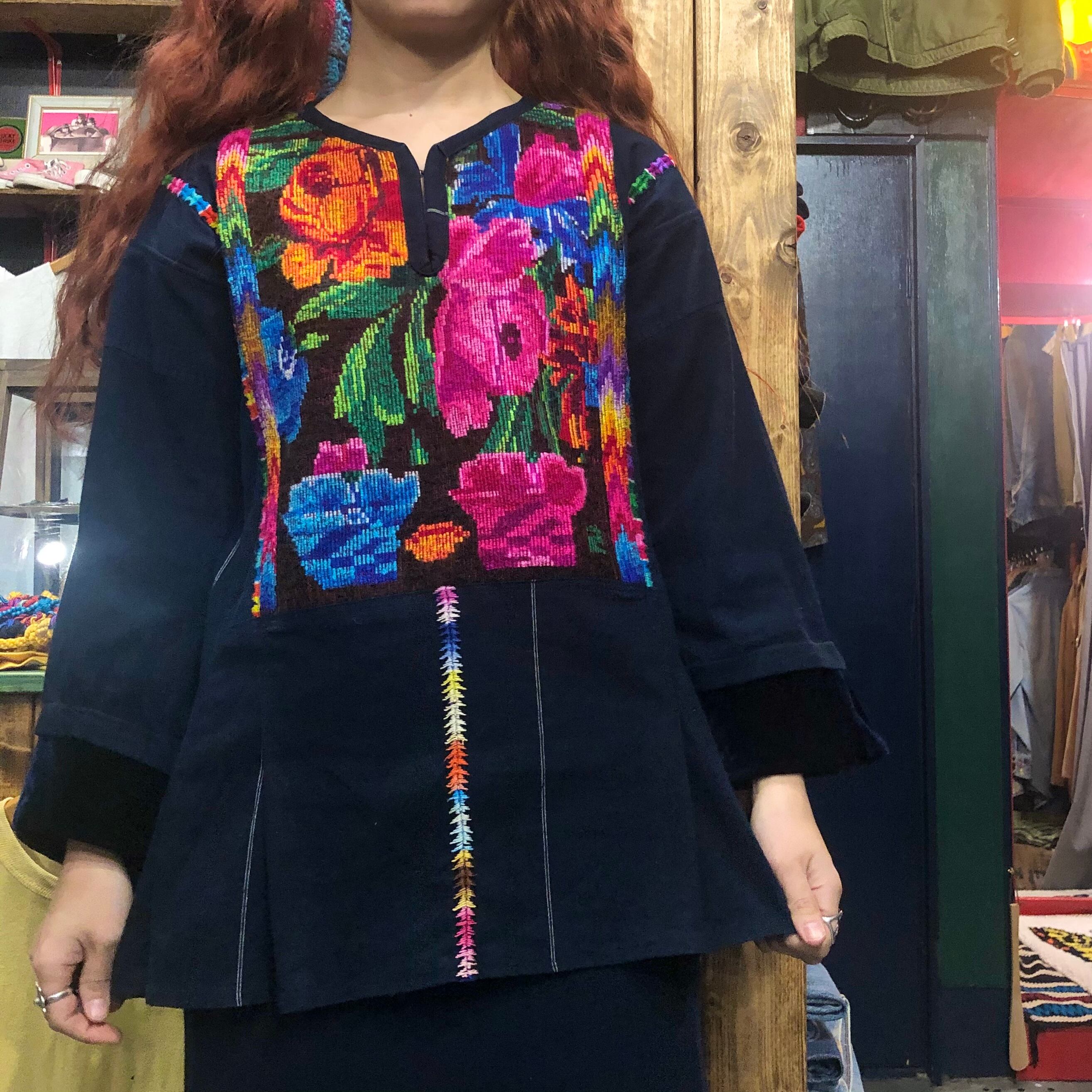 おそらくグァテマラ製のお花の手刺繍がとても素敵なチュニックです。