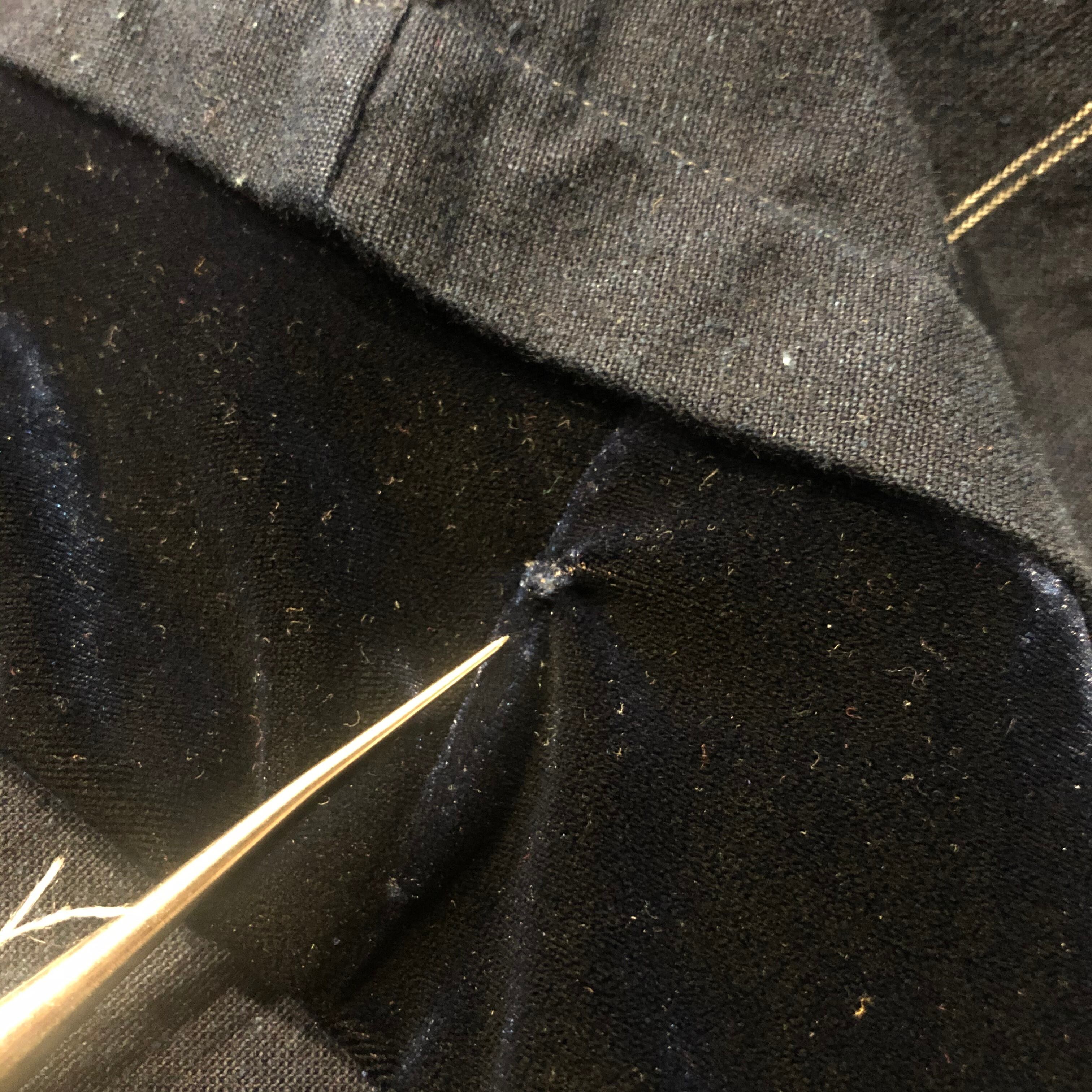 右袖にキズ、左右の脇の作りや袖口のベロアの形の違いなど適当な部分などがあります。