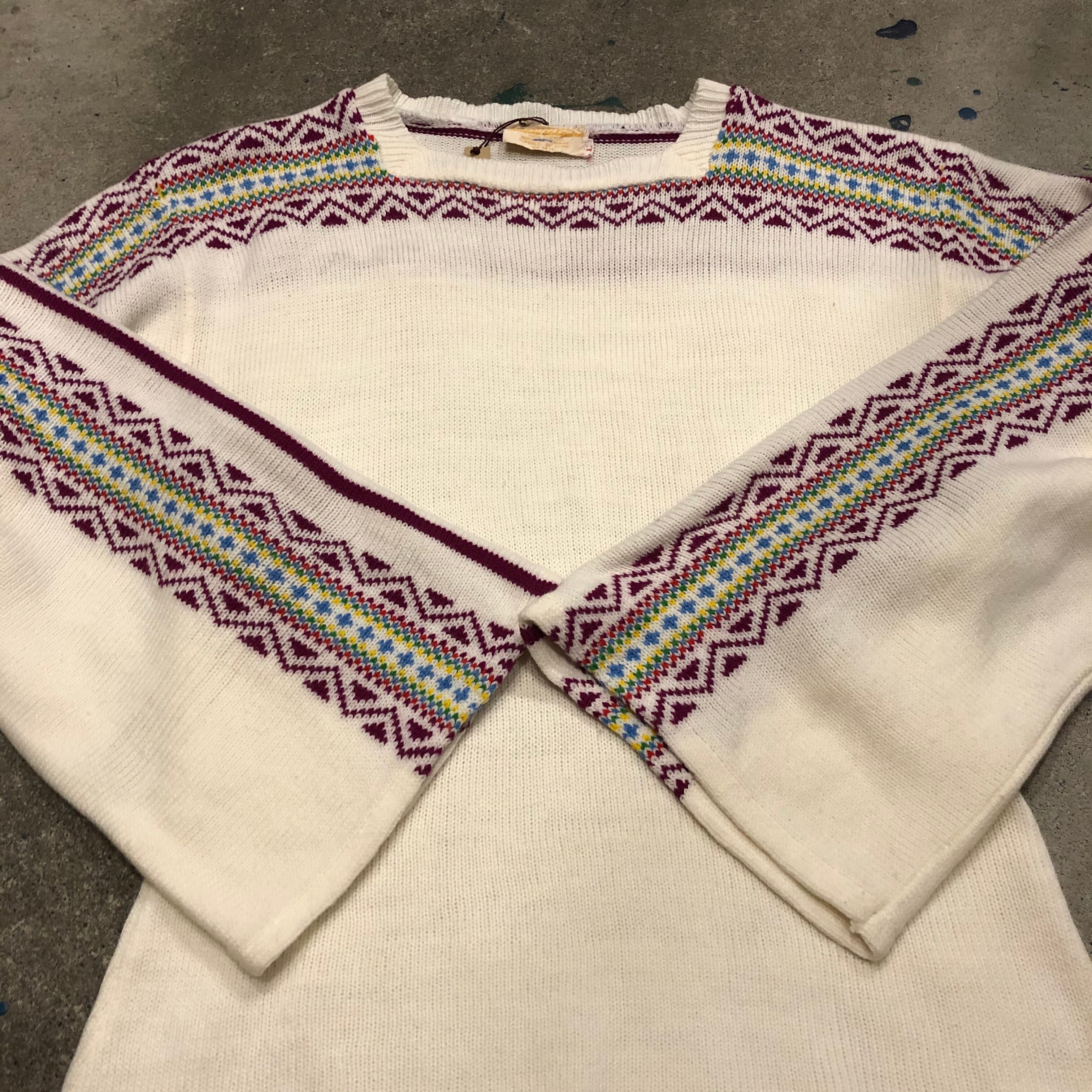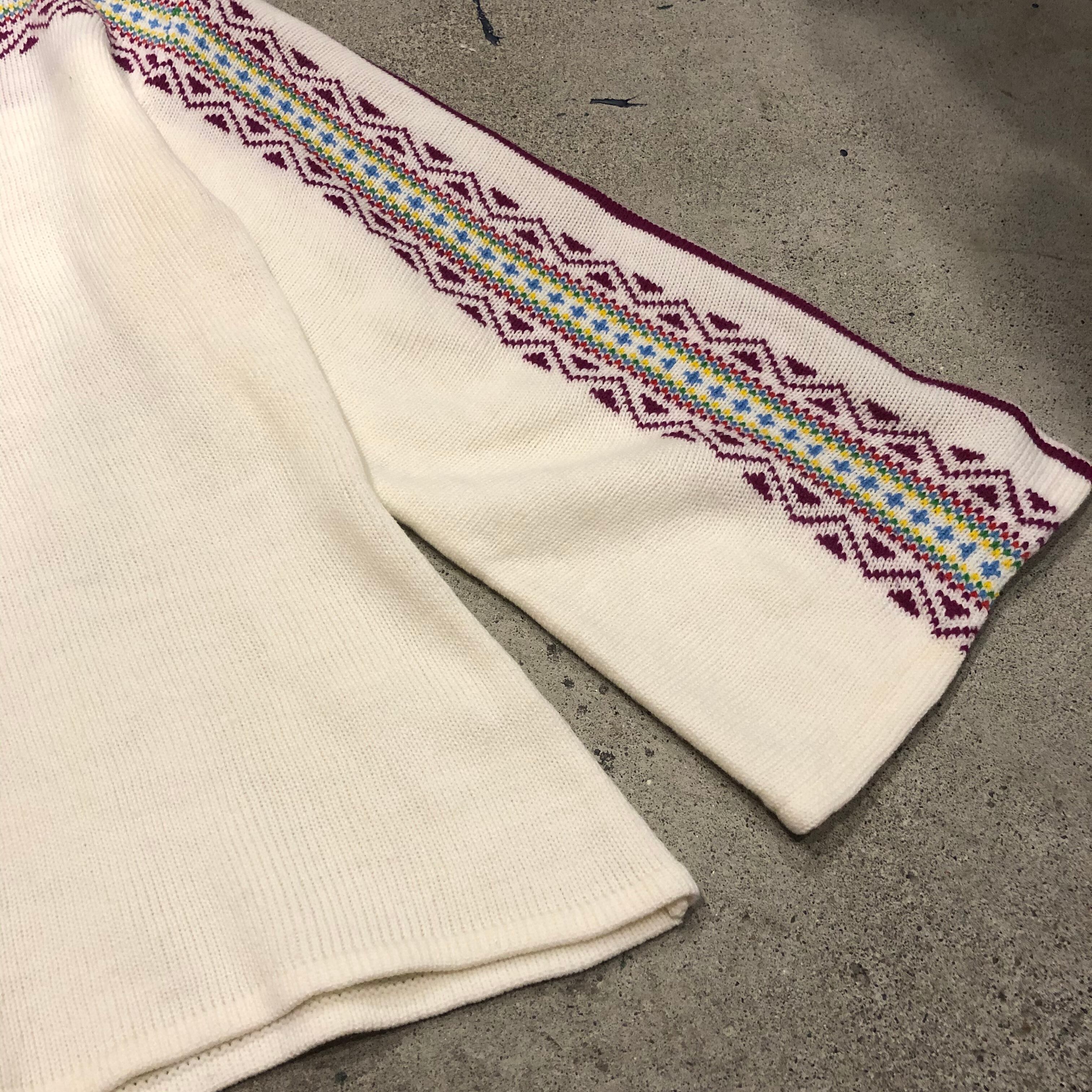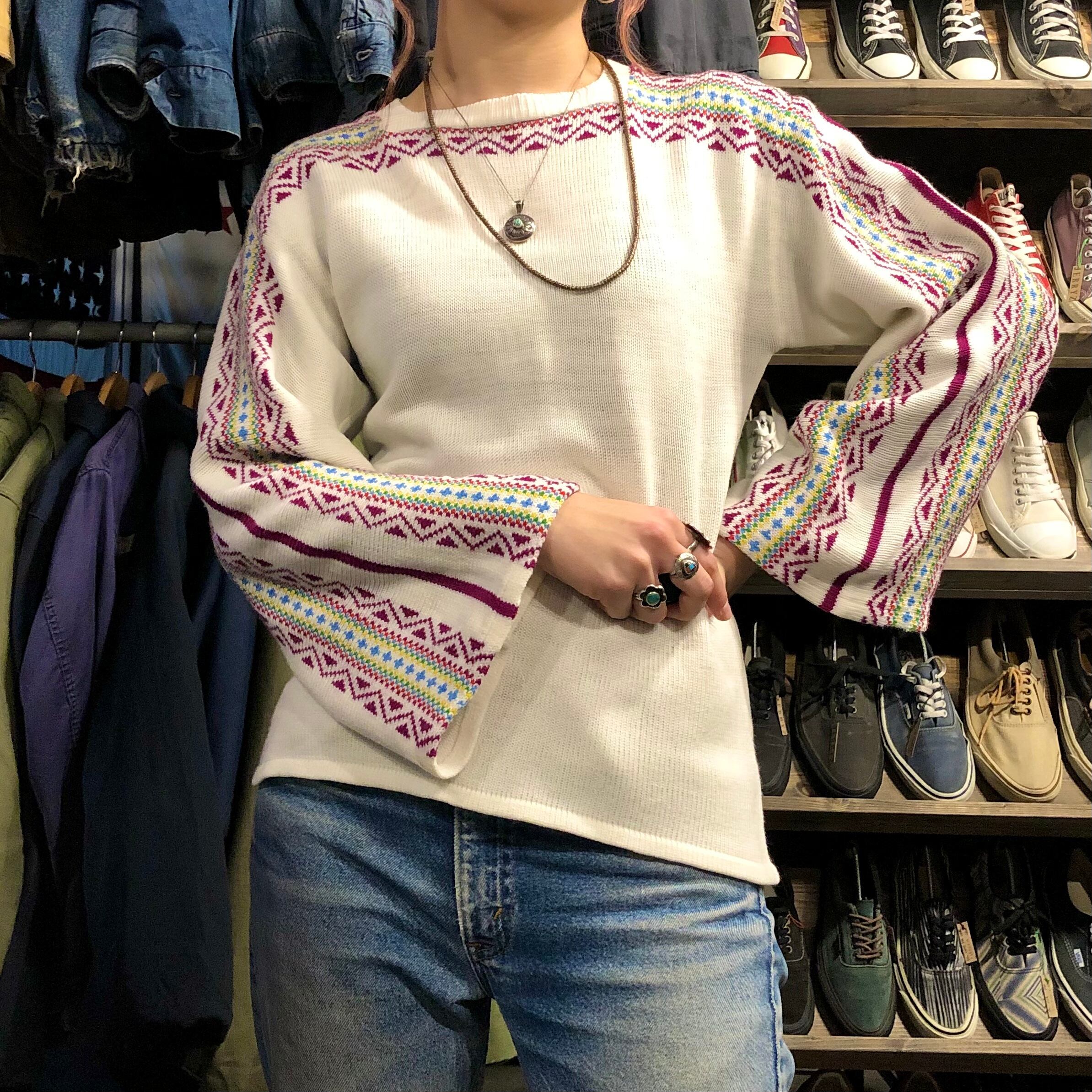 袖の幅と模様がかわいいアクリルニットです。