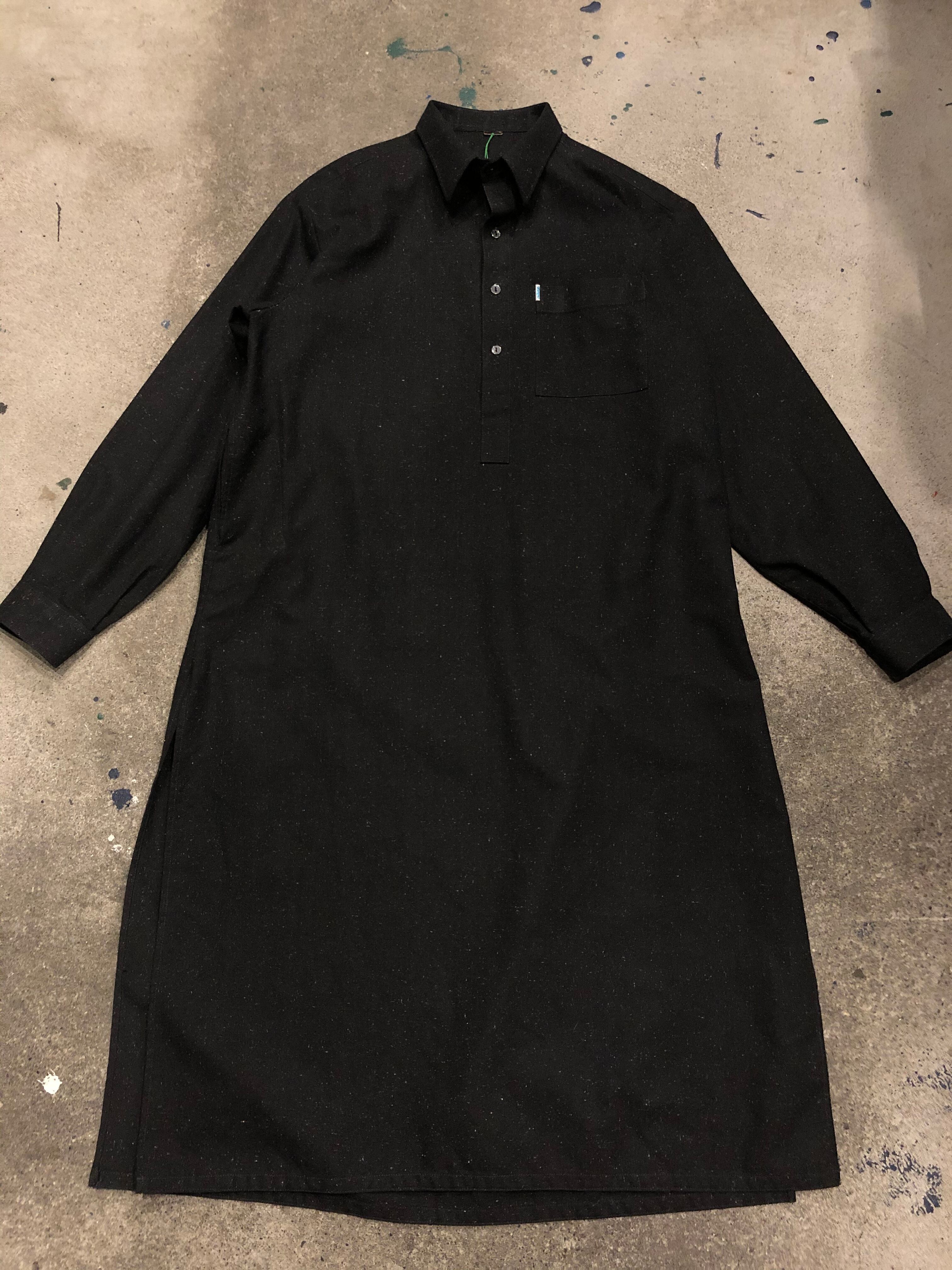 女性がワンピースとして着るのにちょうど良く、下に太いパンツを合わせたりしても良いですね。えりがパリッと硬めでカジュアルすぎないところもかっこよさがあって素敵です。